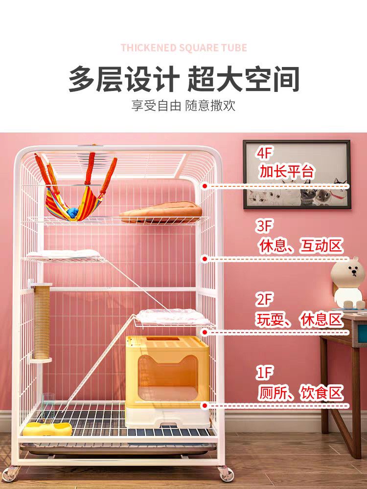 猫笼家用 室内大空间带厕所一体式 二层不占地猫窝猫舍猫笼子别墅