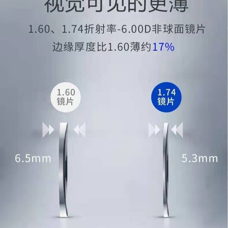 1.74超薄/防蓝光/智能变色非球面配近视眼镜片 防蓝光镜片送镜架
