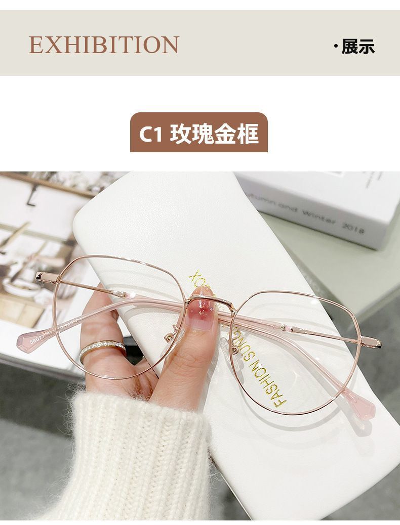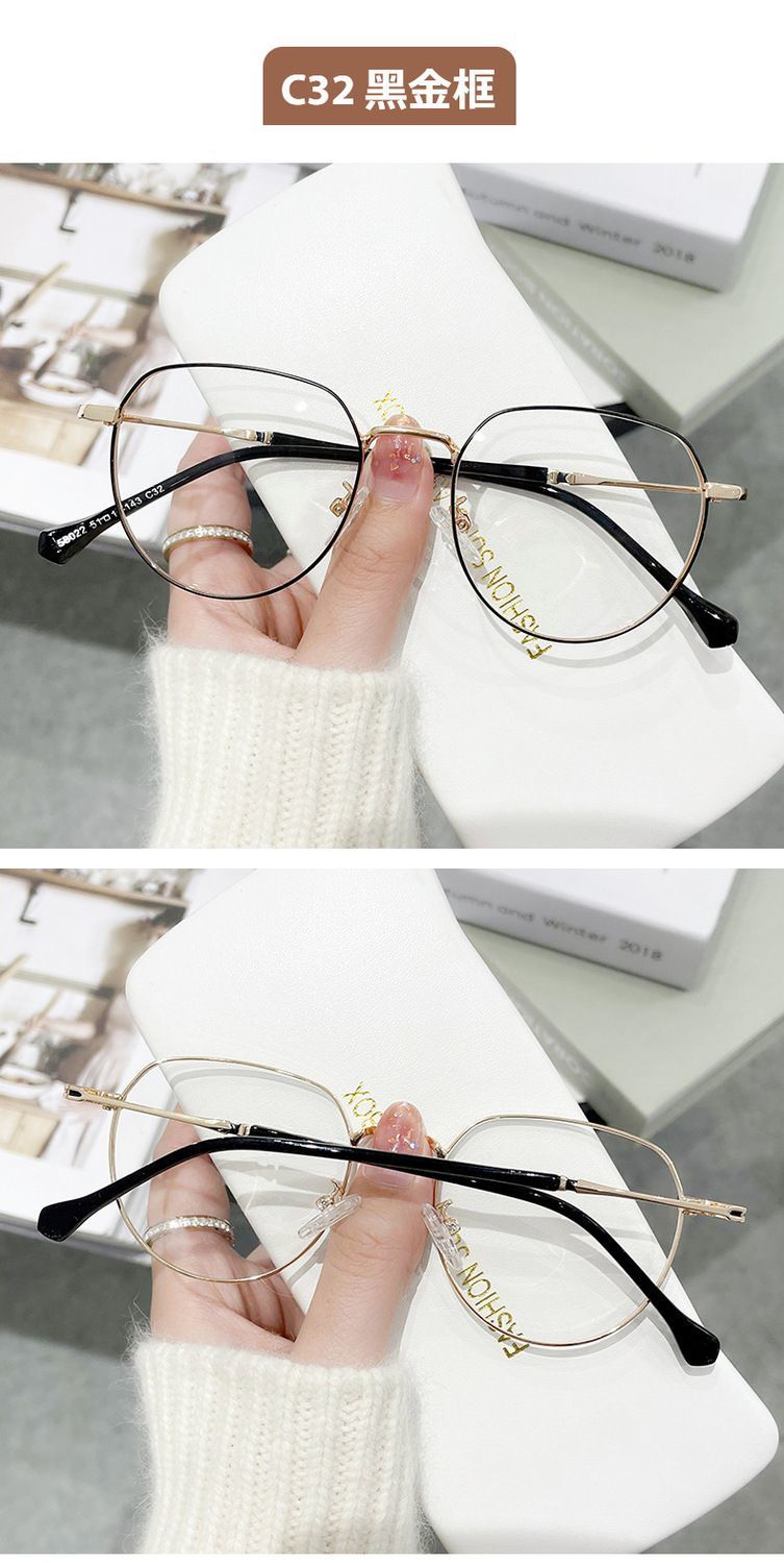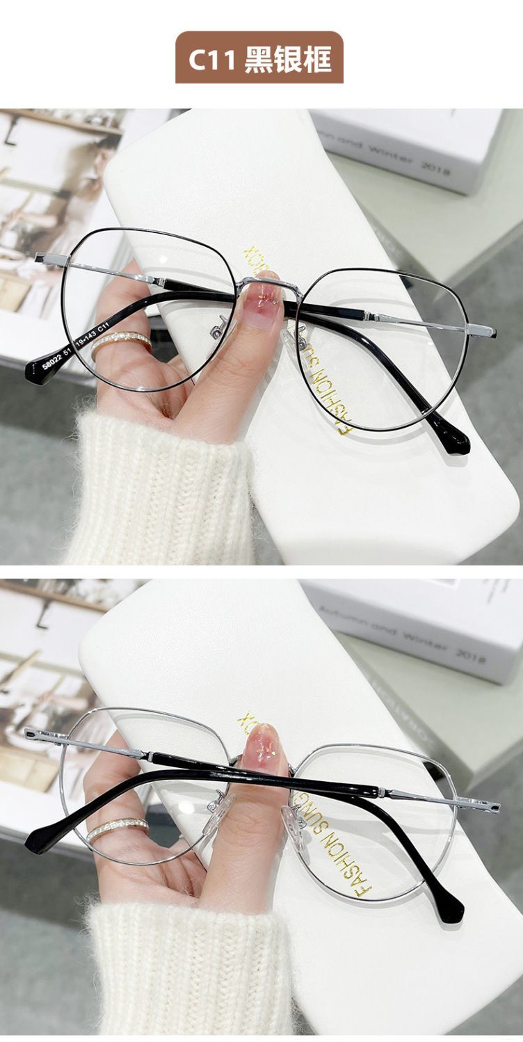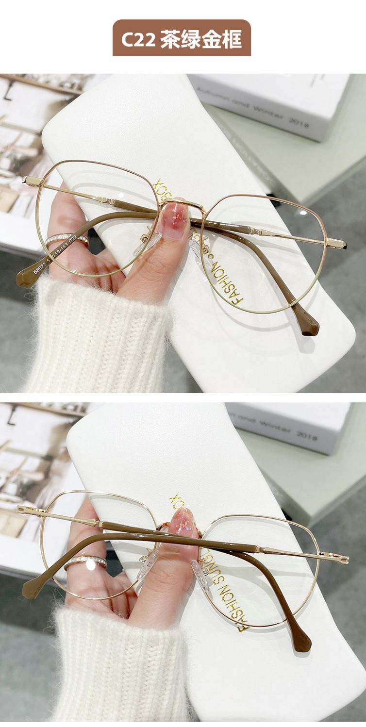 蓝光辐射近视眼镜眼镜ins高颜值多边形度数学生上课素颜平光镜