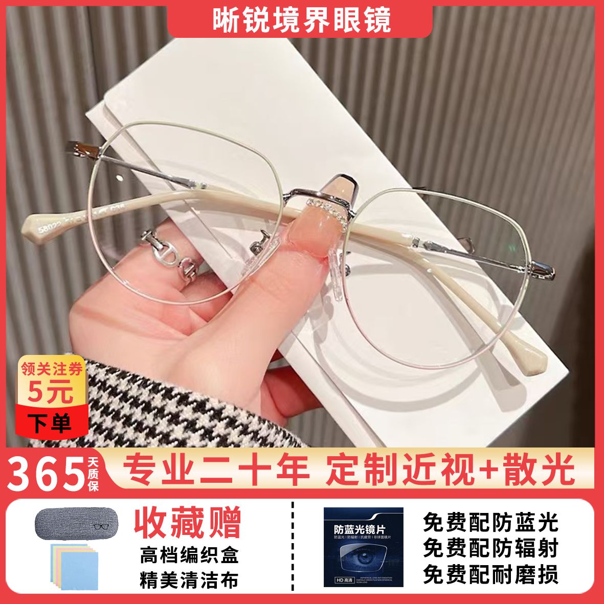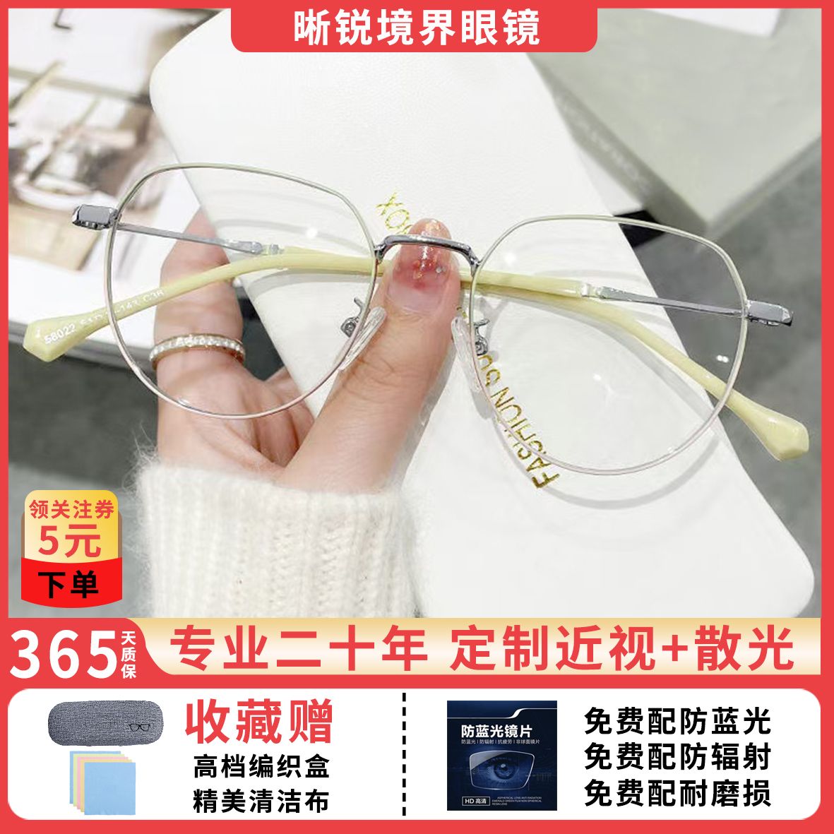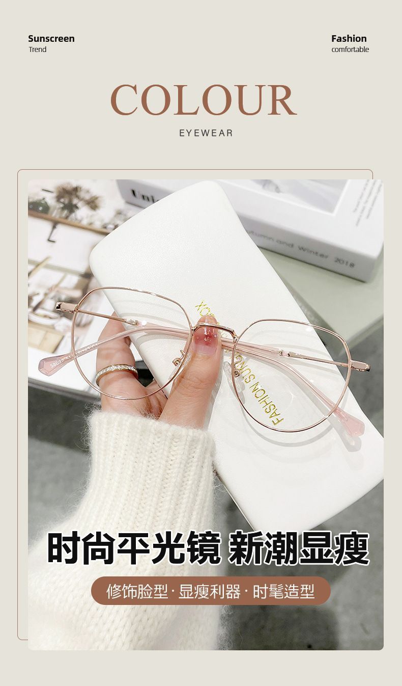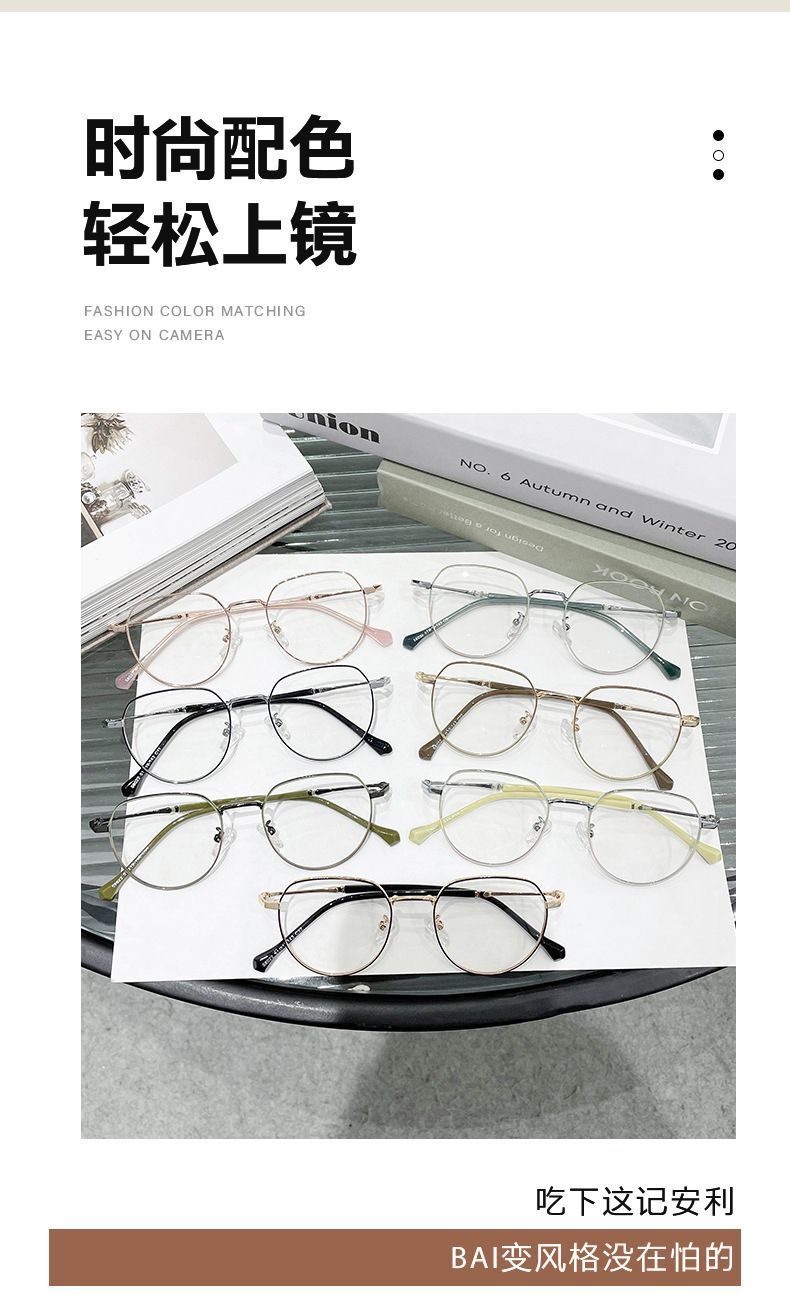 蓝光辐射近视眼镜眼镜ins高颜值多边形度数学生上课素颜平光镜