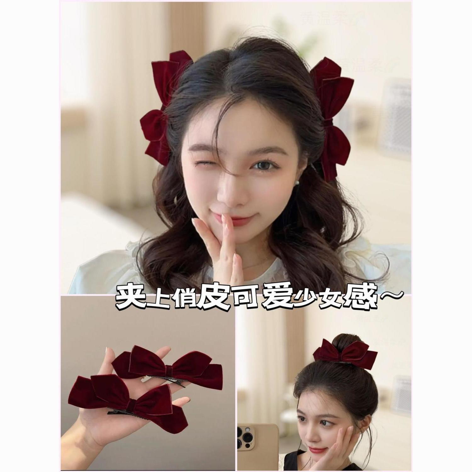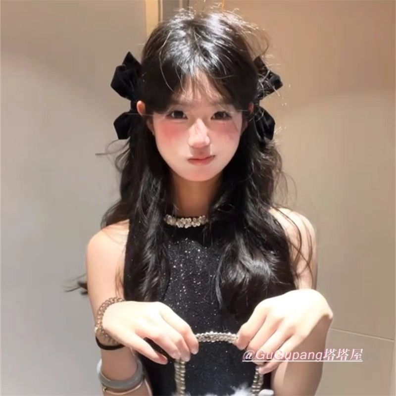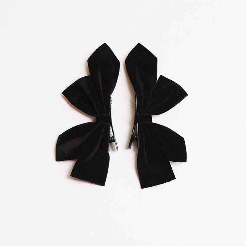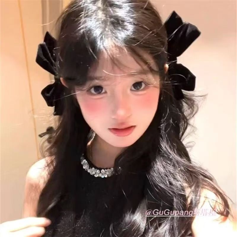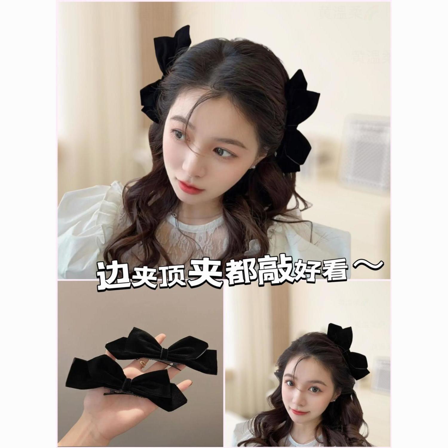 黑色丝绒蝴蝶结发夹气质在逃公主减龄少女感对夹侧边夹子发饰园艺