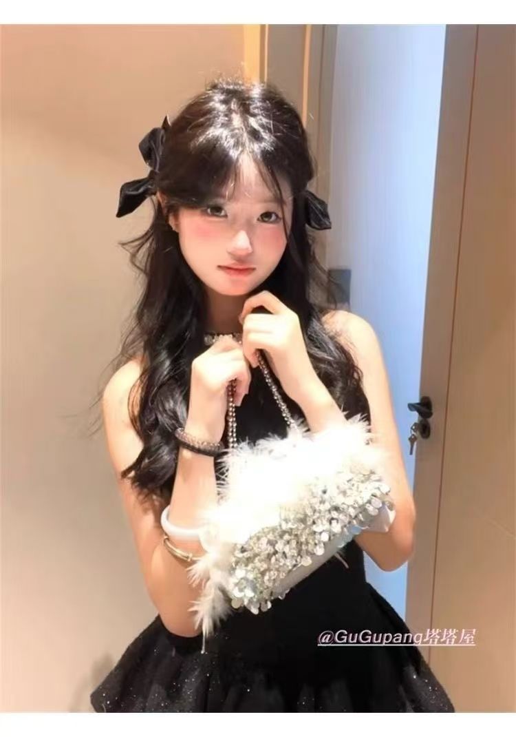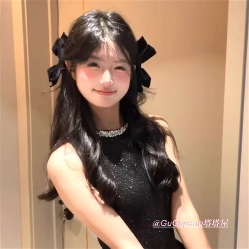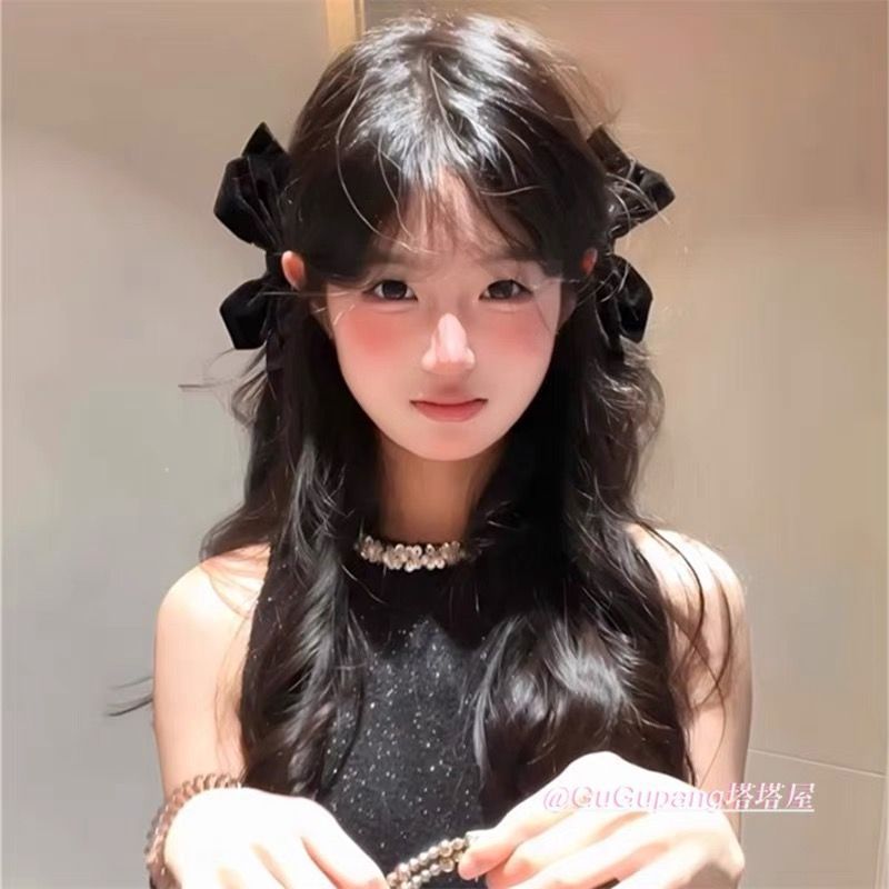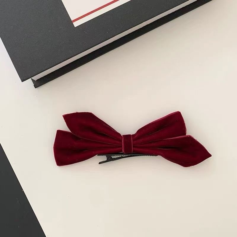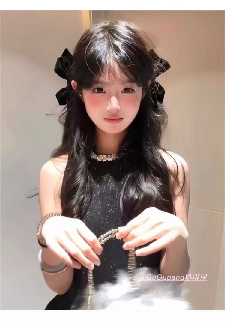 黑色丝绒蝴蝶结发夹气质在逃公主减龄少女感对夹侧边夹子发饰园艺