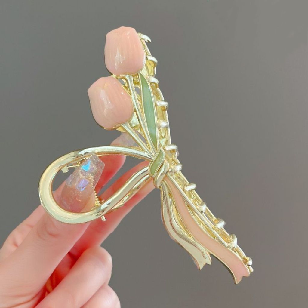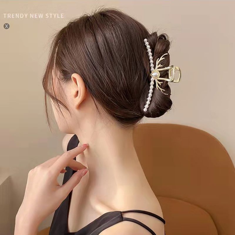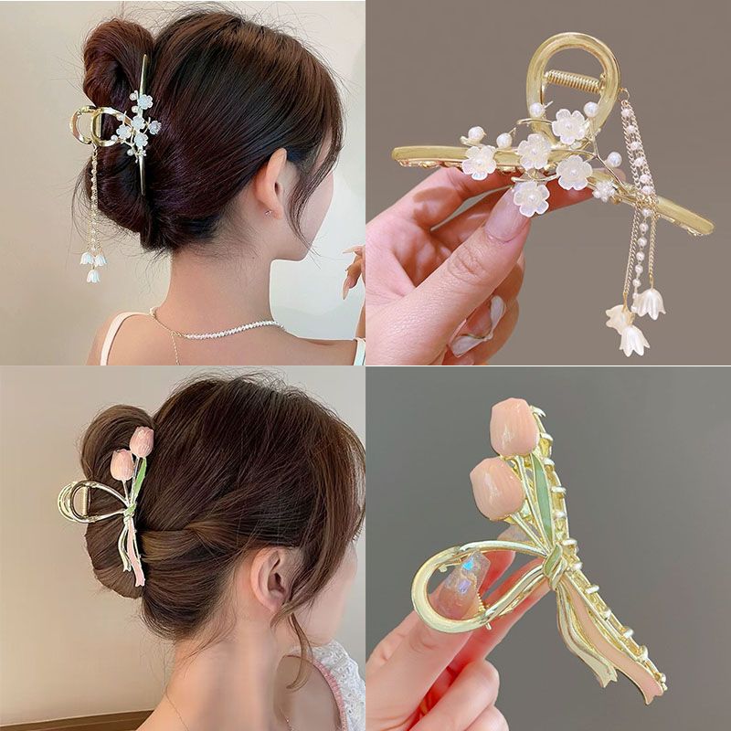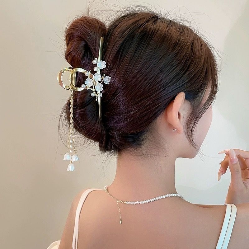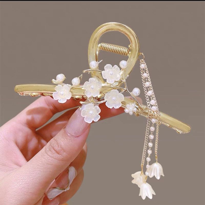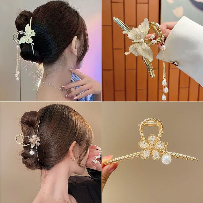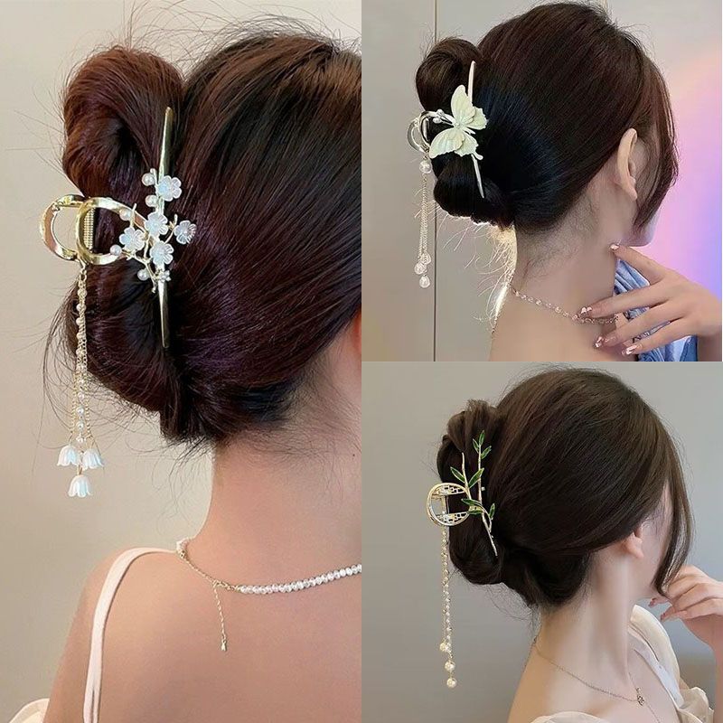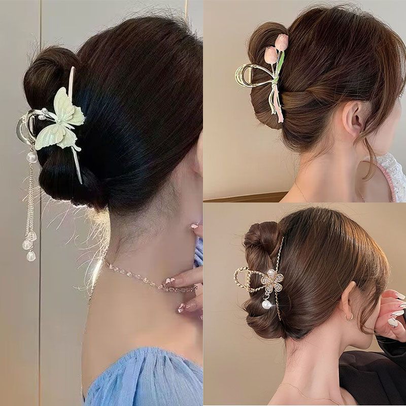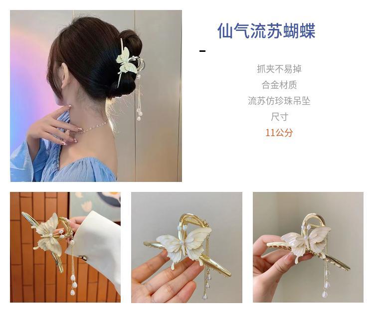 超仙蝴蝶山茶花流苏抓夹高级感鲨鱼夹后脑勺发夹大号发卡头饰女
