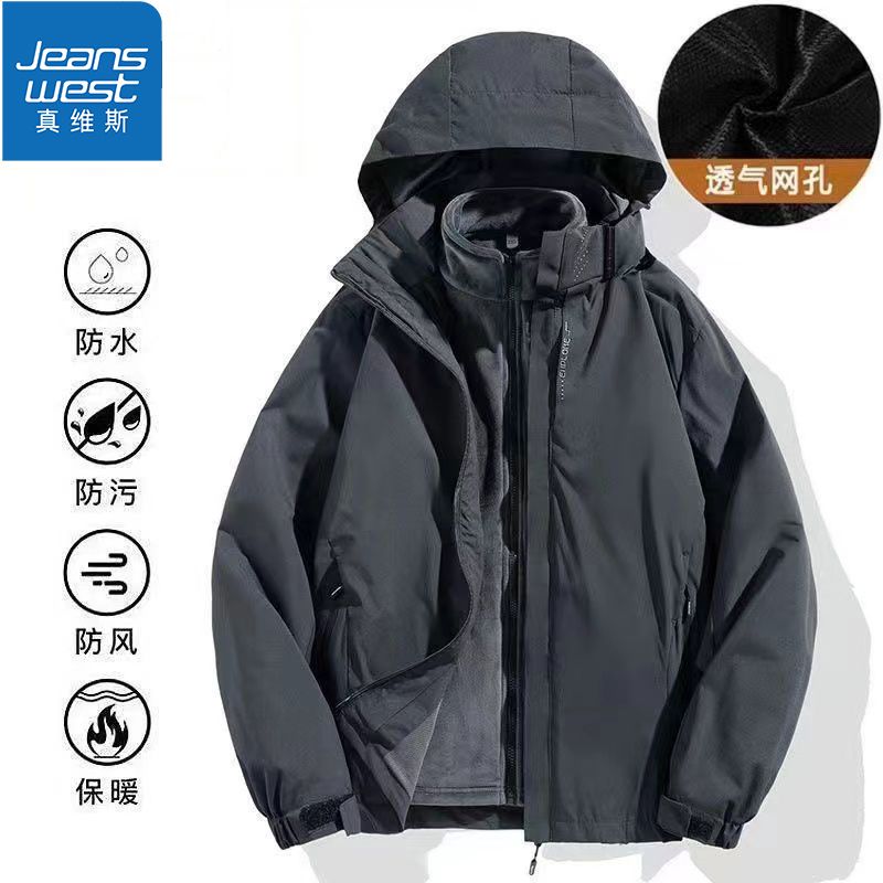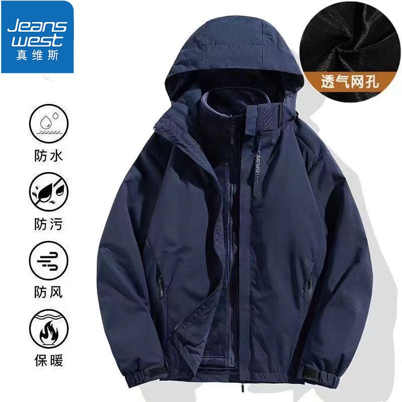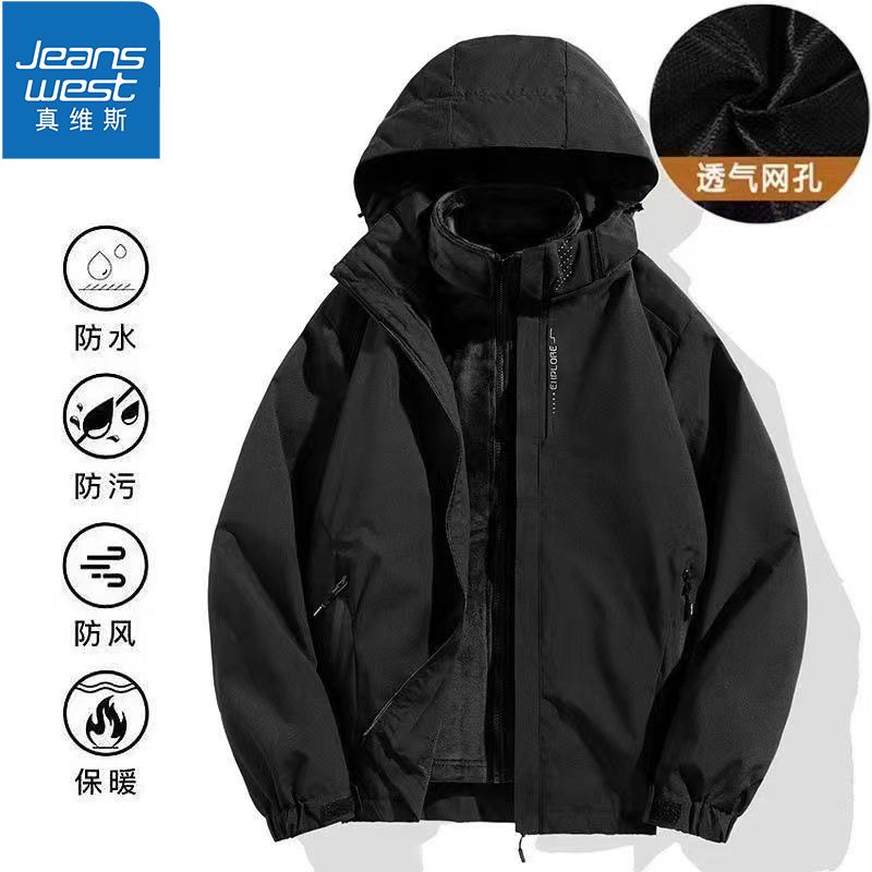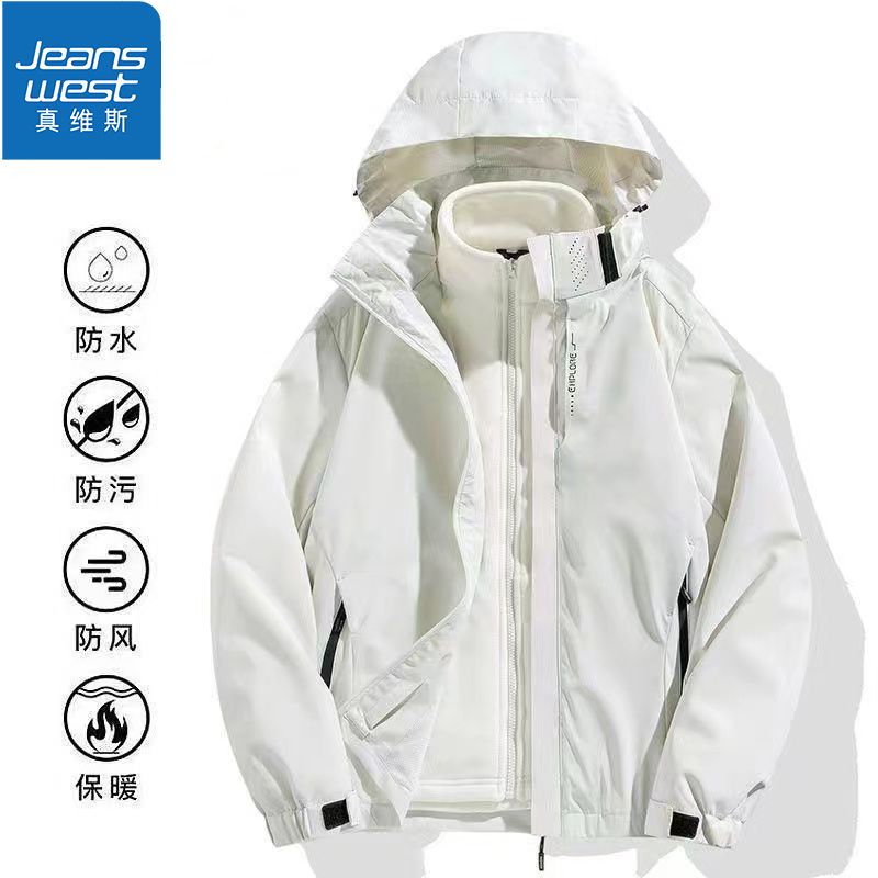 真维斯运动风衣男女同款三合一冲锋衣时尚潮流户外登山情侣外套