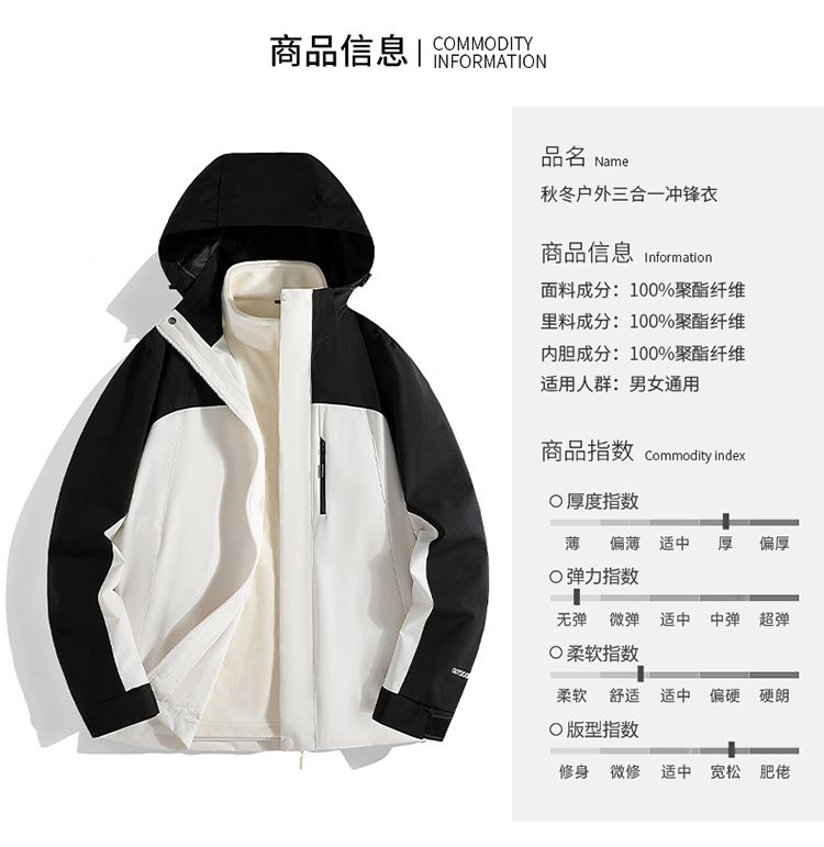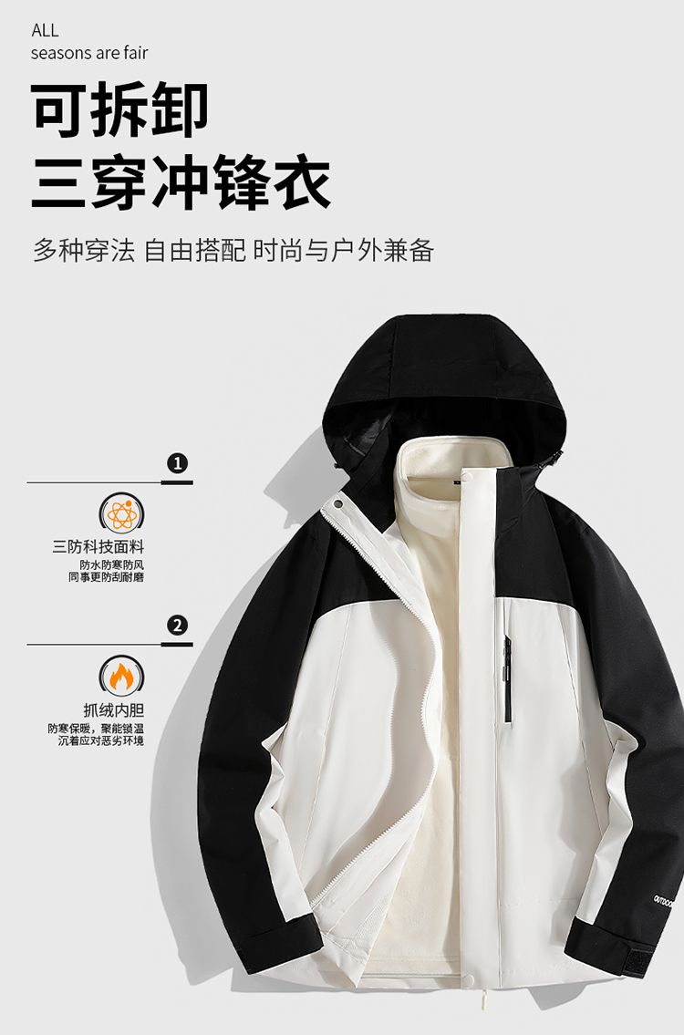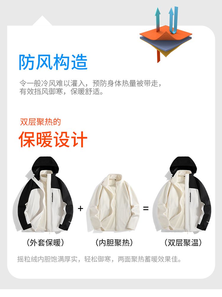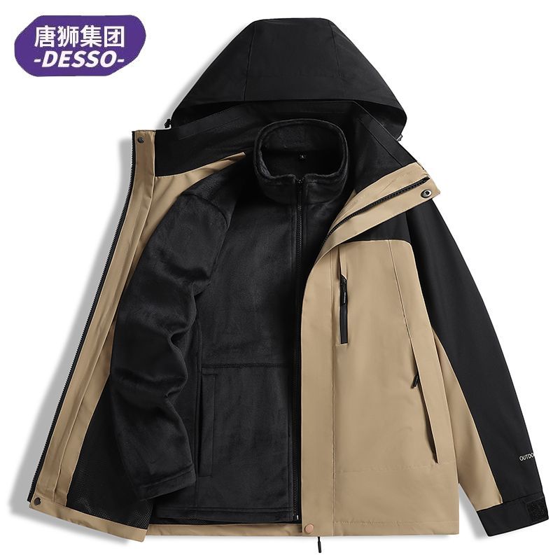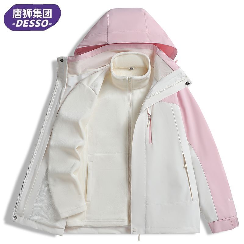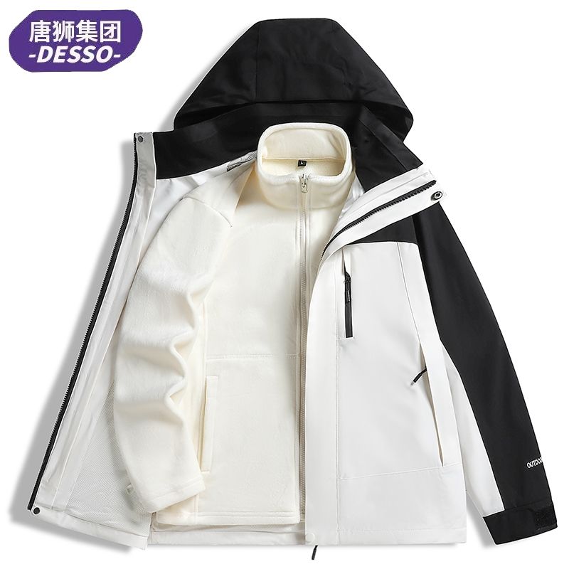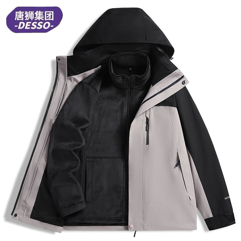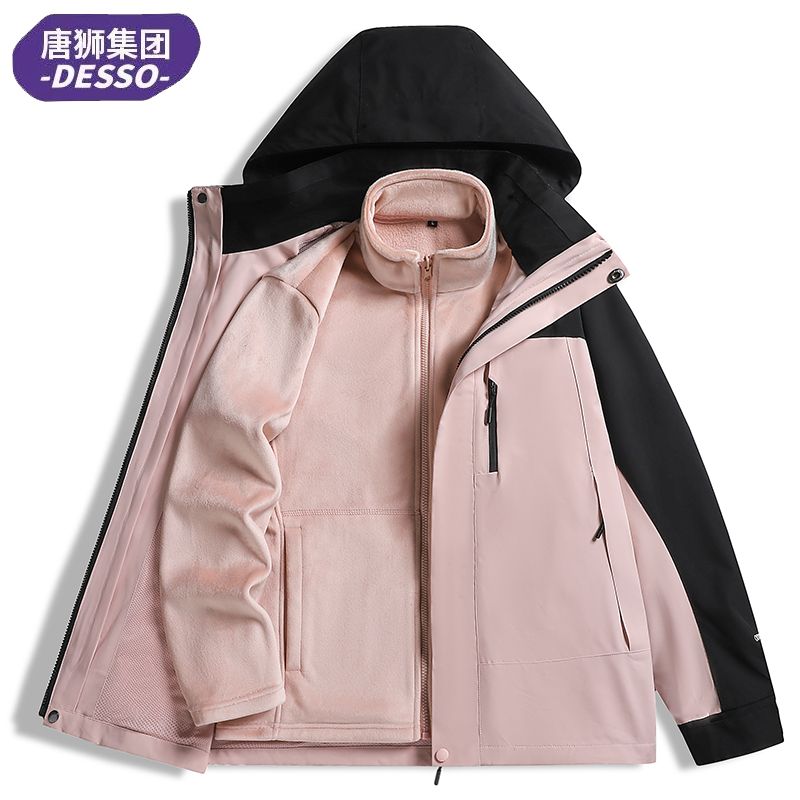 唐狮集团DESSO冲锋衣三合一男女秋冬加绒加厚外套防风防水登山服