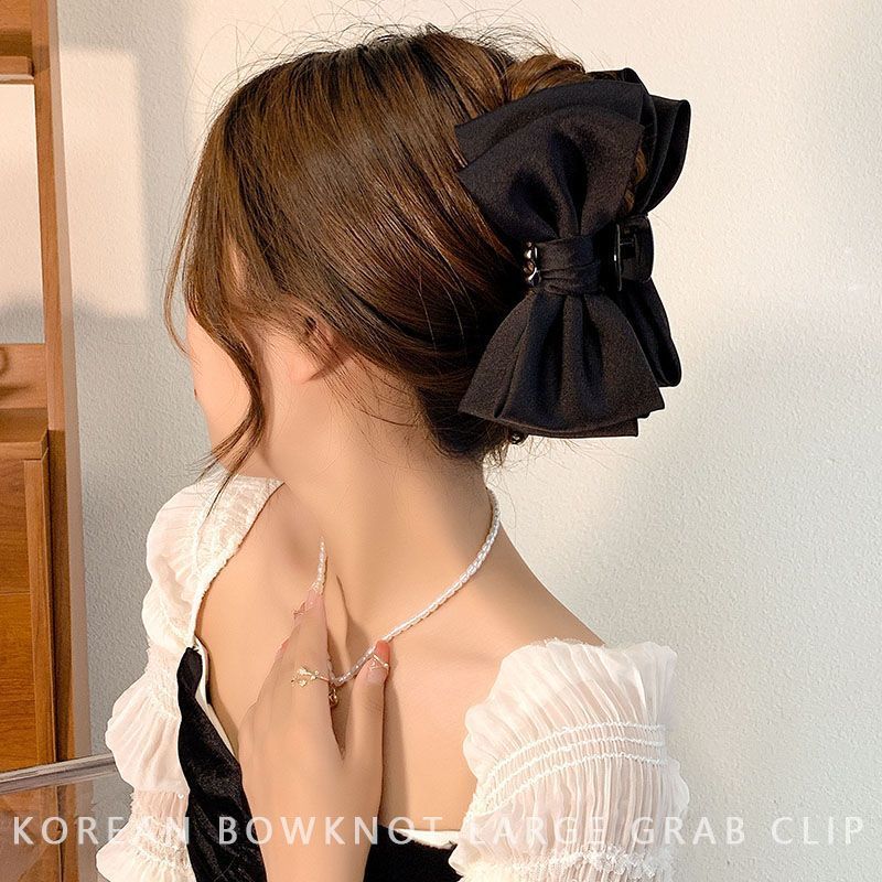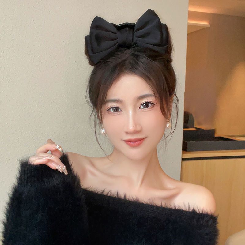 在逃公主头饰黑色双面蝴蝶结抓夹发饰气质鲨鱼夹子发夹女后脑勺