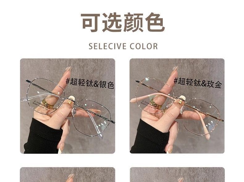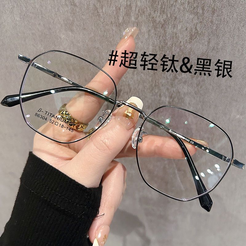 超轻细框多边形可配近视防蓝光辐射女素颜神器显脸小眼镜框架男潮