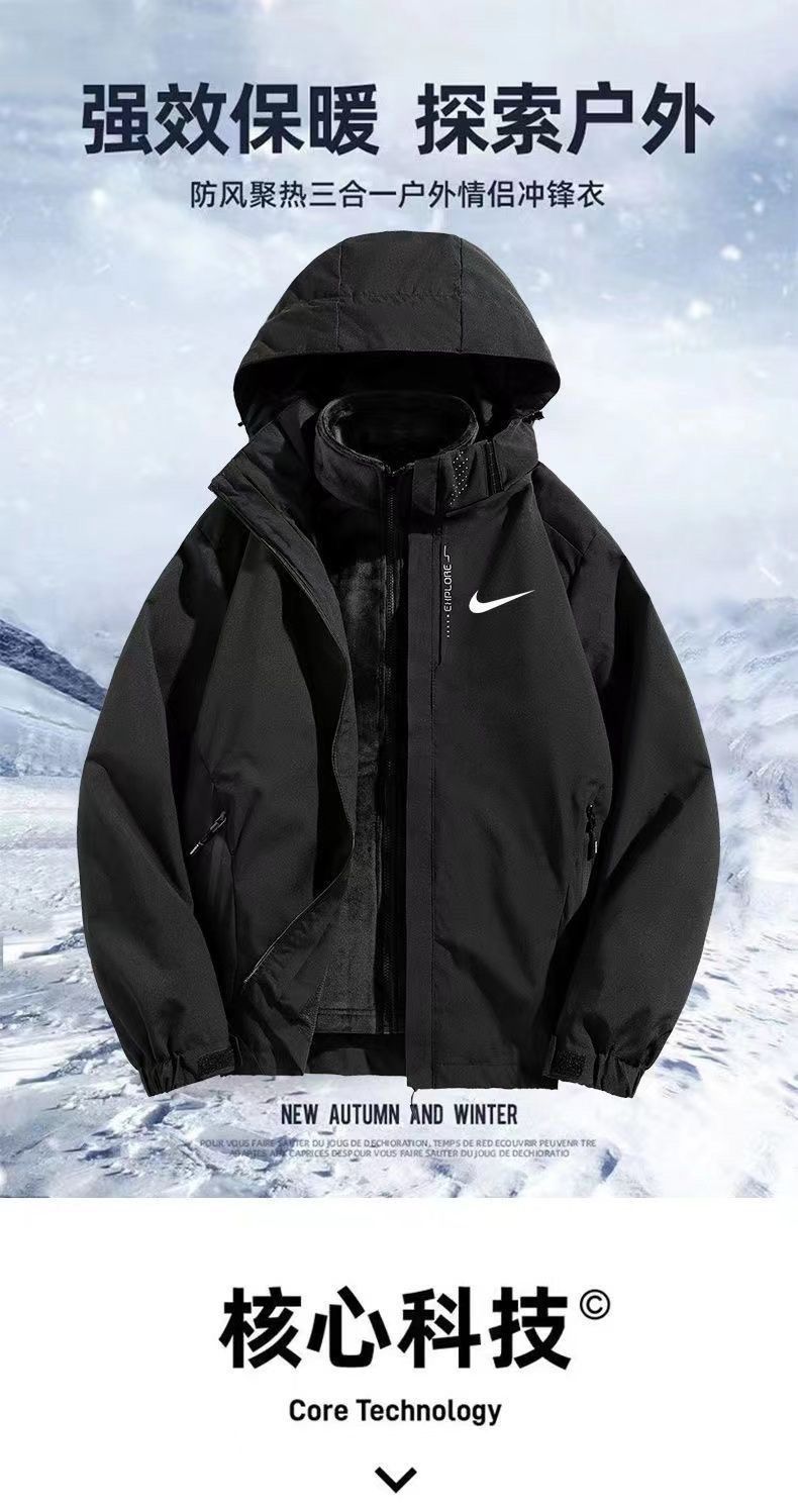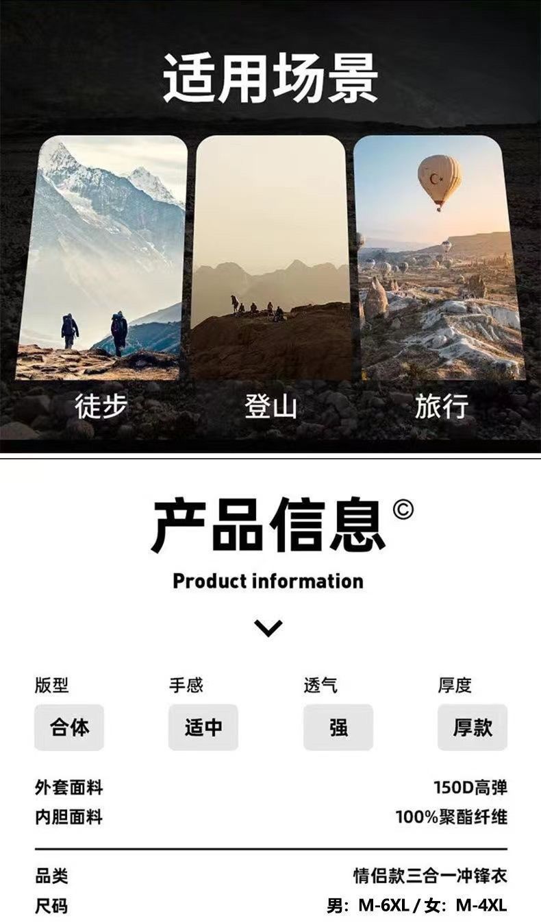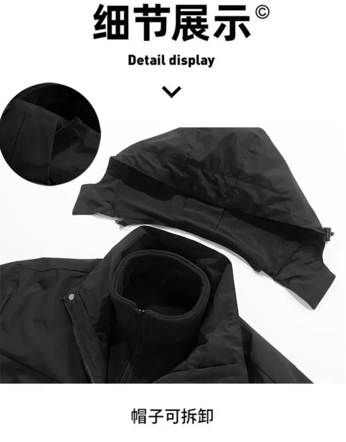 美式三合一可拆卸冲锋衣秋冬季男女外套户外登山防风防水运动夹克