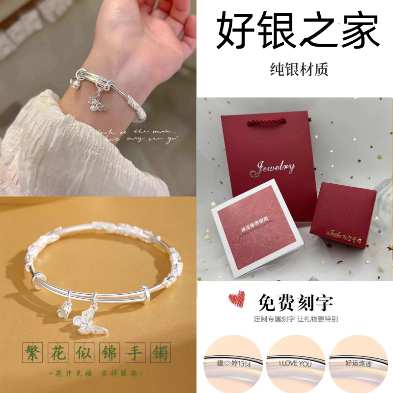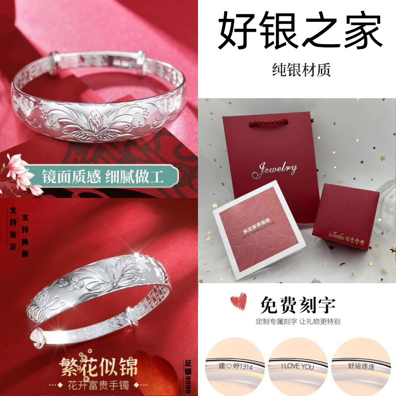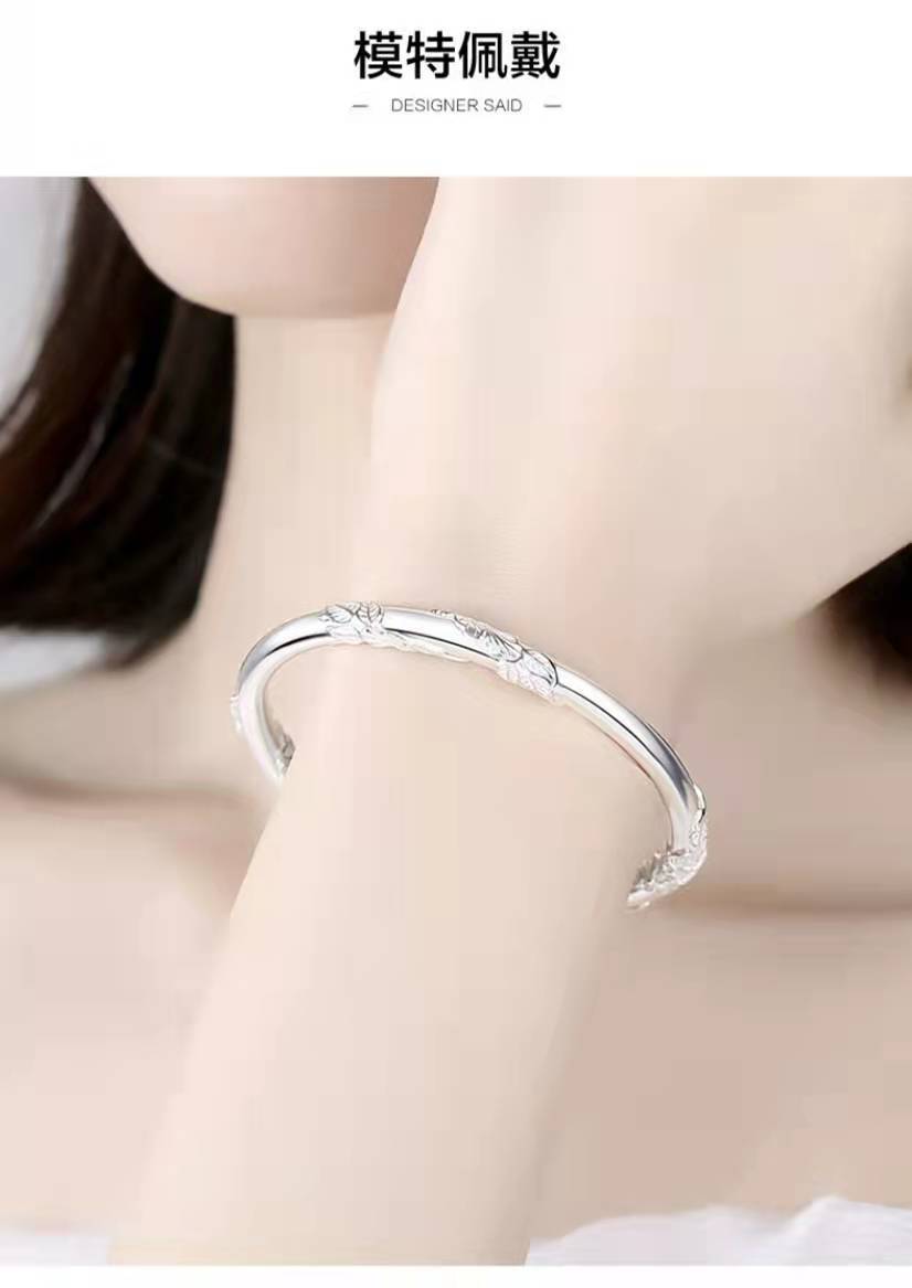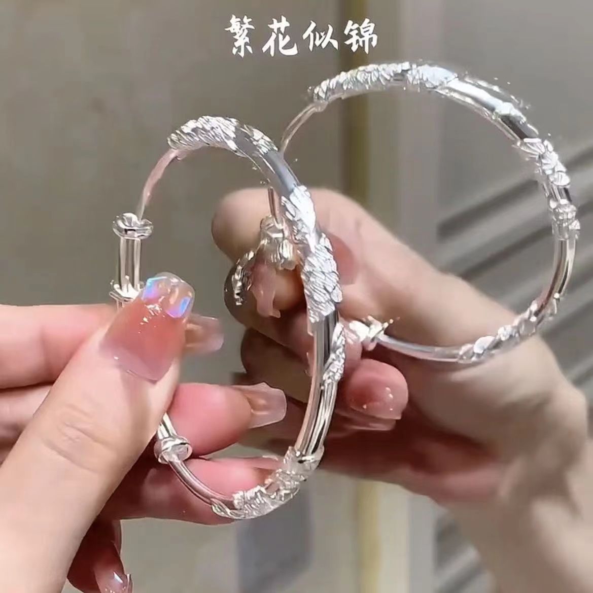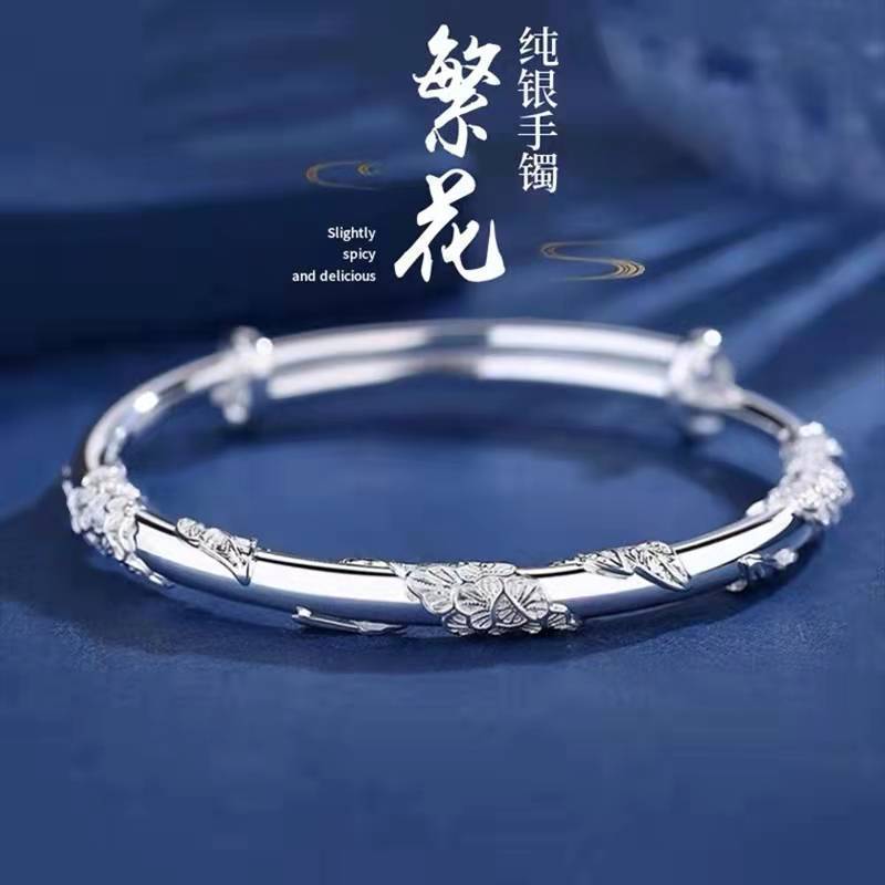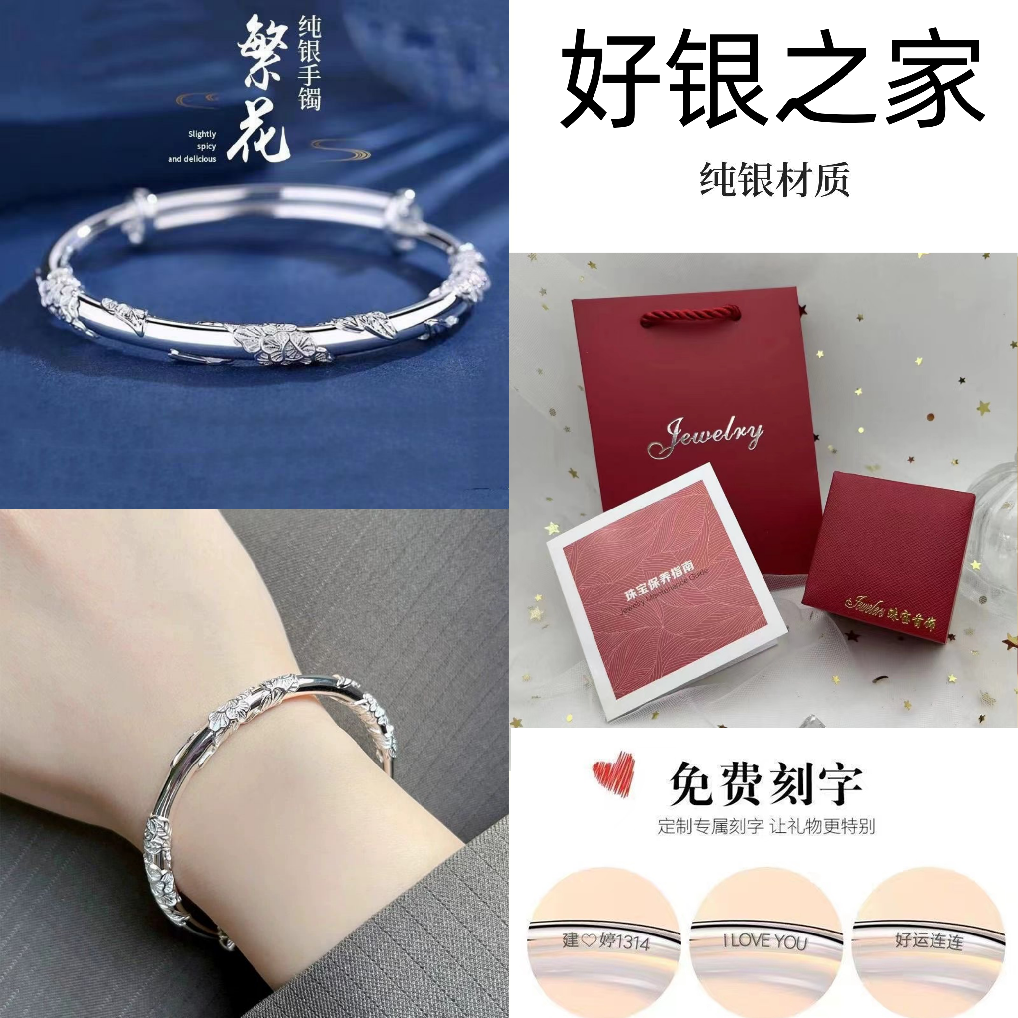繁花似锦纯银手镯女9999实心足银镯子新款爆火礼物送女友送妈妈
