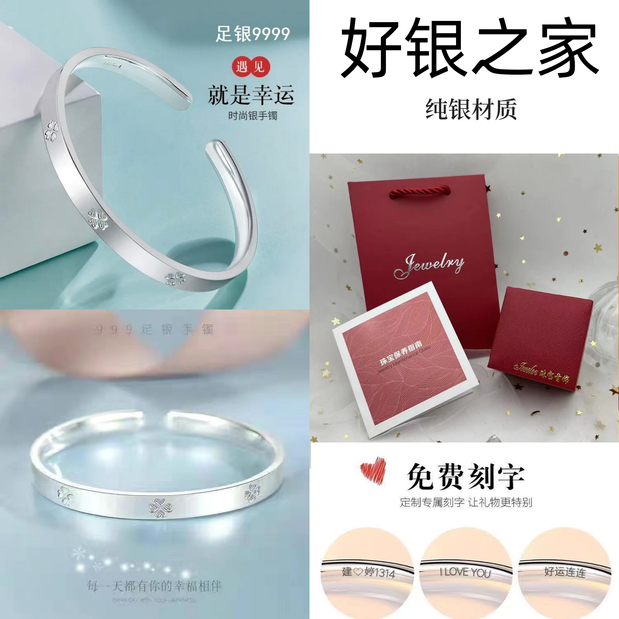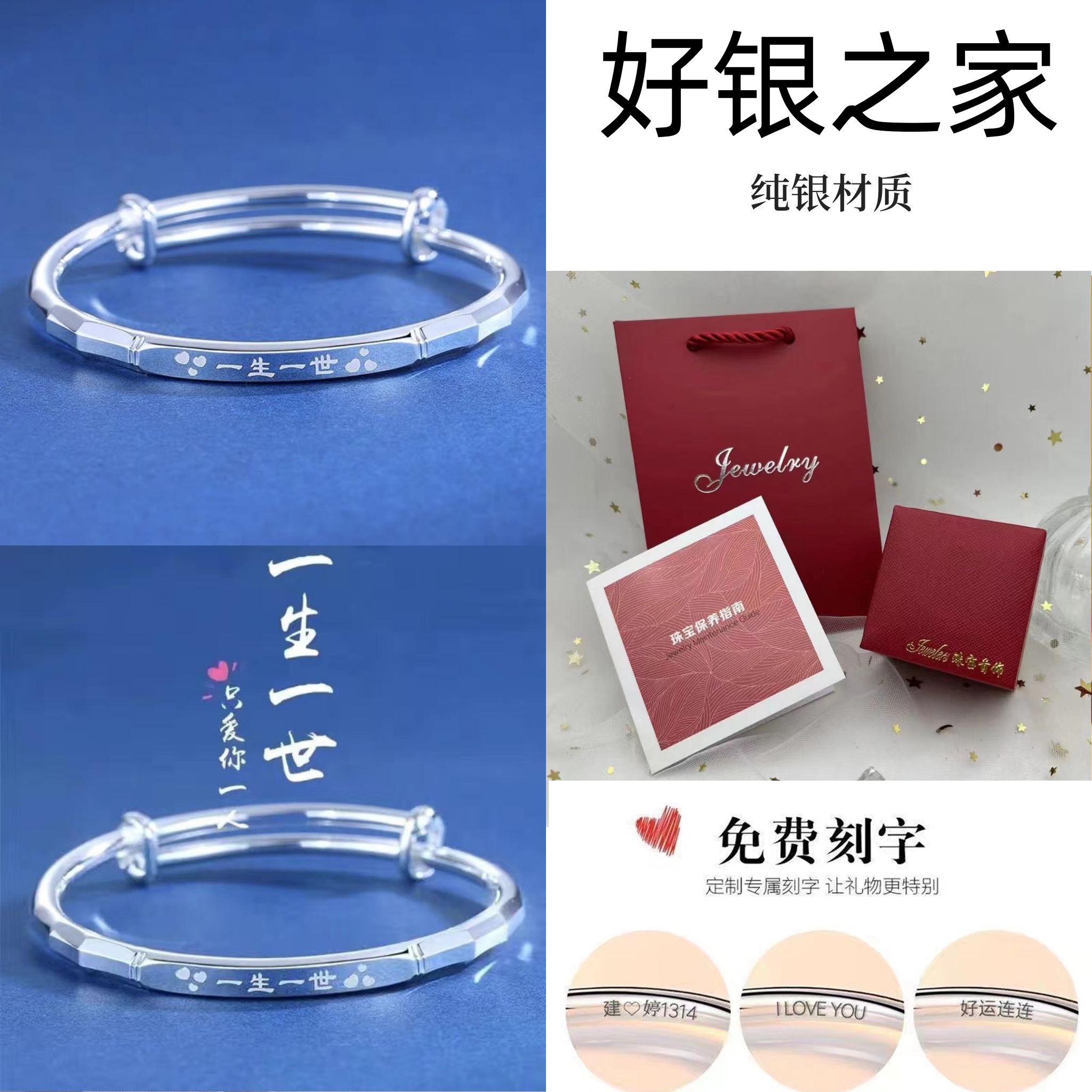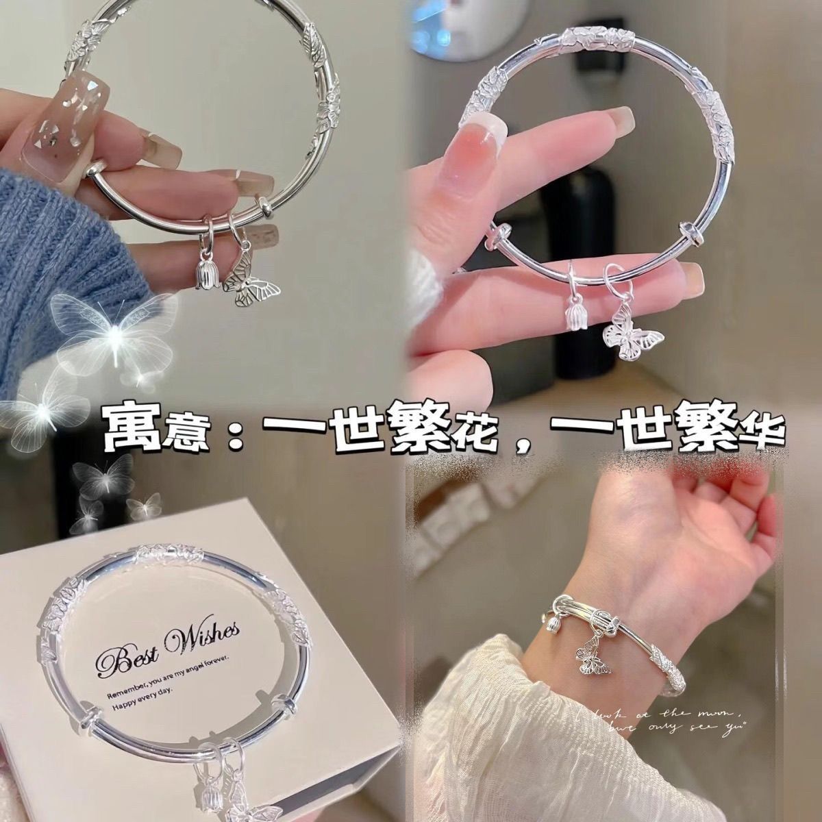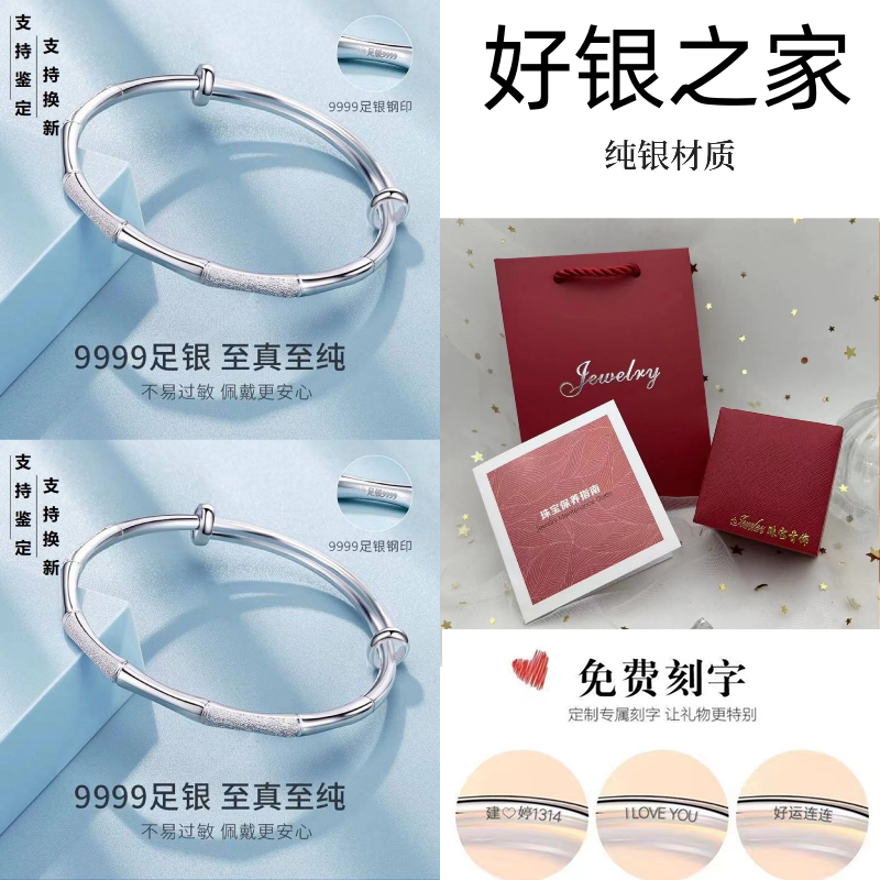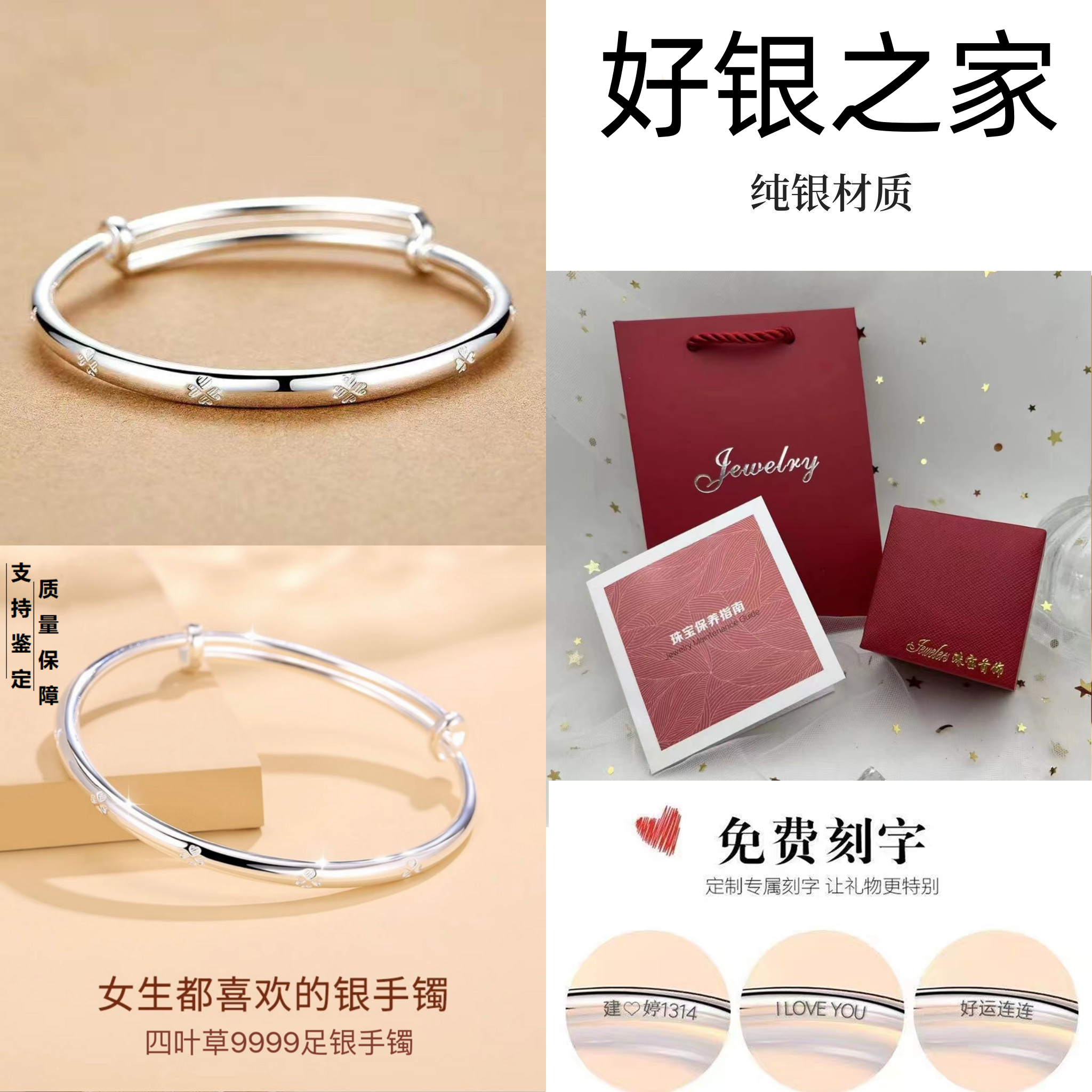 繁花似锦纯银手镯女9999实心足银镯子新款爆火礼物送女友送妈妈