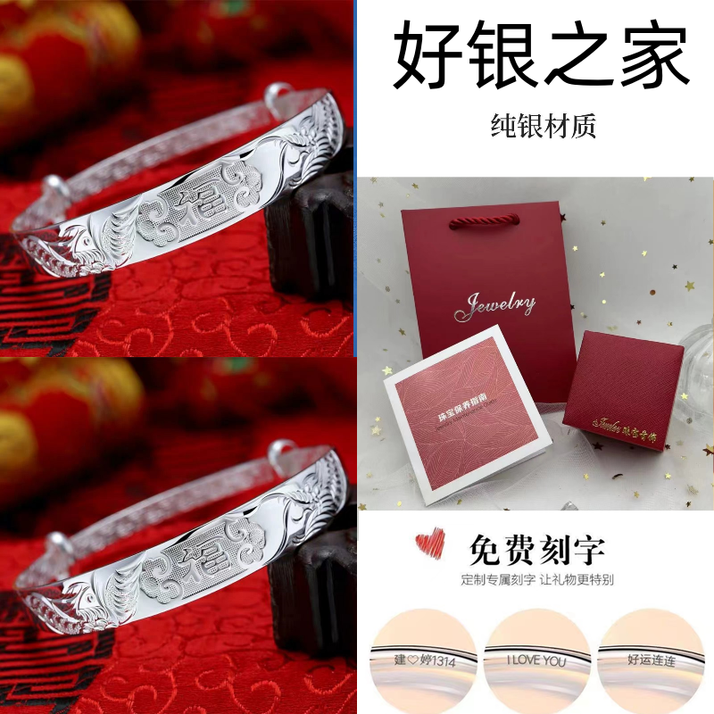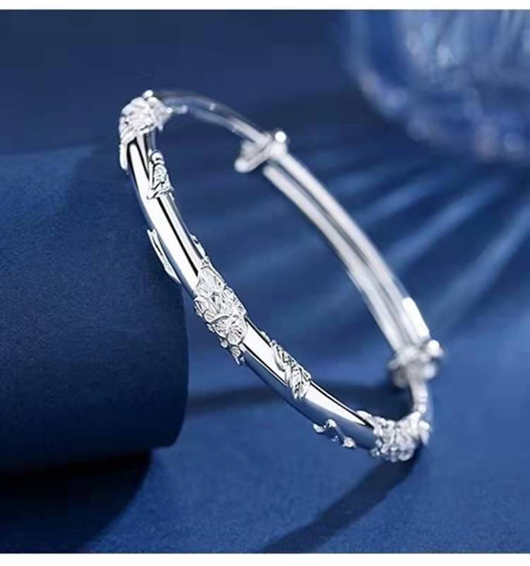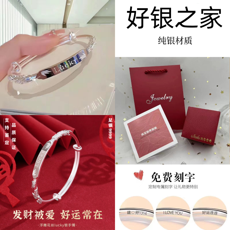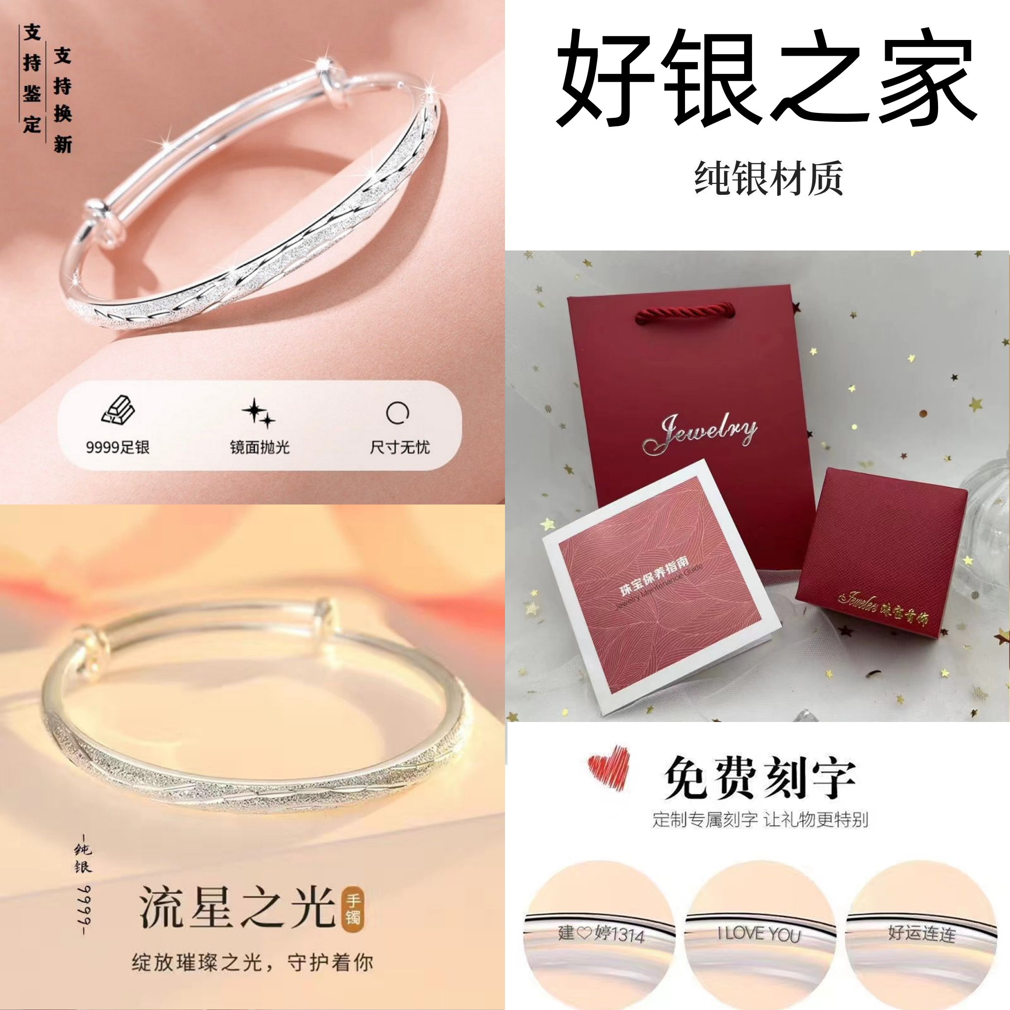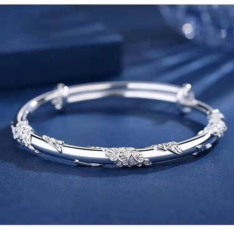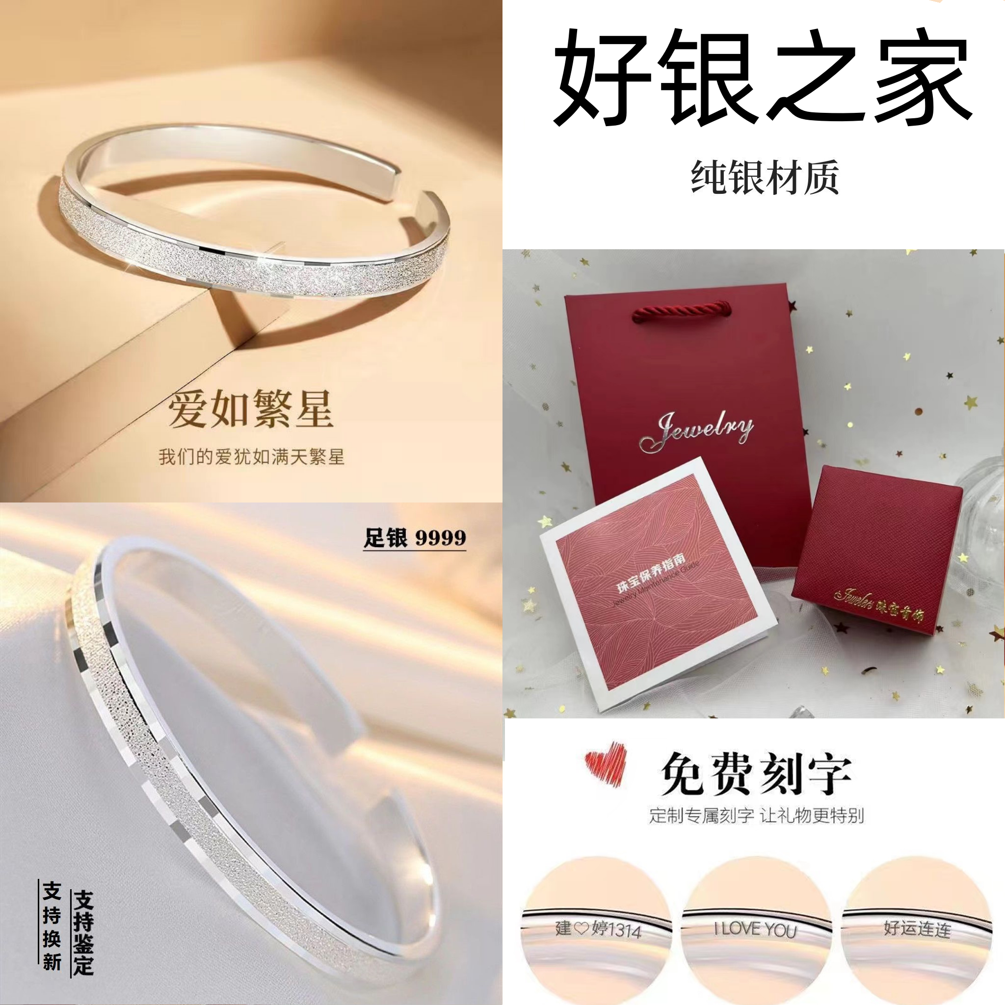 繁花似锦纯银手镯女9999实心足银镯子新款爆火礼物送女友送妈妈