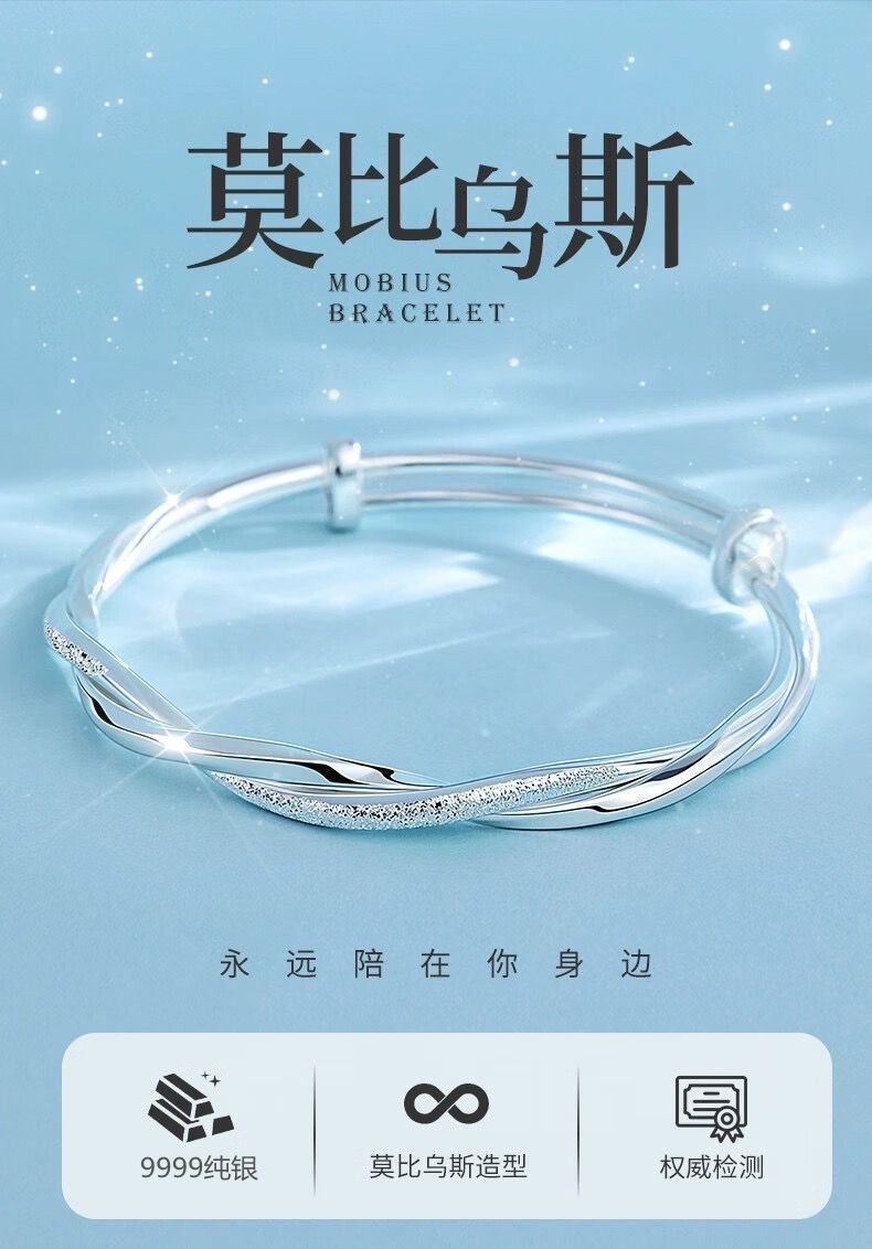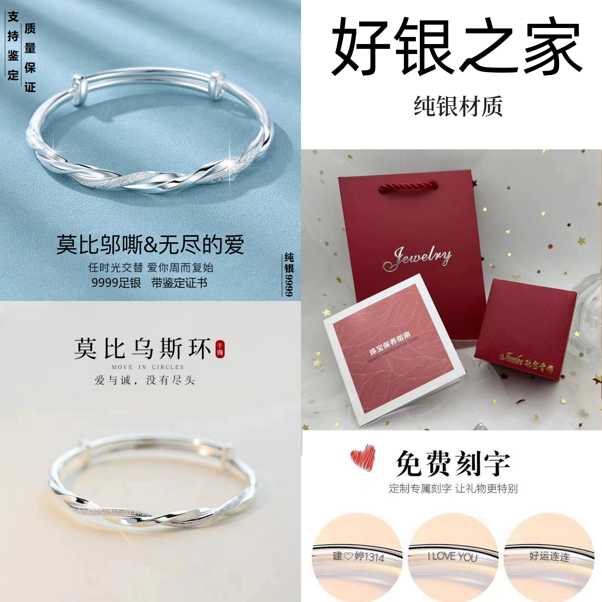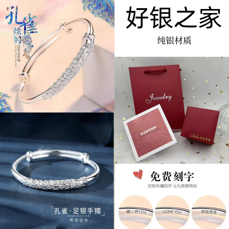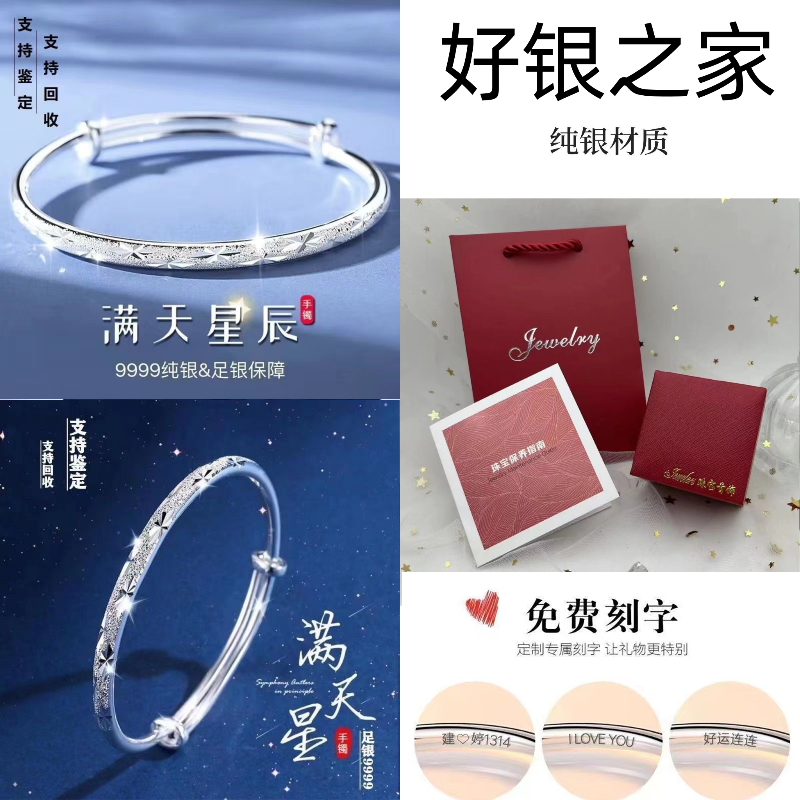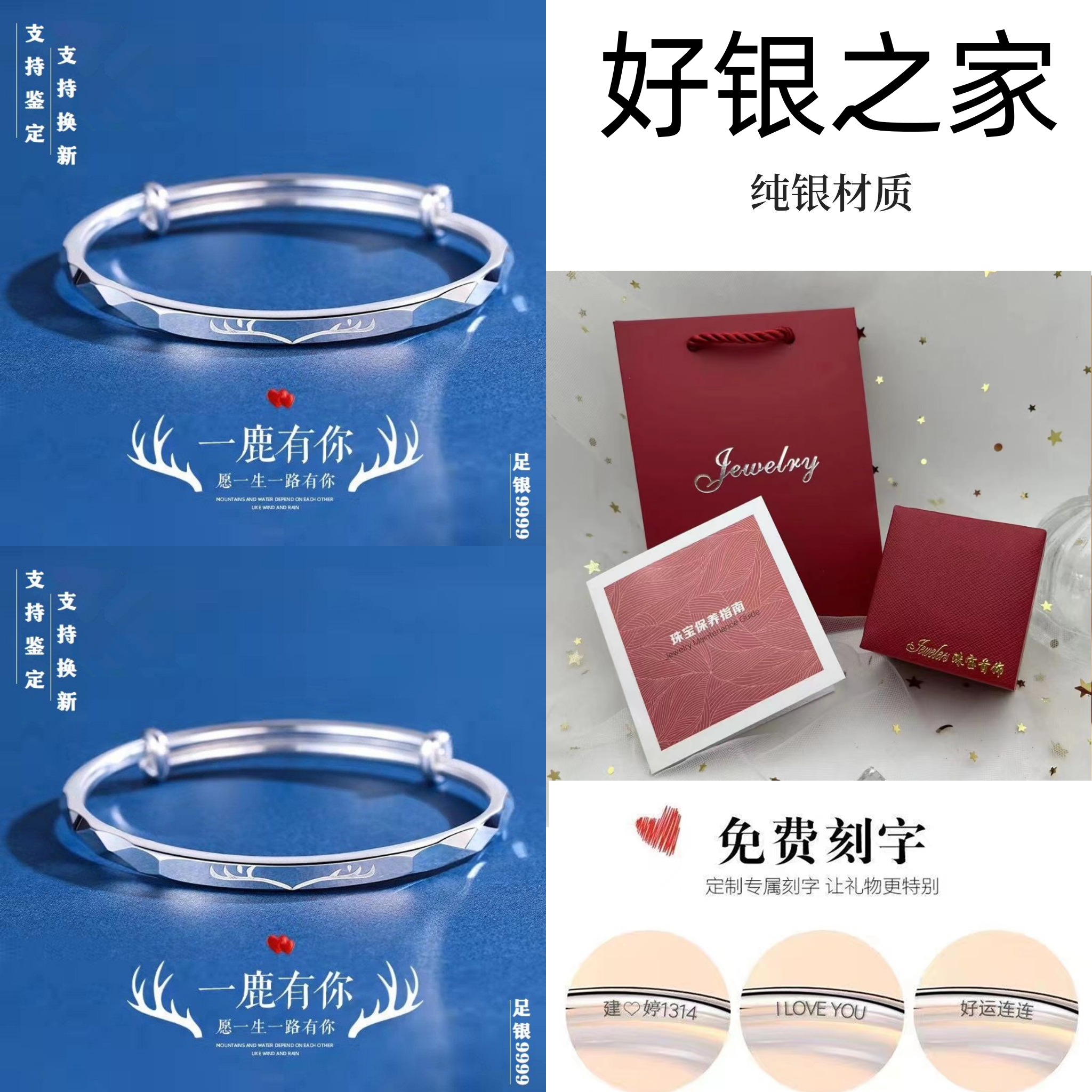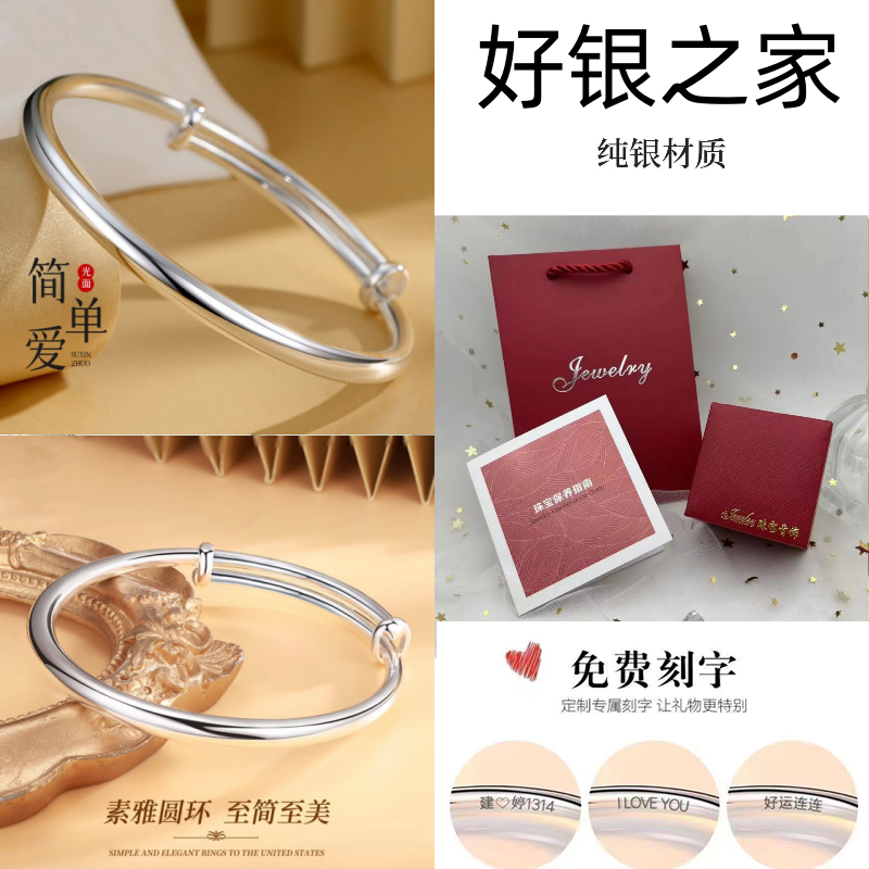 繁花似锦纯银手镯女9999实心足银镯子新款爆火礼物送女友送妈妈
