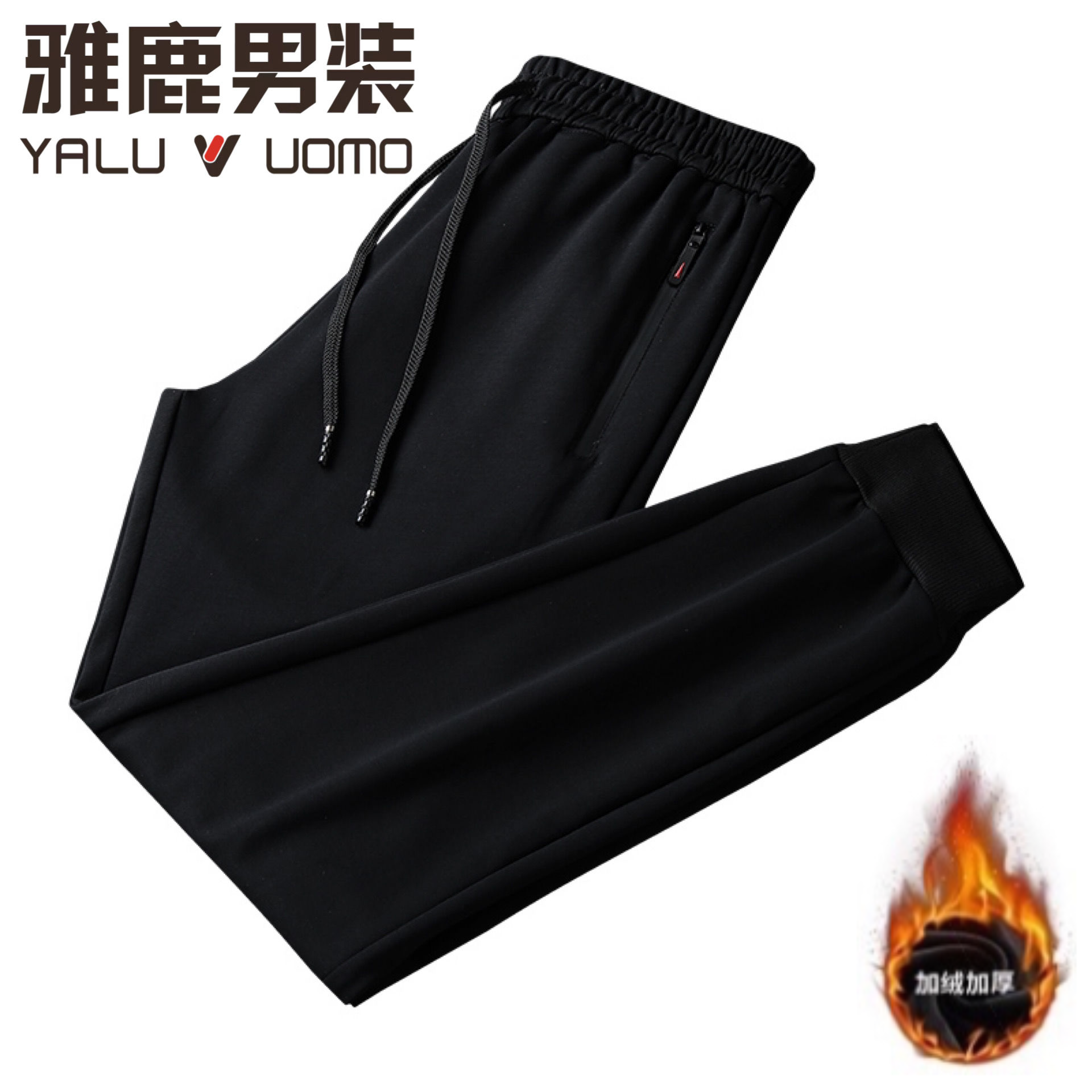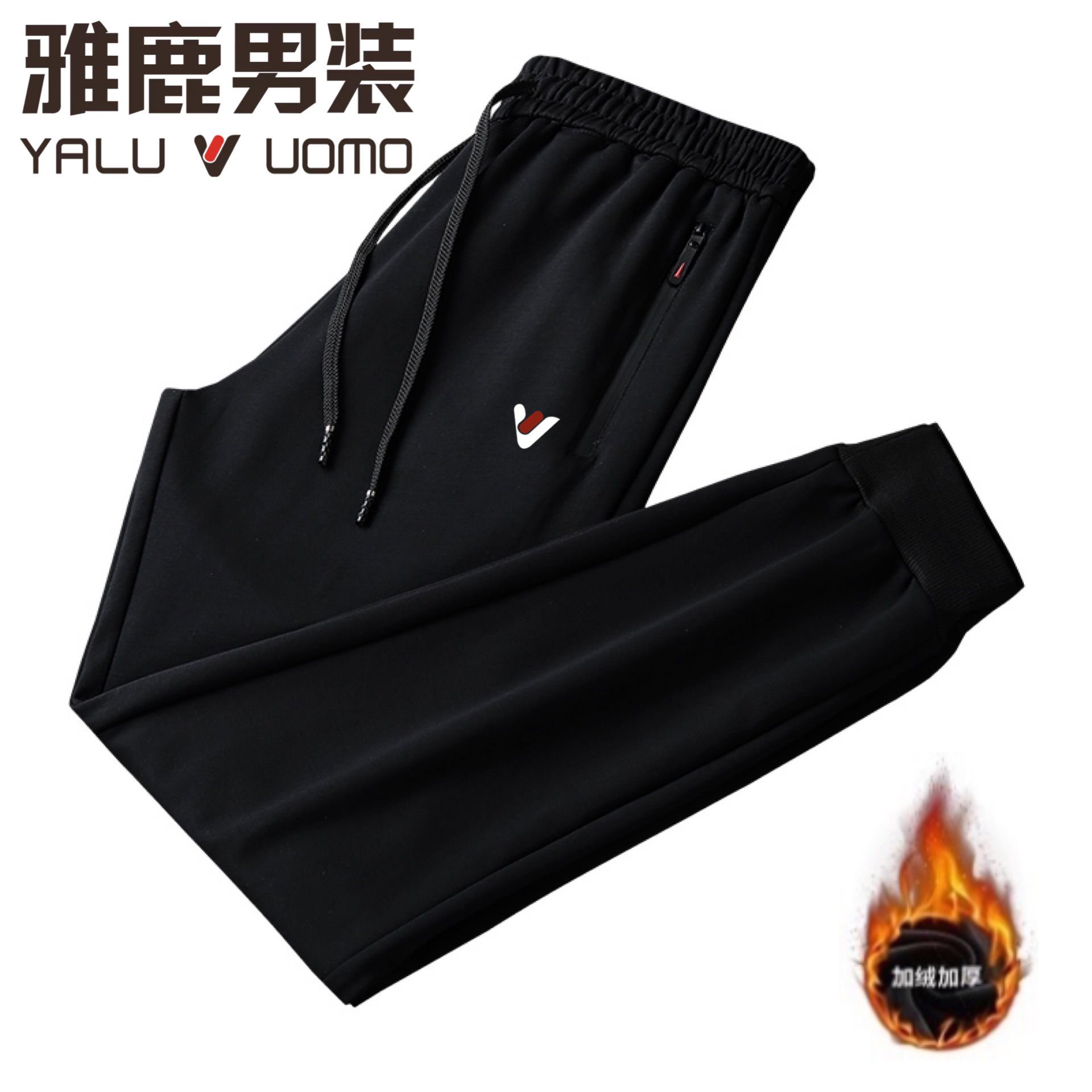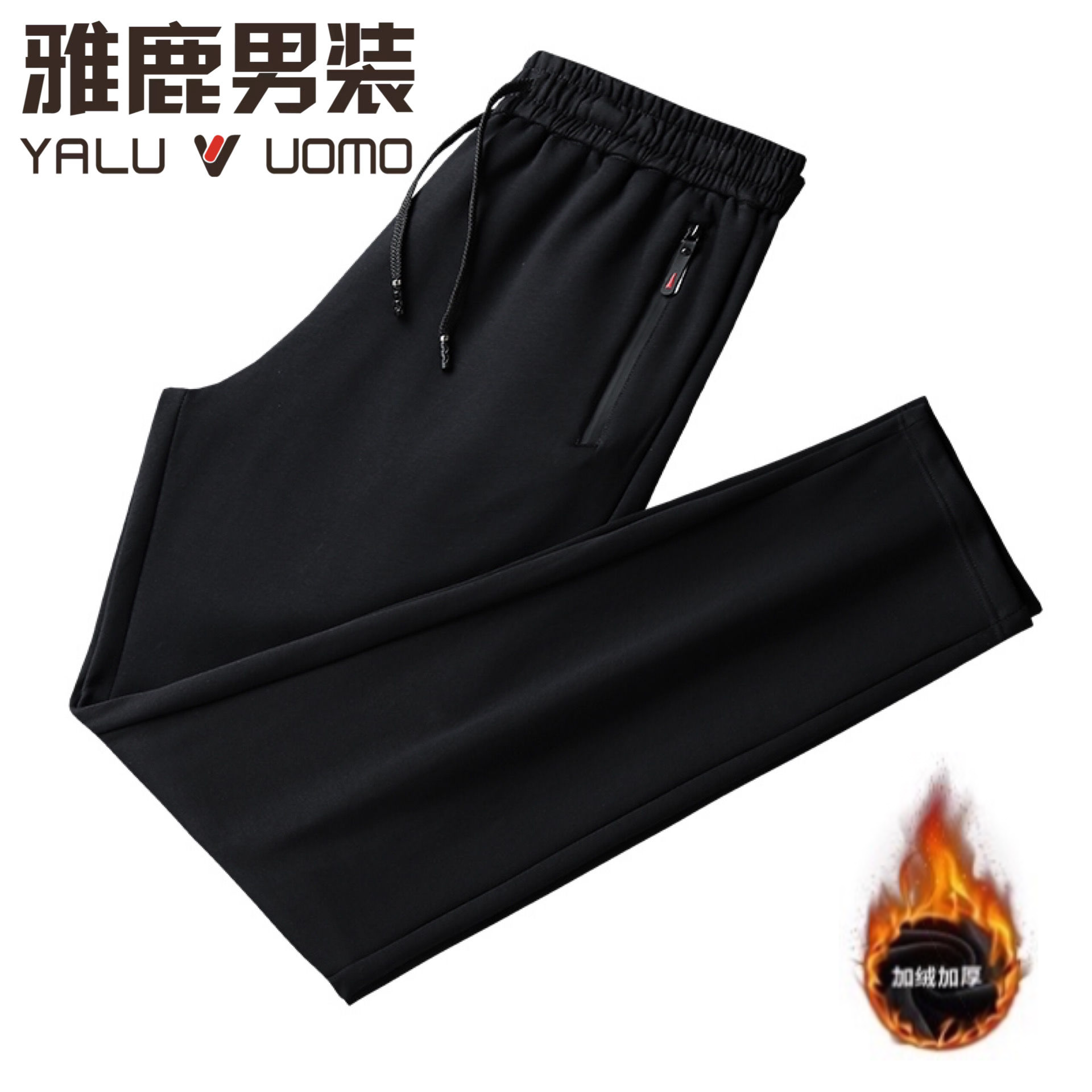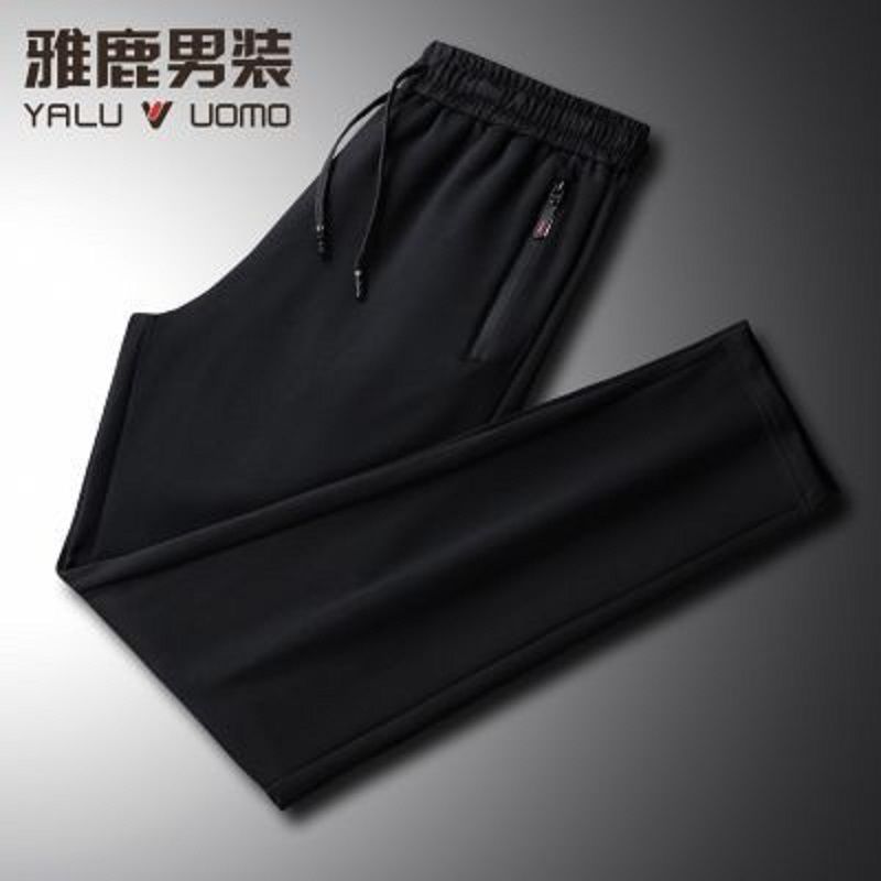 雅鹿男装【厚薄可选】春秋休闲长裤大码加绒高腰弹力直筒厚运动裤