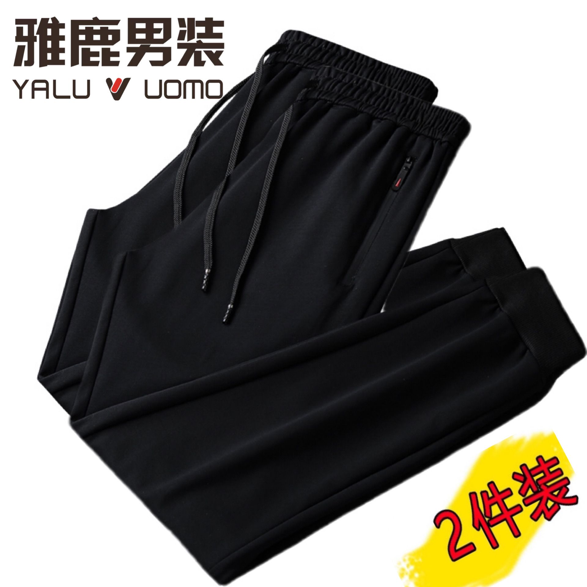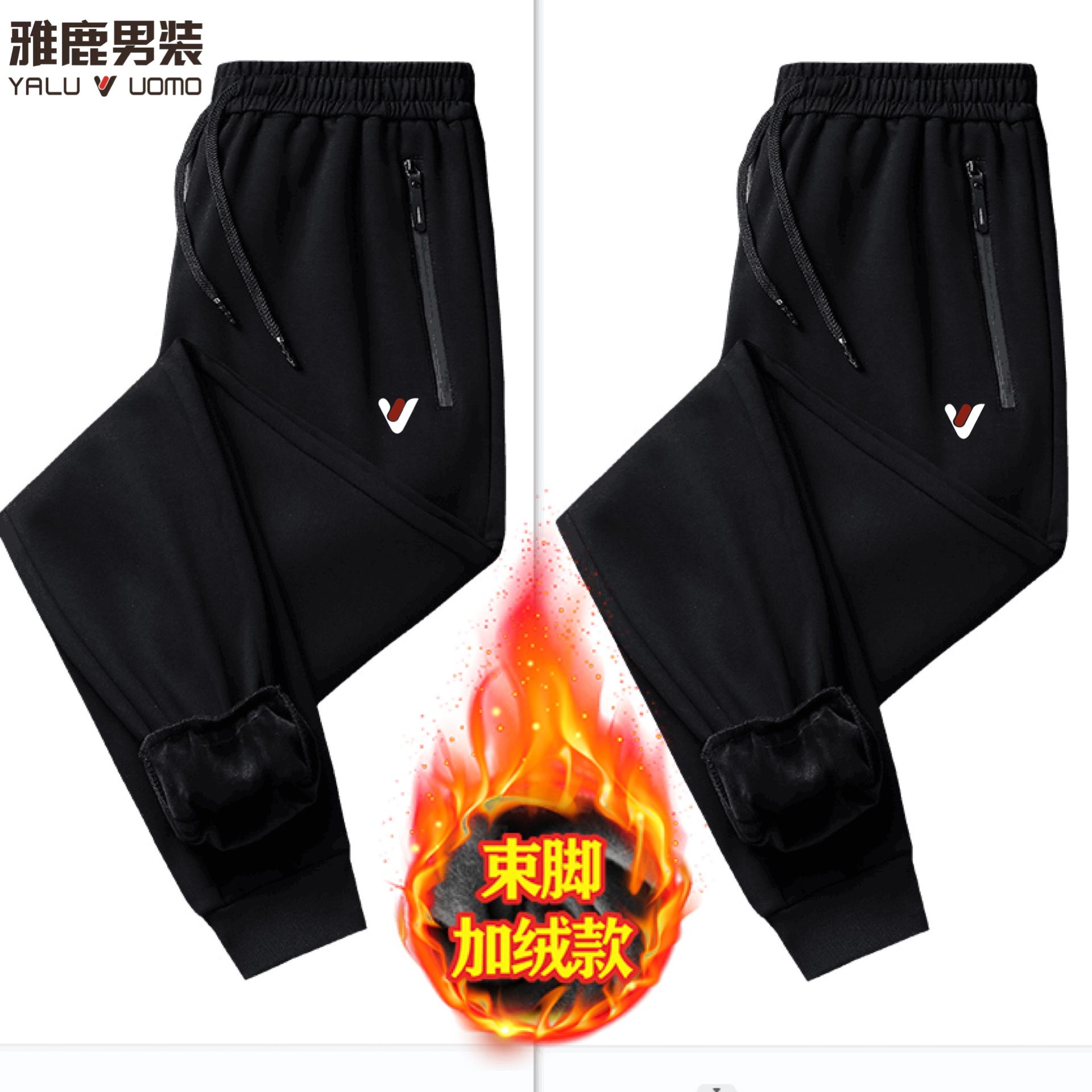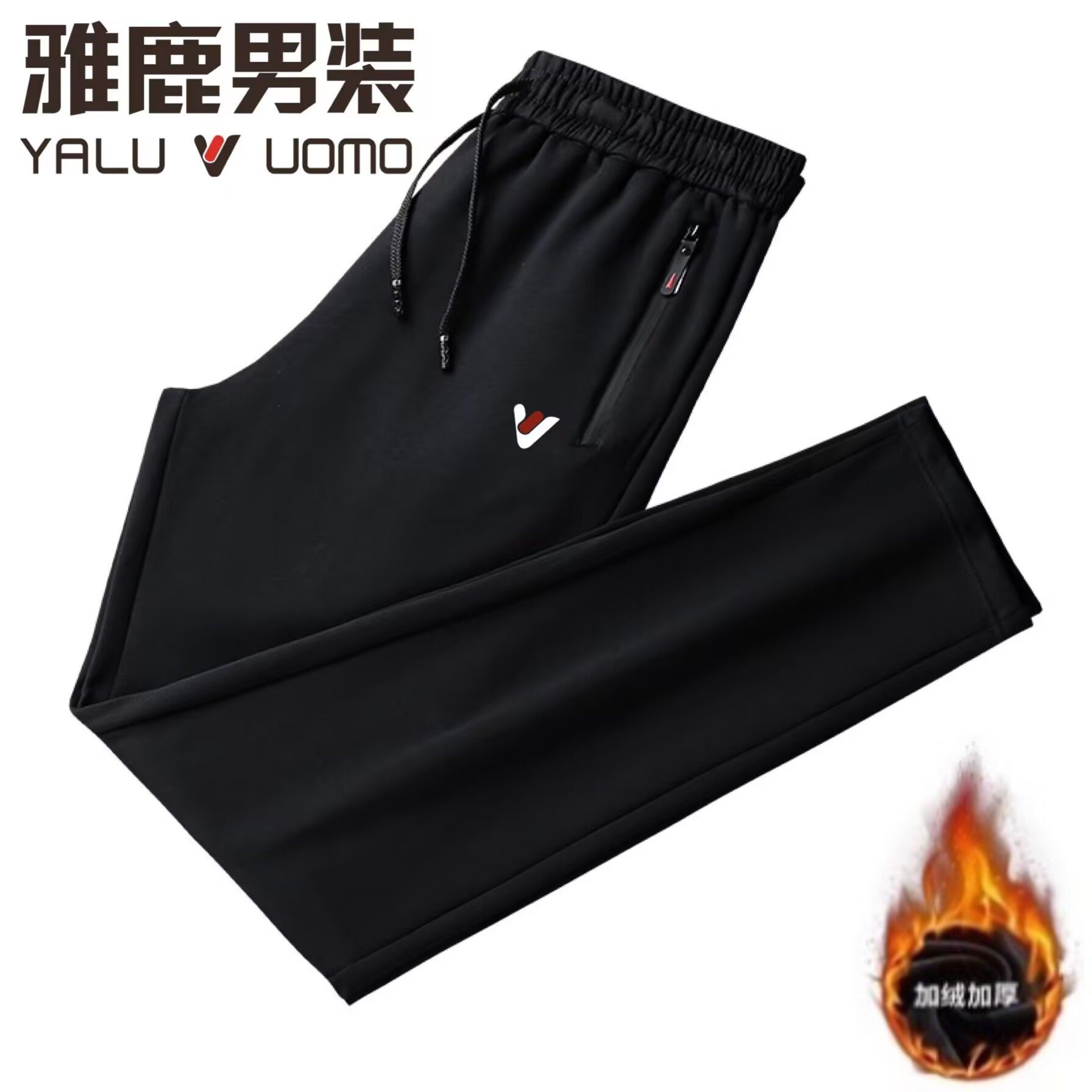 雅鹿男装【厚薄可选】春秋休闲长裤大码加绒高腰弹力直筒厚运动裤