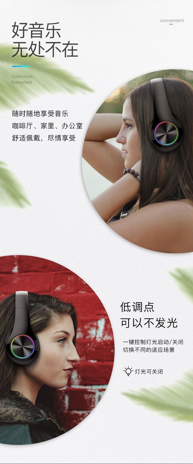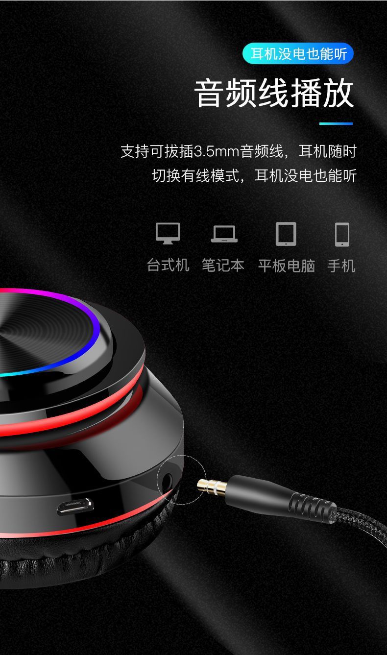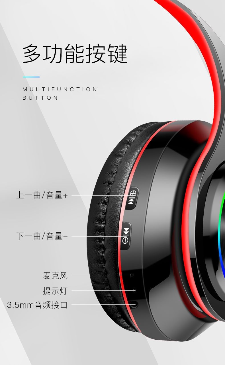 发光蓝牙耳机头戴式耳机重低音无线耳麦华为OPPO安卓苹果手机通用
