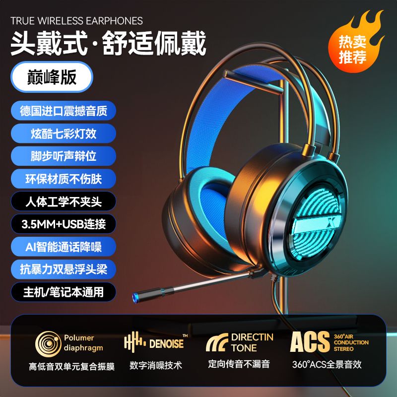 蓝悦有线电竞头戴电脑耳机麦克风2024新款游戏台式笔记本网吧设计
