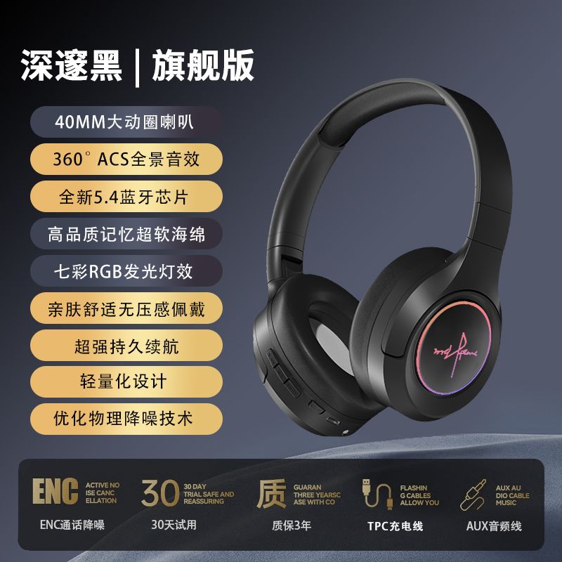 影巨人无线蓝牙耳机头戴式电竞跑步游戏运动重低音降噪手机通用