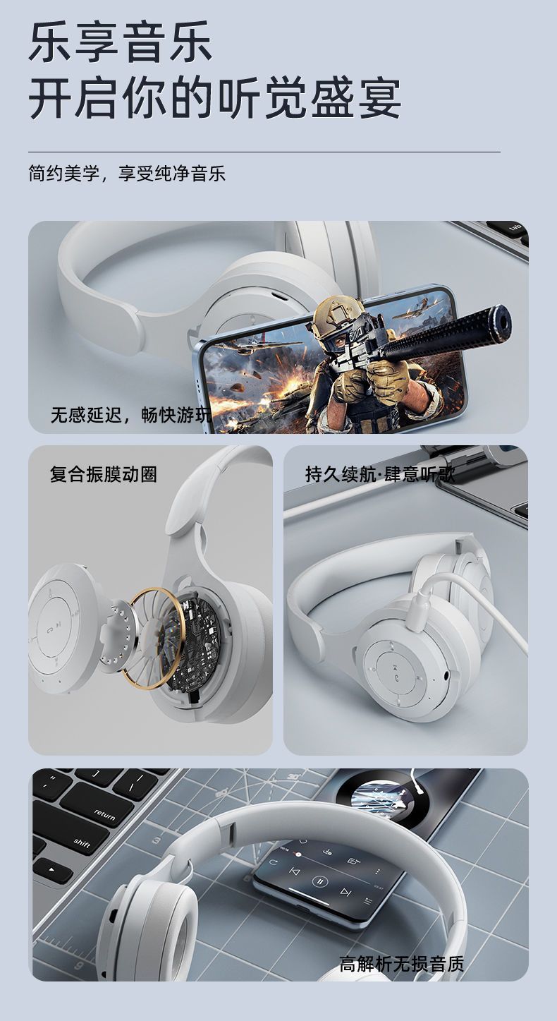 头戴式无线游戏蓝牙运动耳机耳麦华为苹果小米vivoOPPO通用可爱