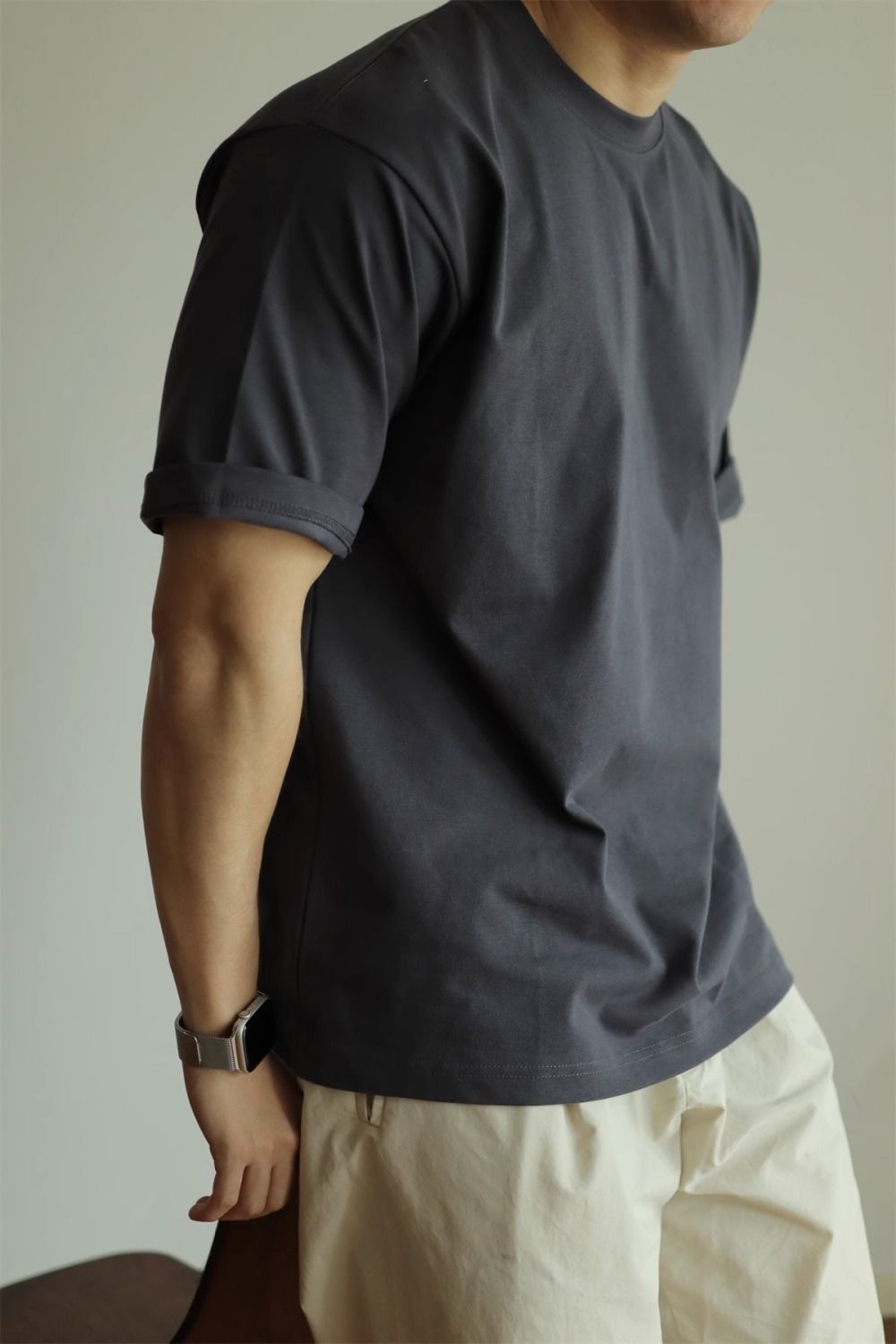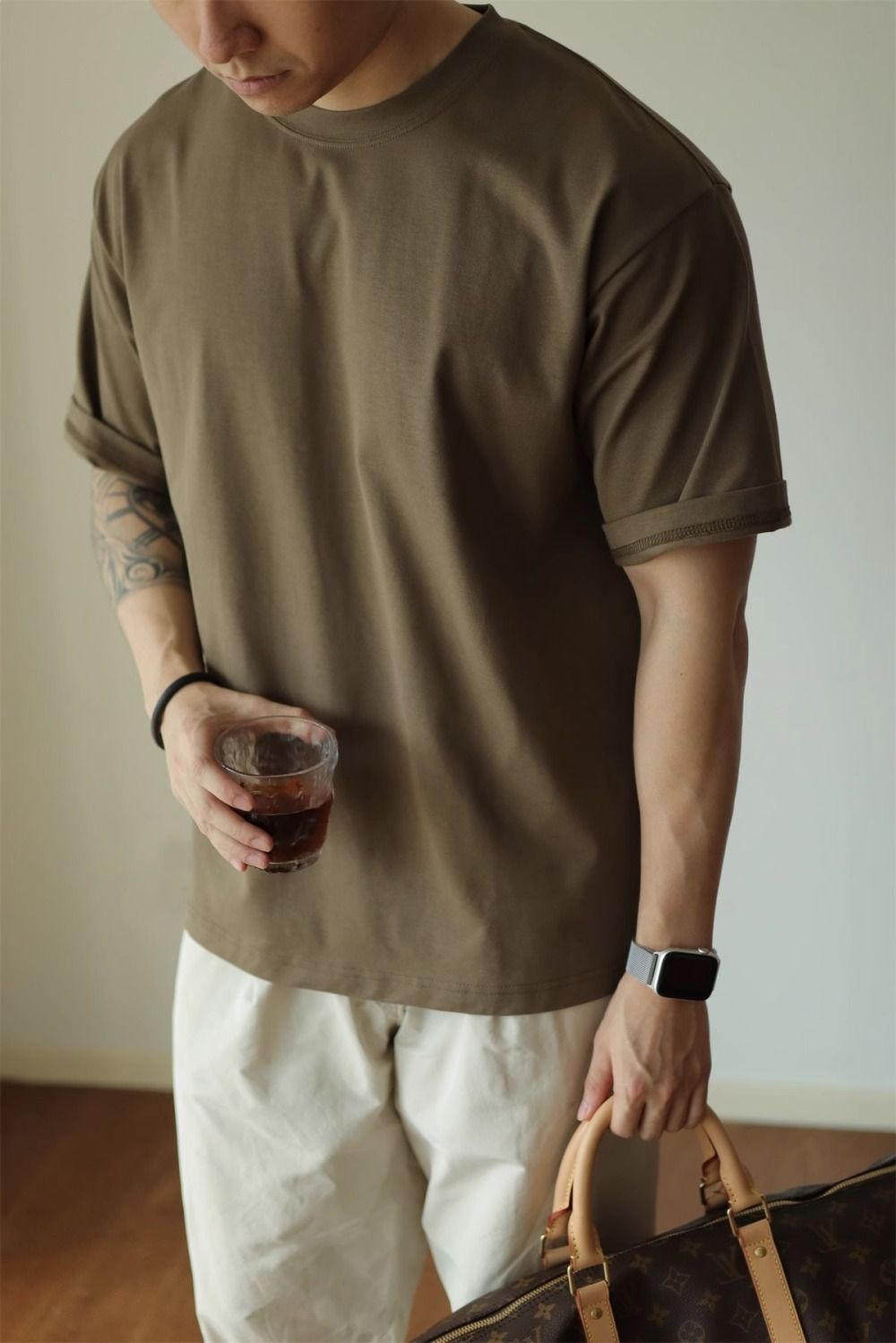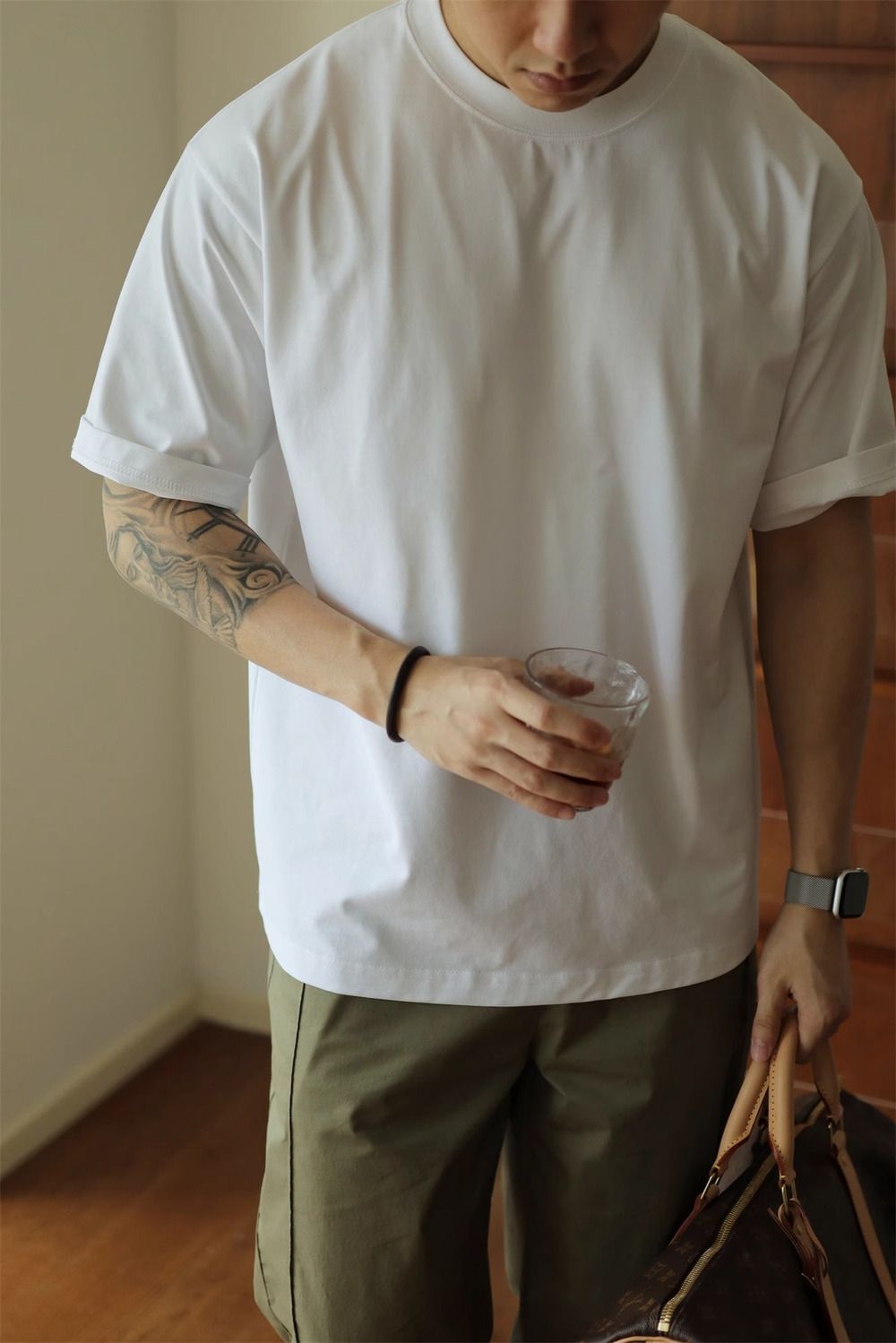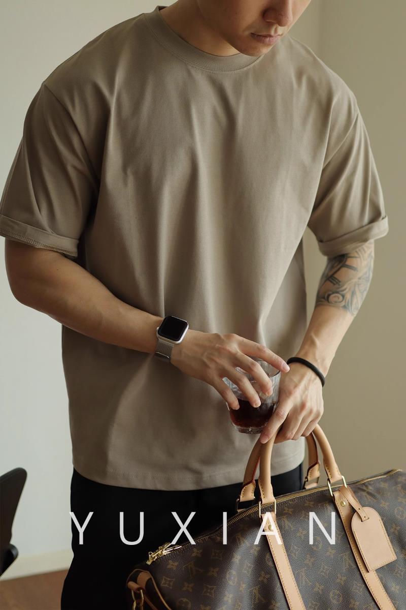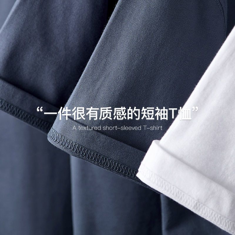 三本针 美式300g重磅短袖t恤男士纯棉纯色复古工装打底衫半袖宽松