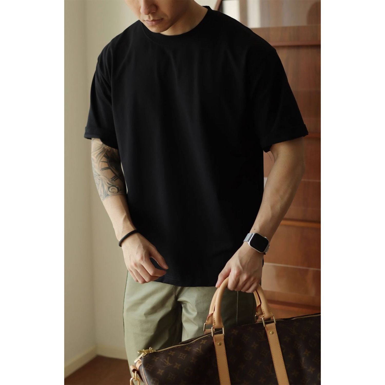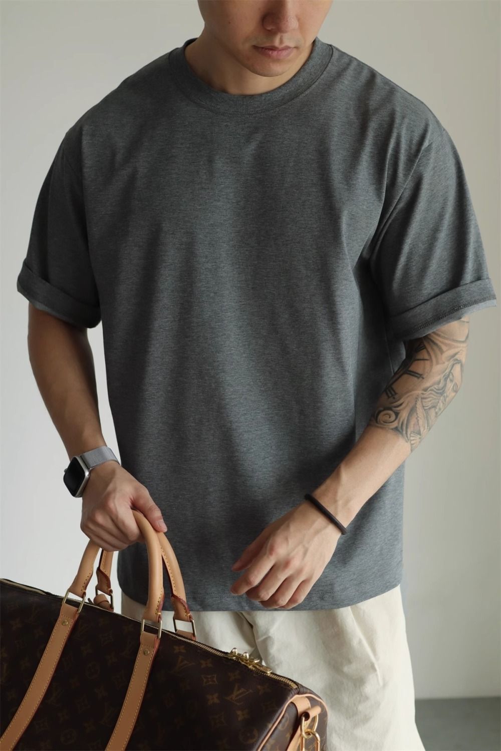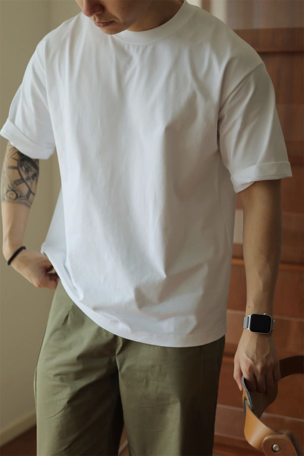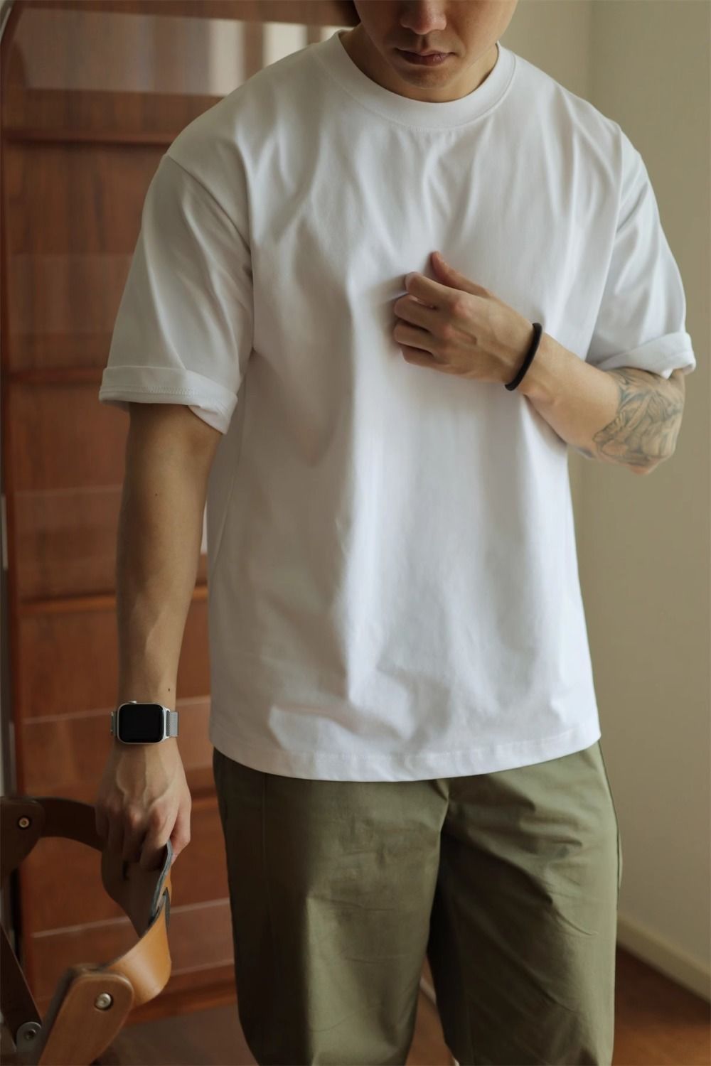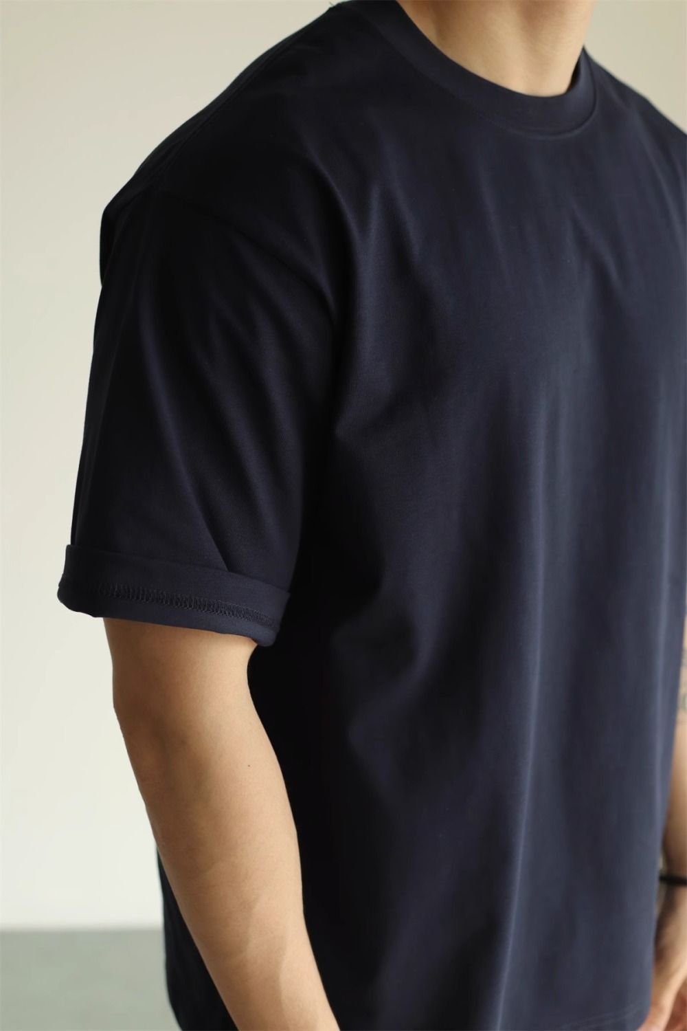 三本针 美式300g重磅短袖t恤男士纯棉纯色复古工装打底衫半袖宽松