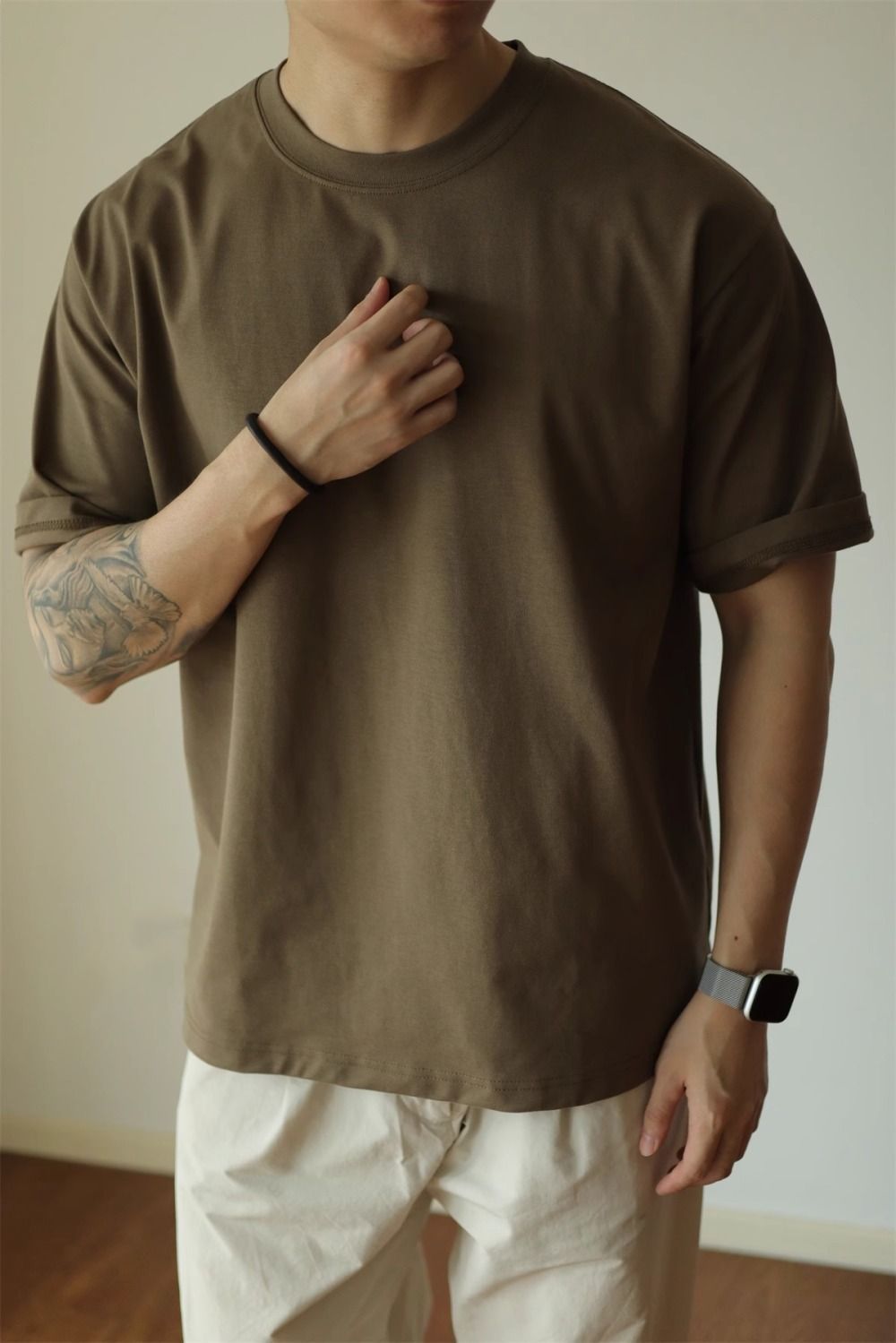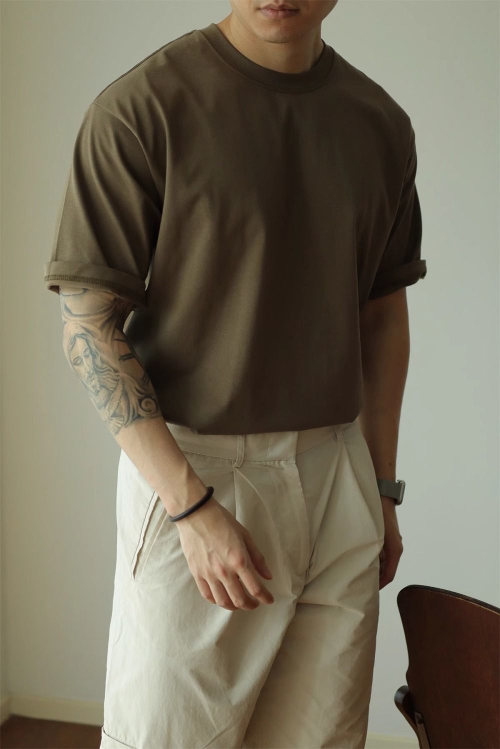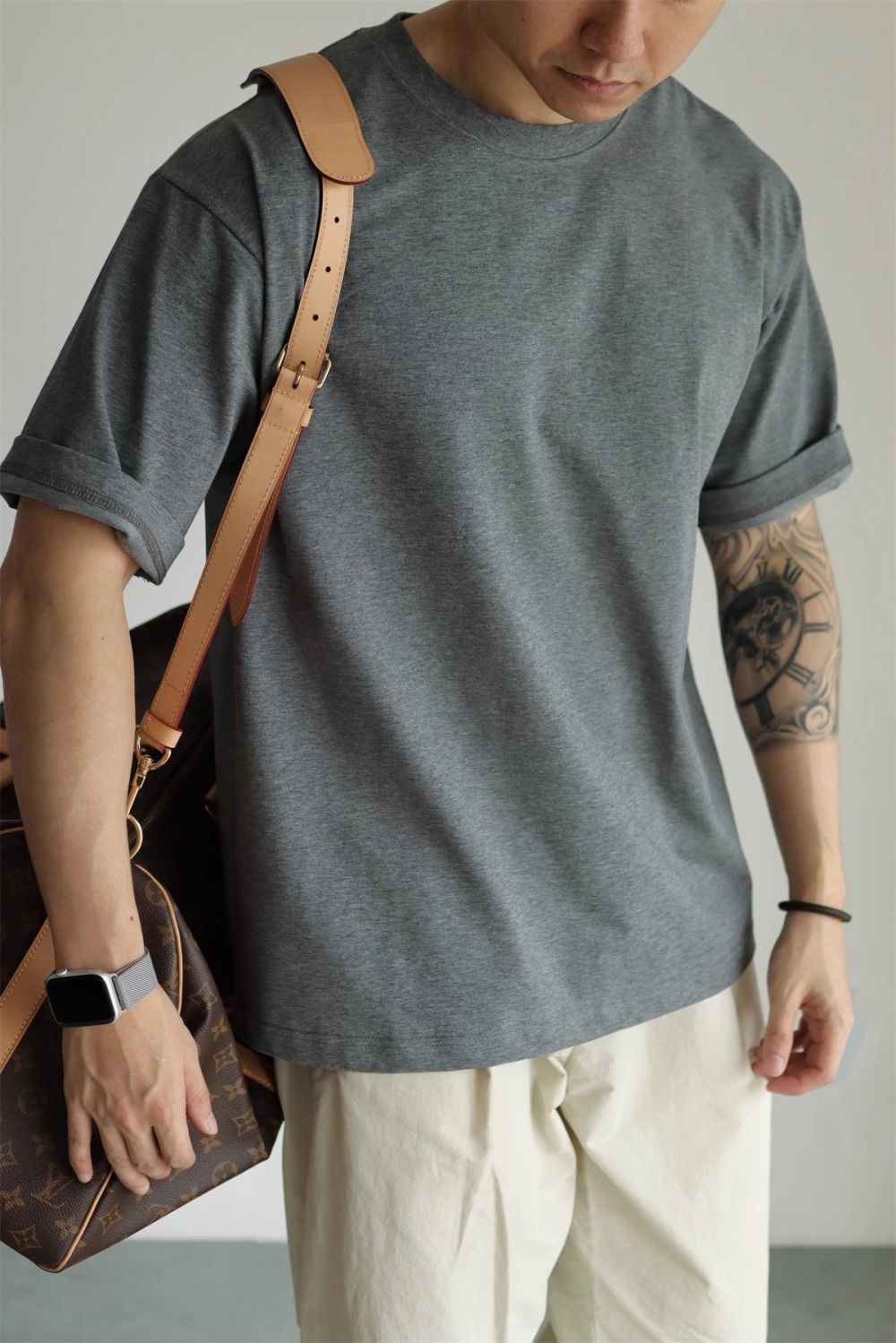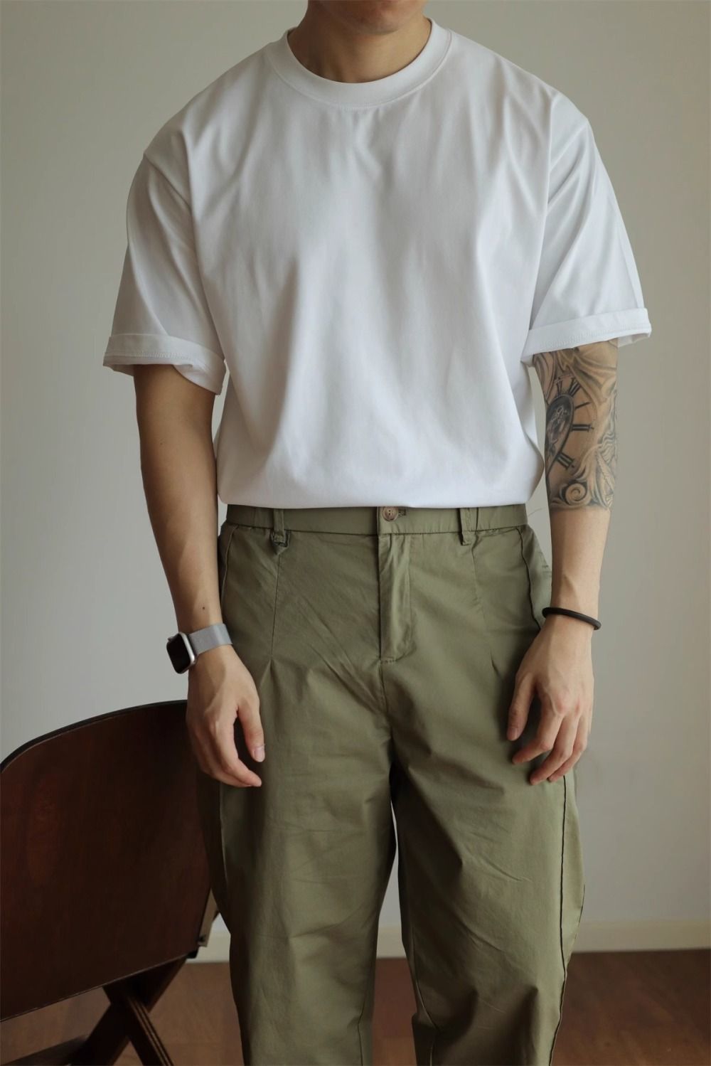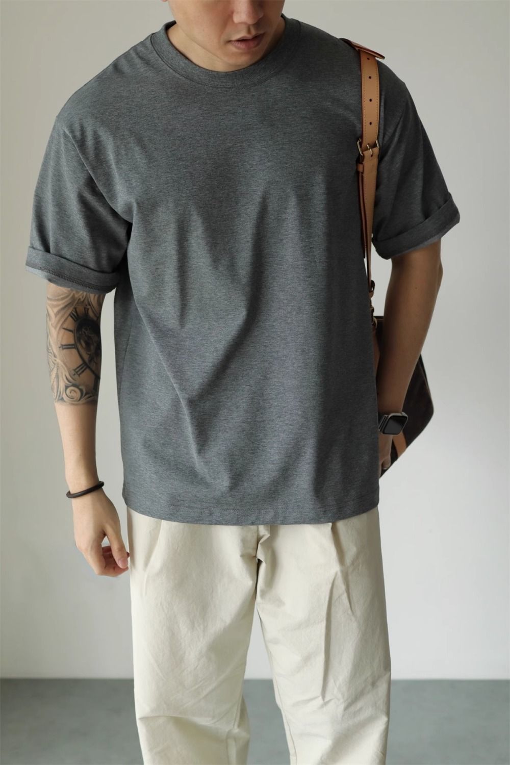 三本针 美式300g重磅短袖t恤男士纯棉纯色复古工装打底衫半袖宽松