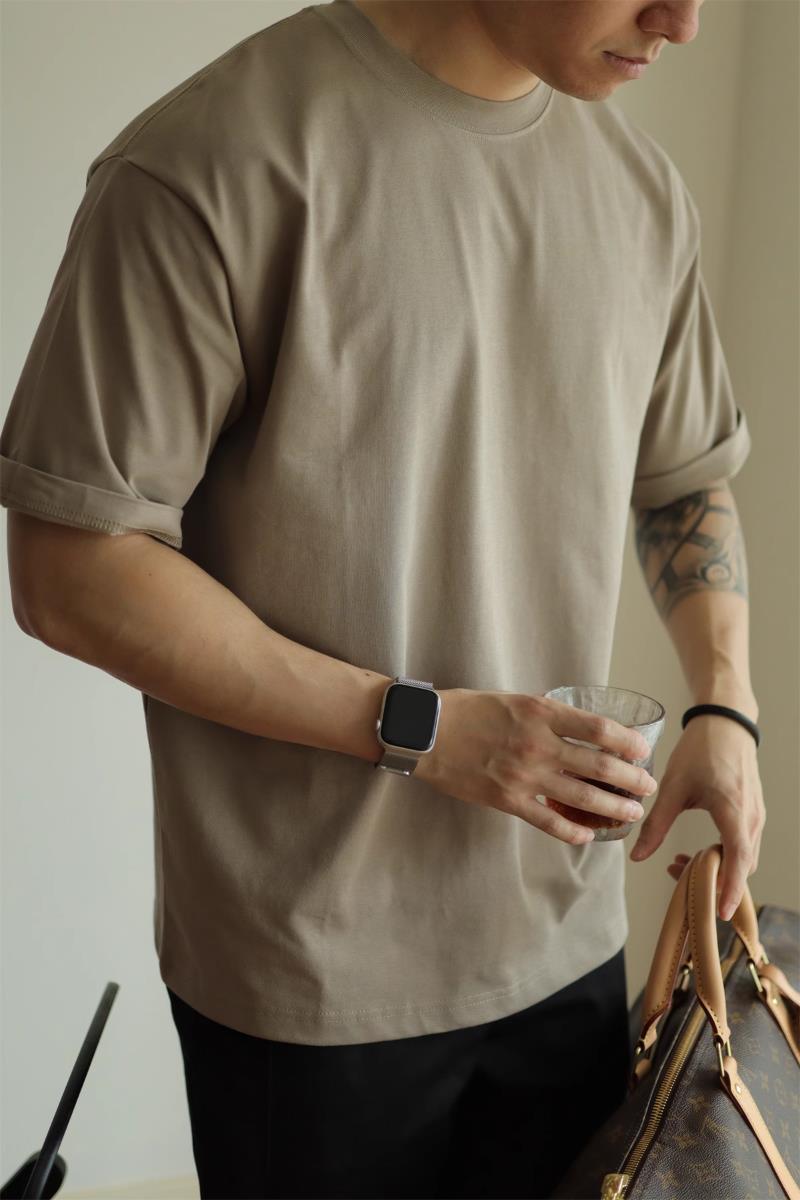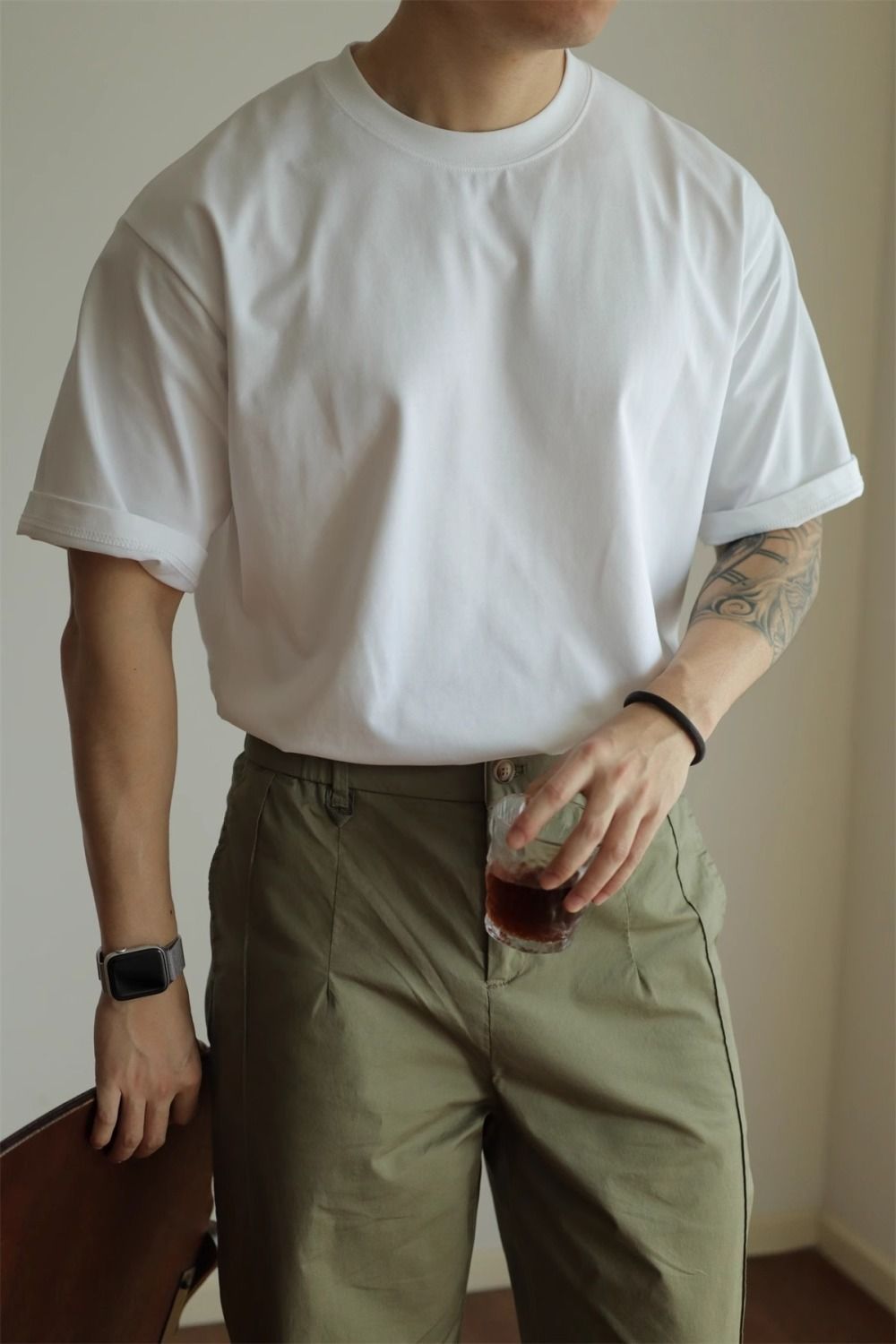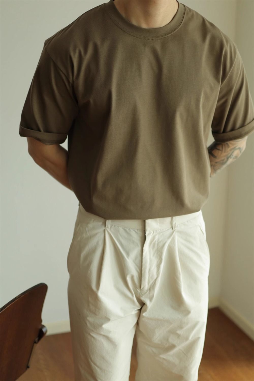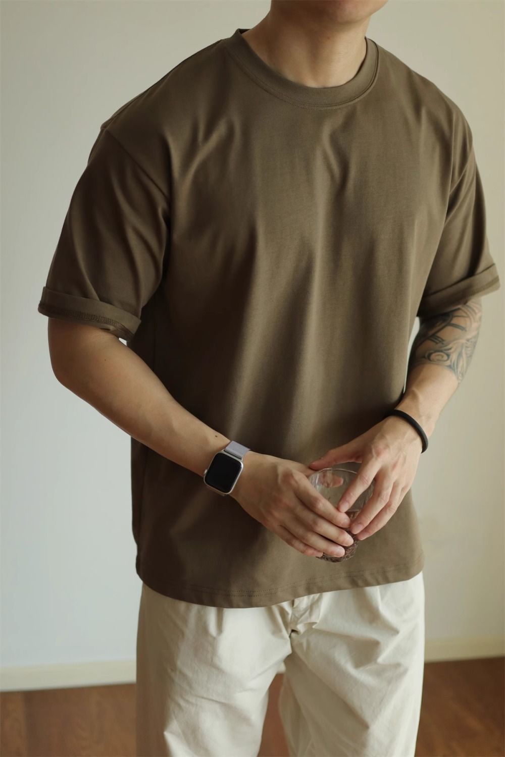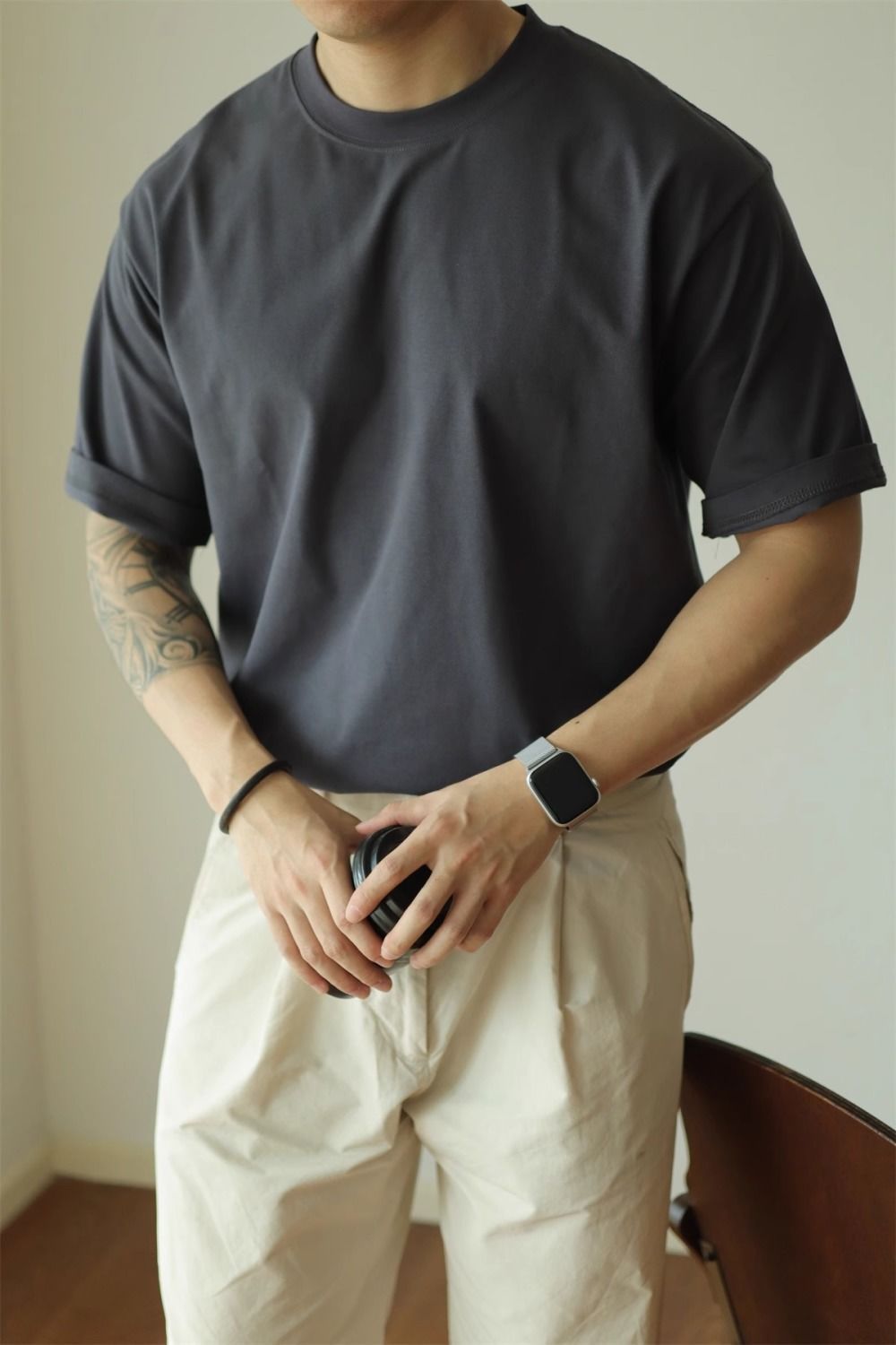 三本针 美式300g重磅短袖t恤男士纯棉纯色复古工装打底衫半袖宽松