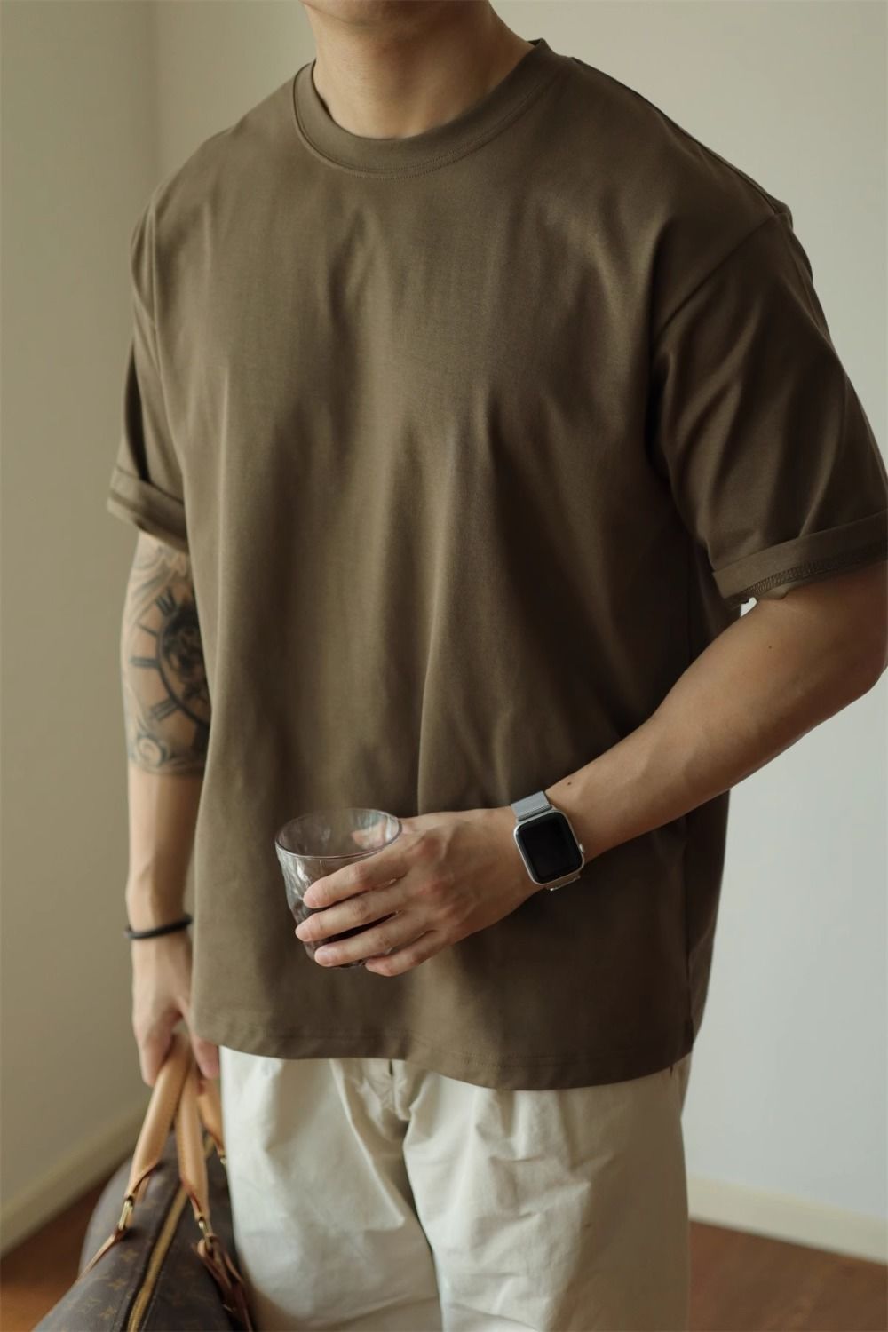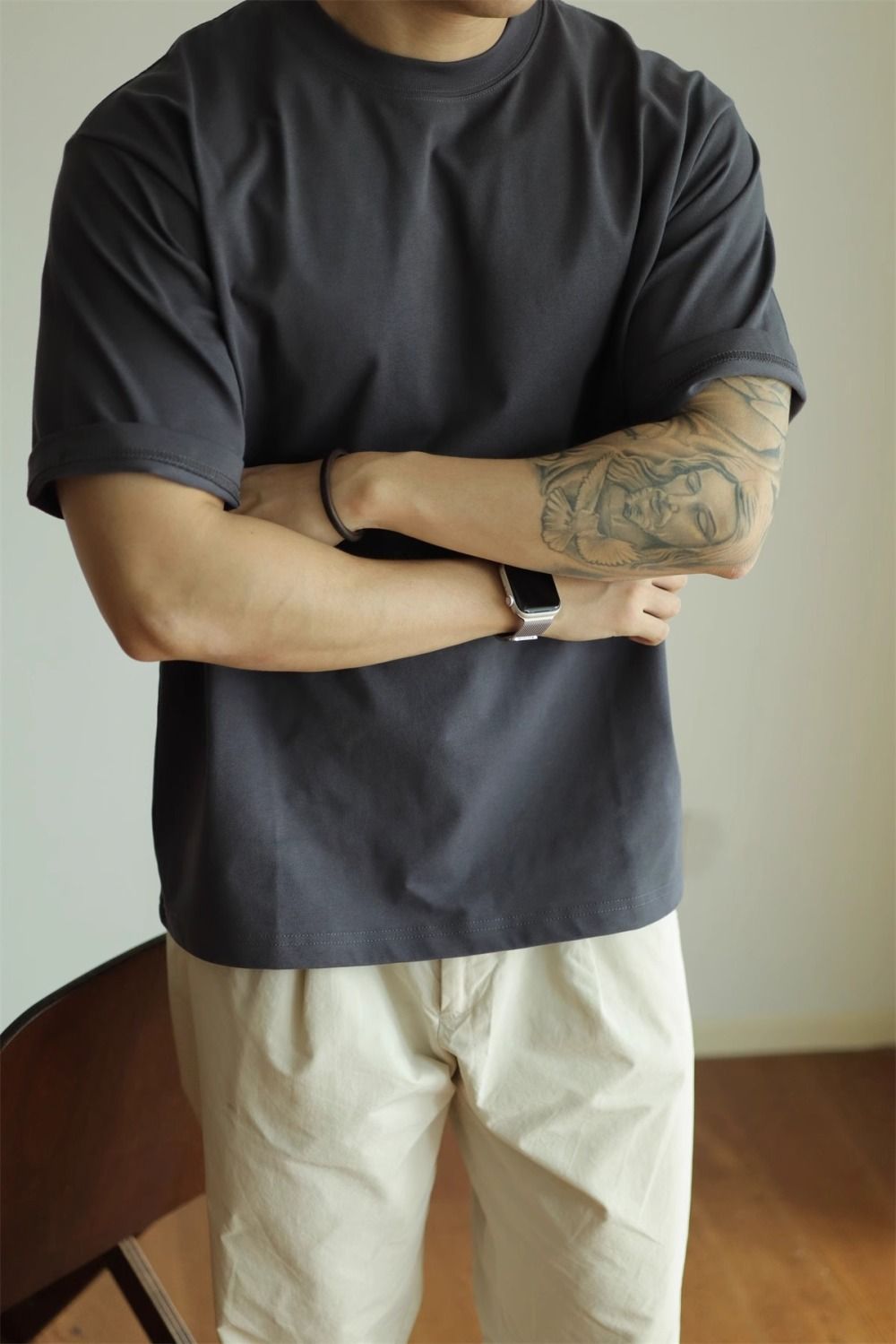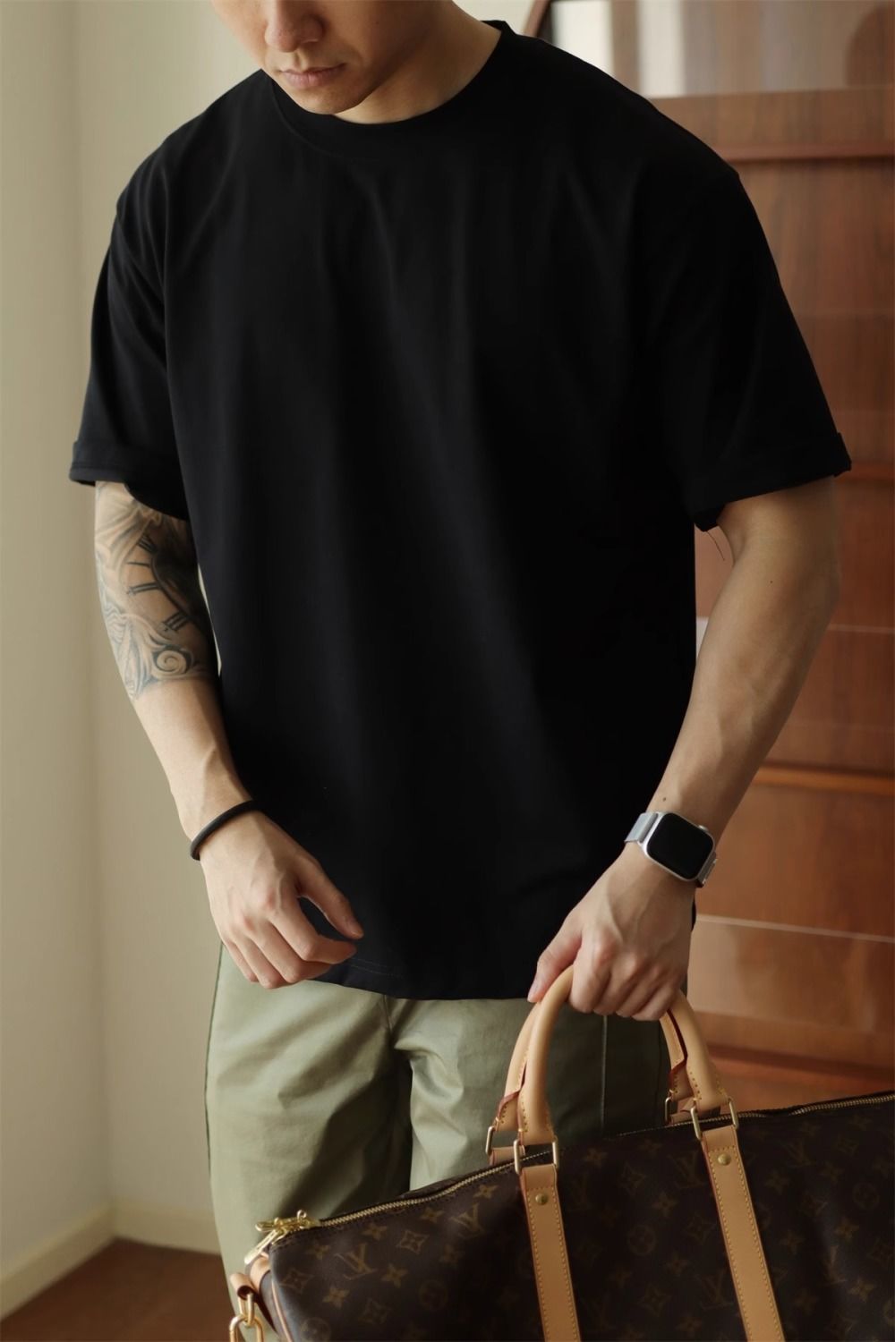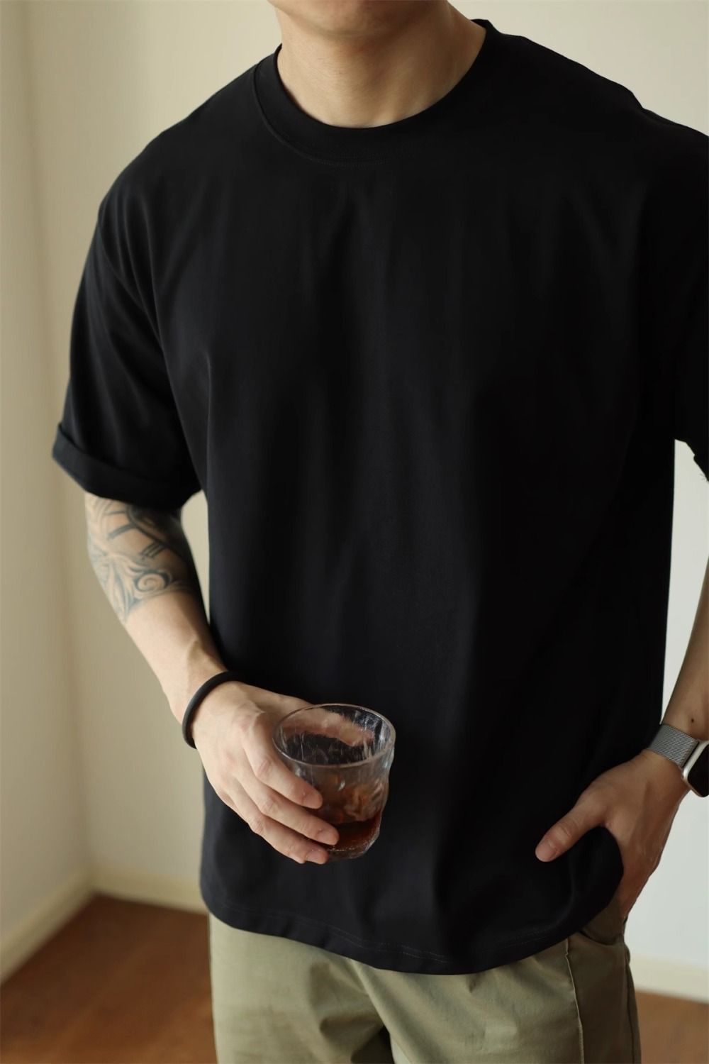 三本针 美式300g重磅短袖t恤男士纯棉纯色复古工装打底衫半袖宽松