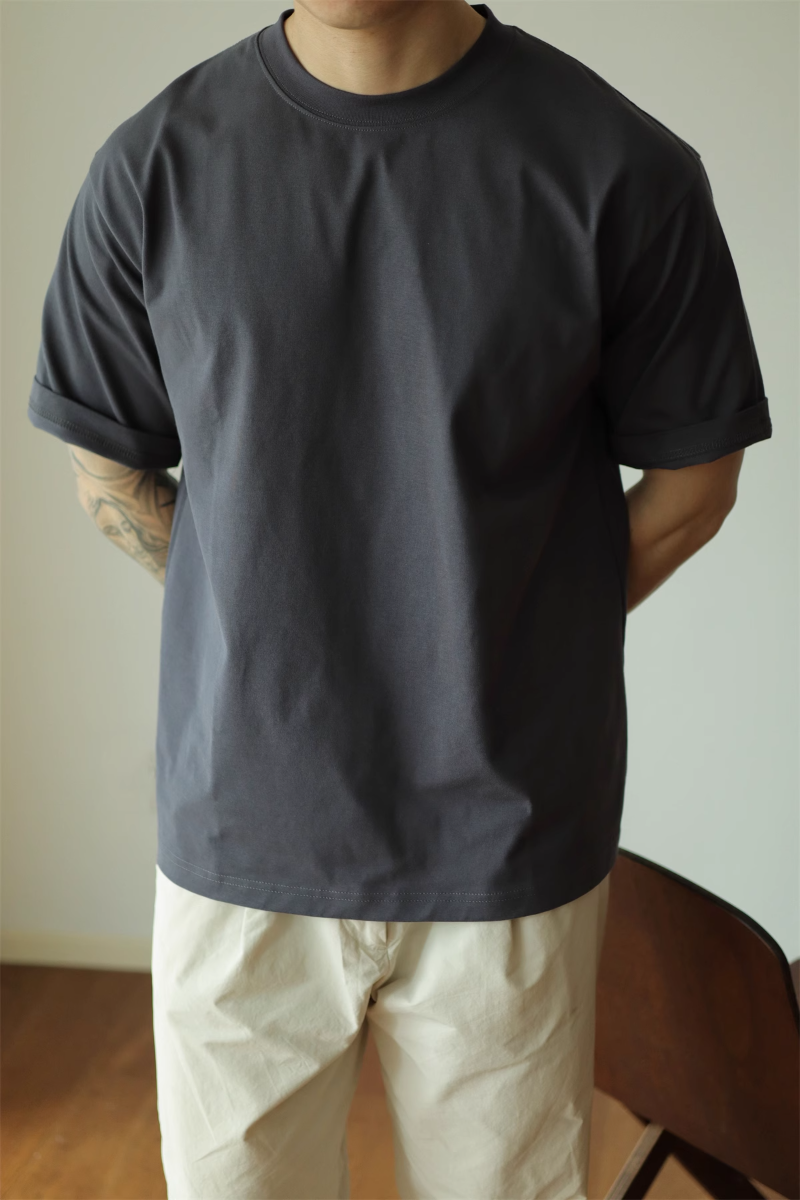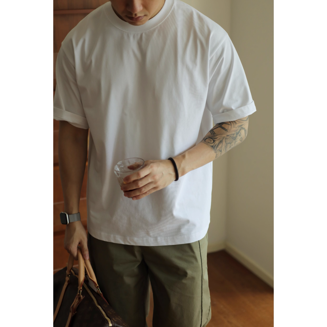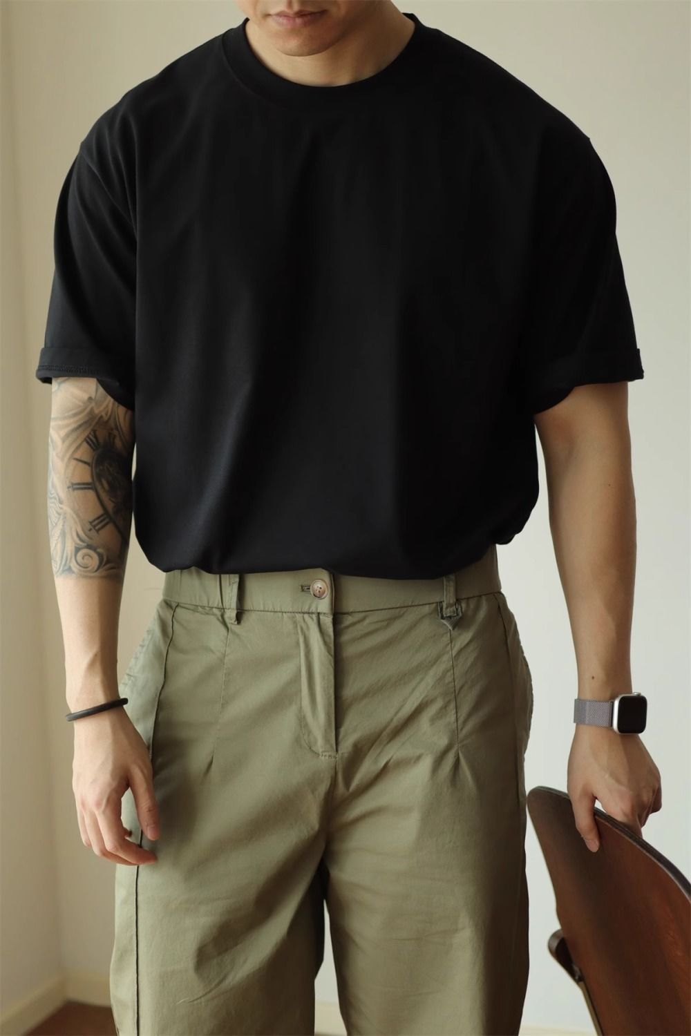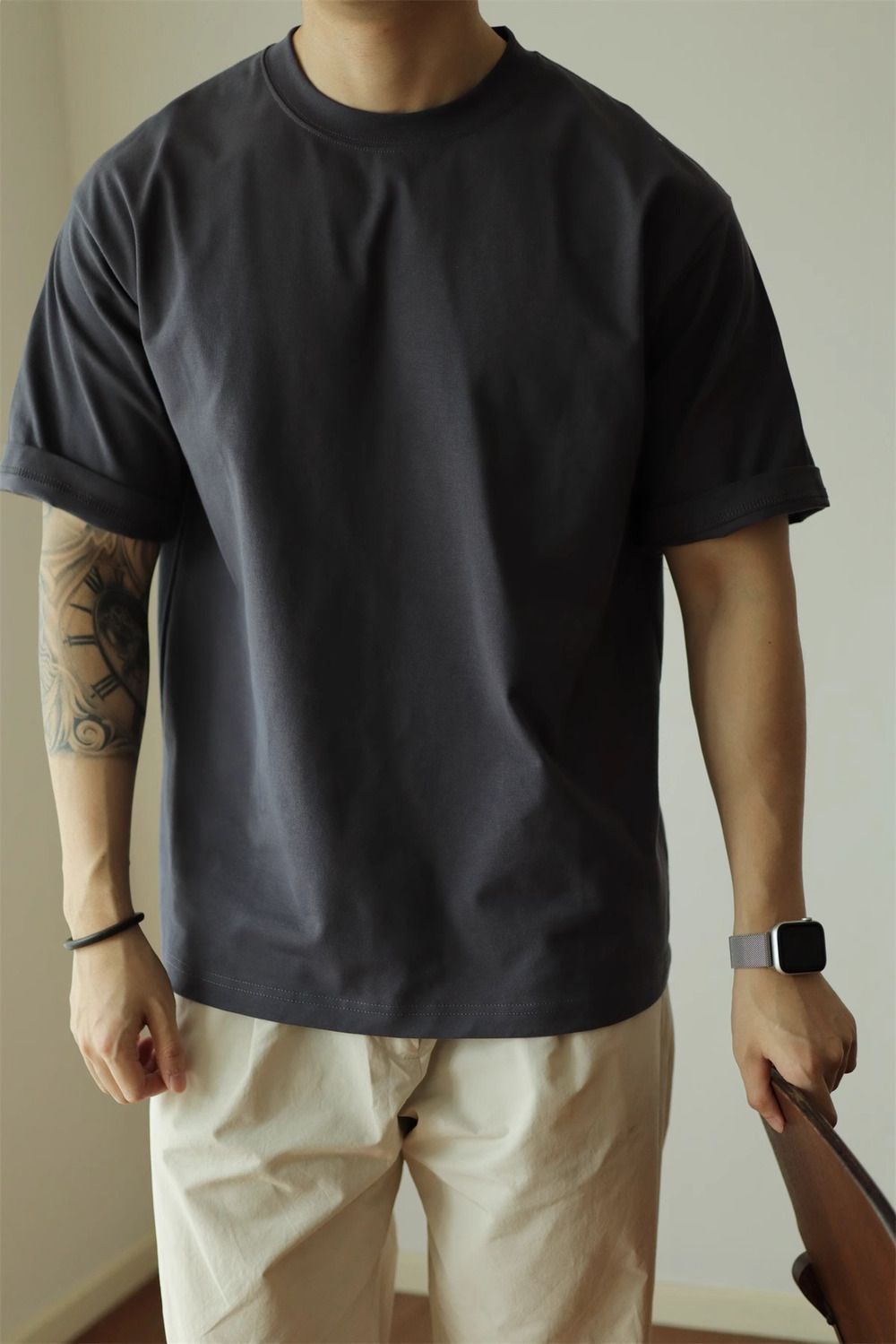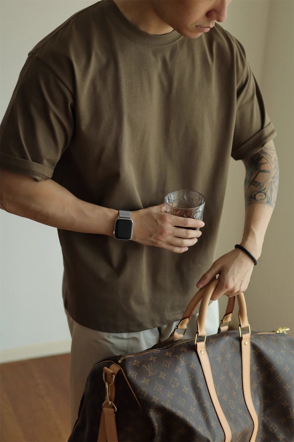 三本针 美式300g重磅短袖t恤男士纯棉纯色复古工装打底衫半袖宽松