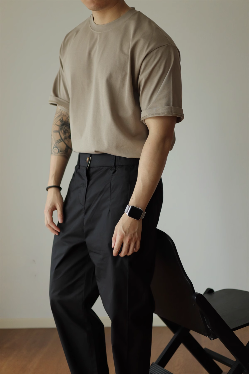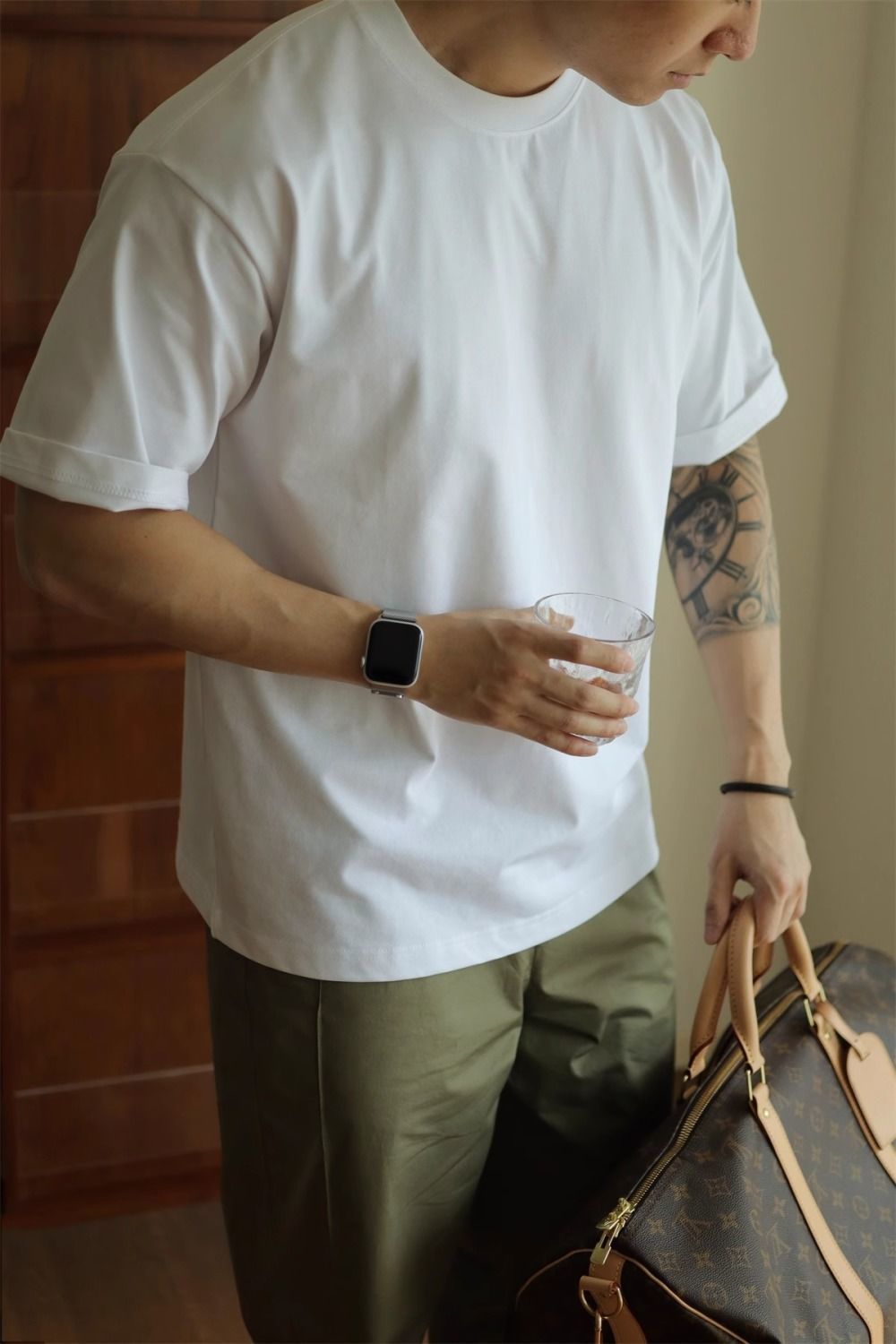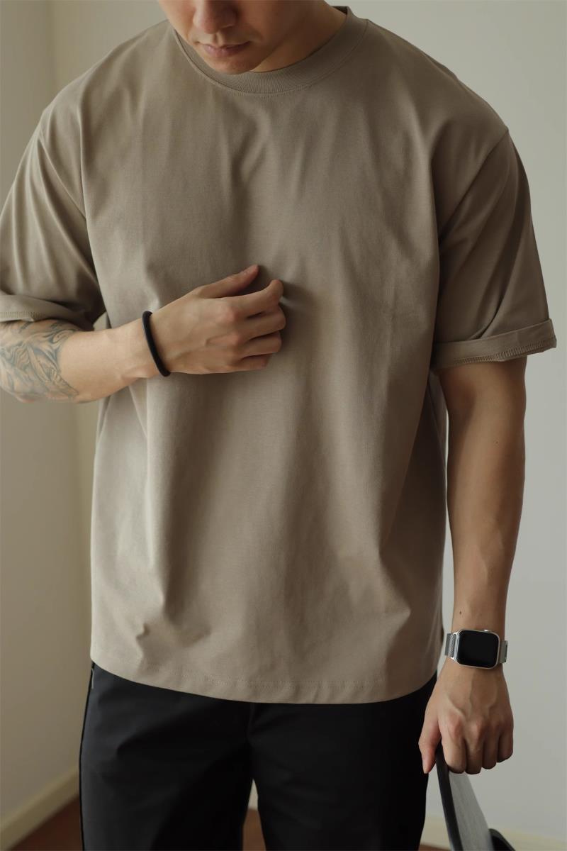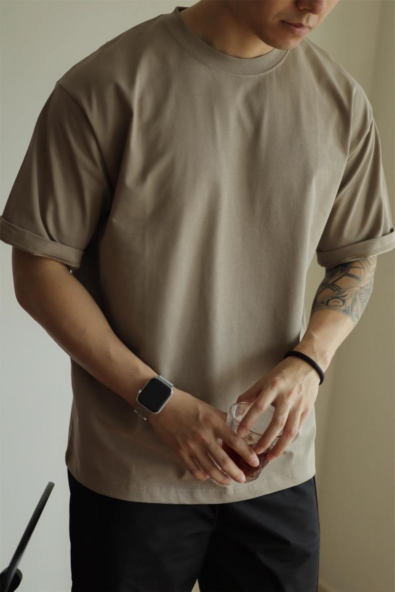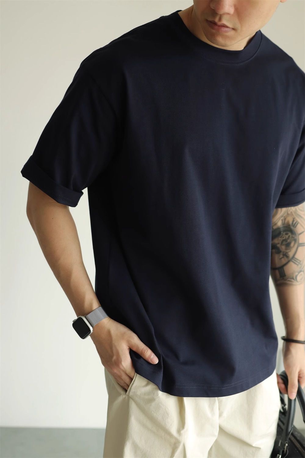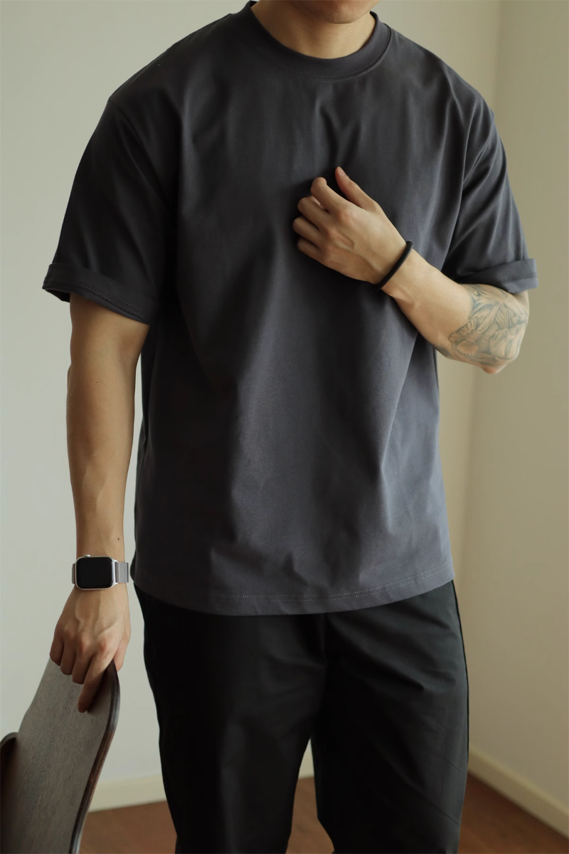三本针 美式300g重磅短袖t恤男士纯棉纯色复古工装打底衫半袖宽松
