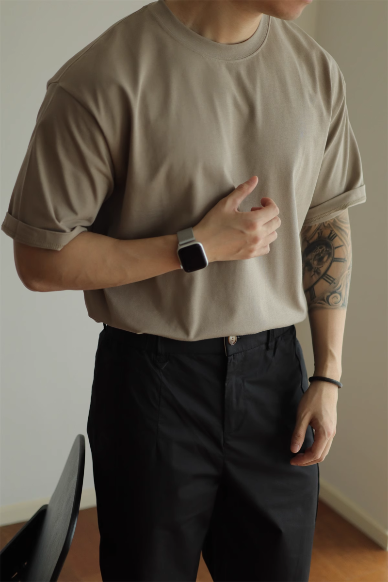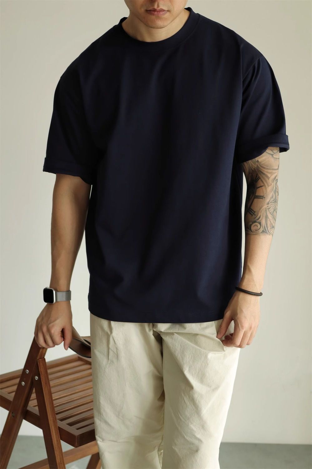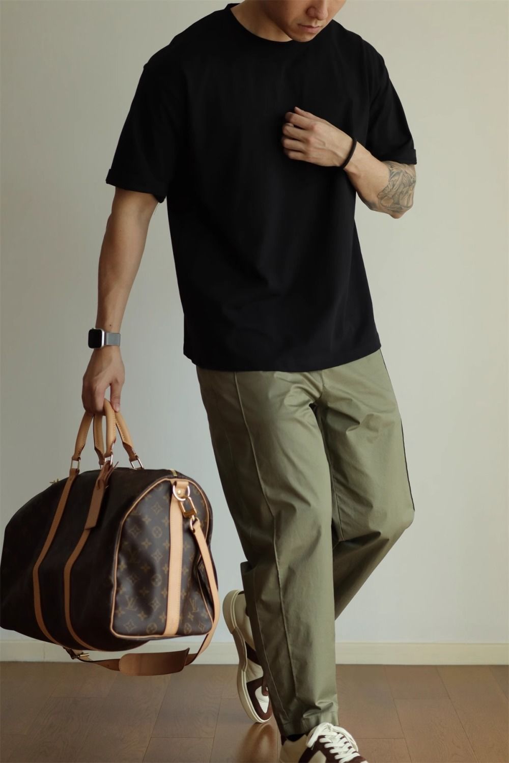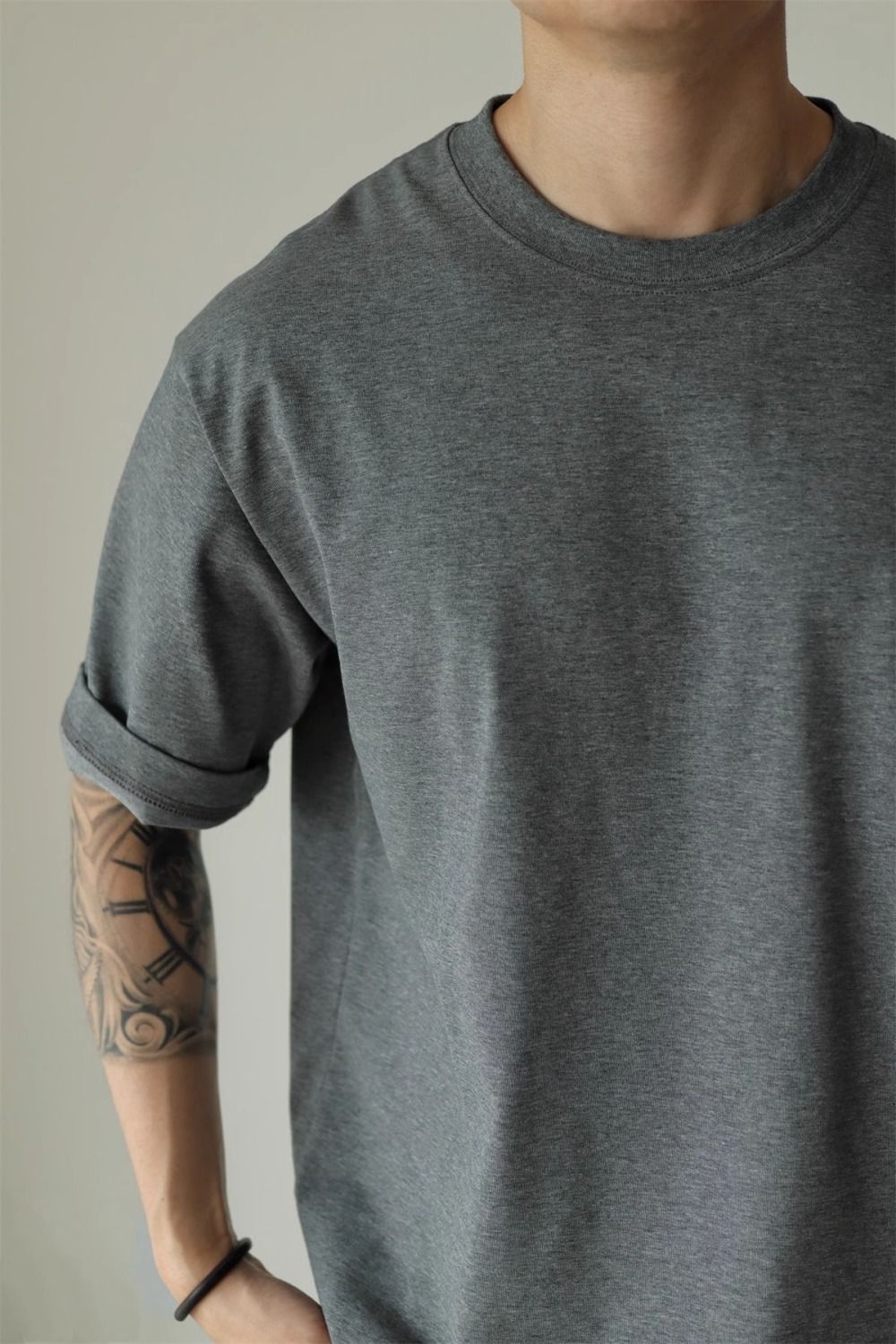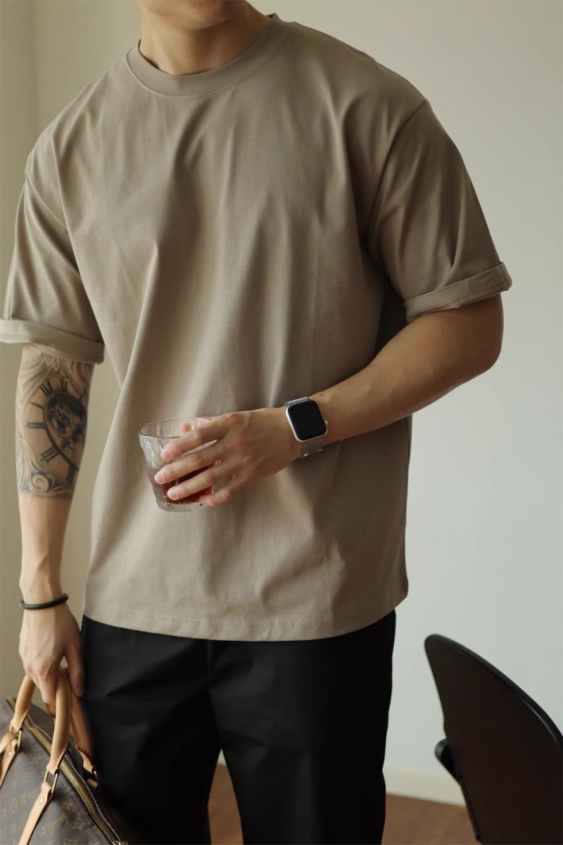 三本针 美式300g重磅短袖t恤男士纯棉纯色复古工装打底衫半袖宽松