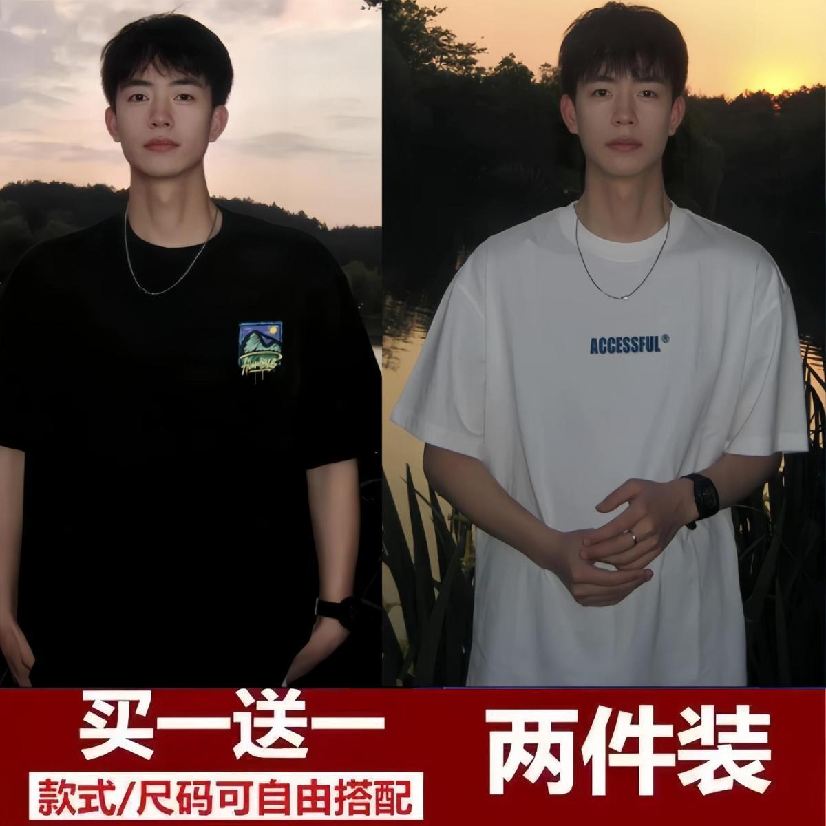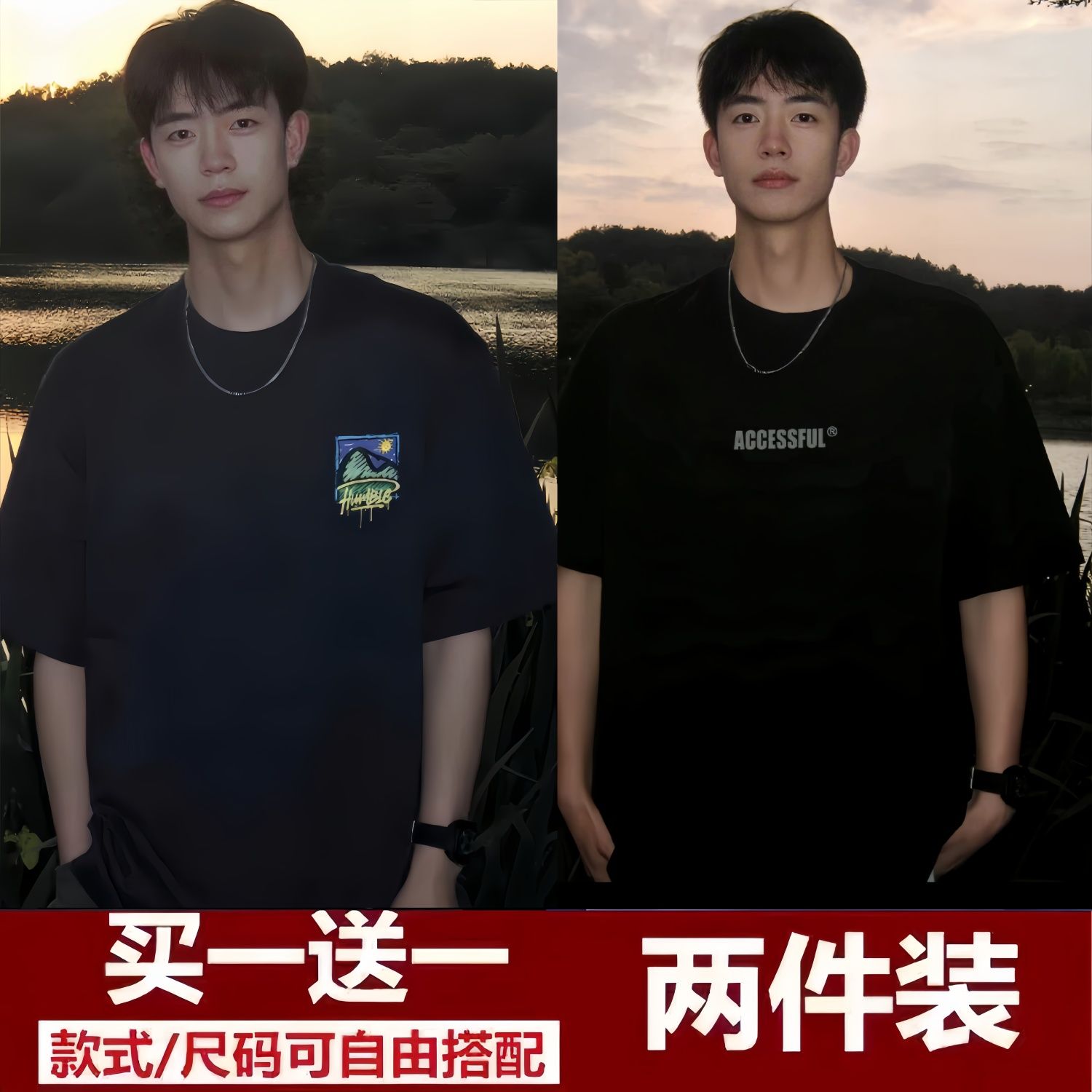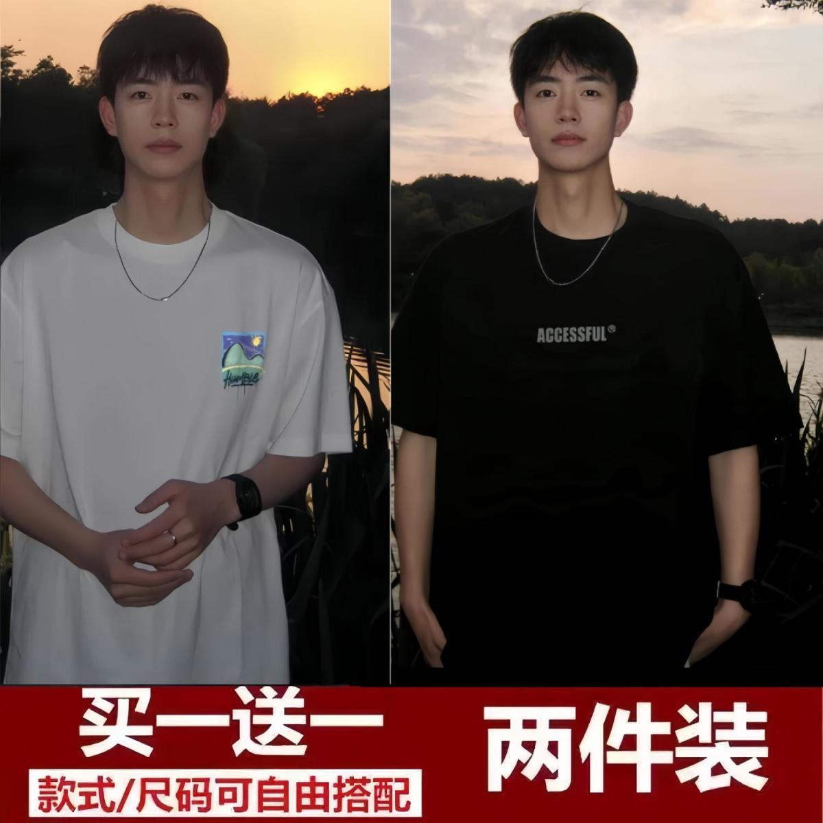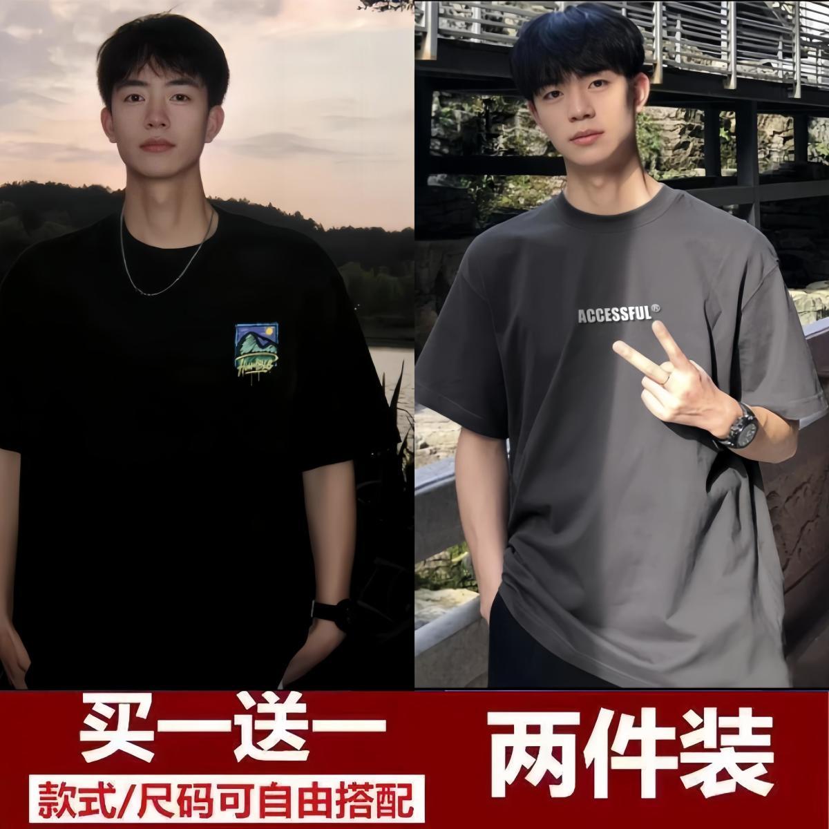 买一送一短袖t恤男2024夏季新款五分袖t恤男装百搭港风潮牌半袖