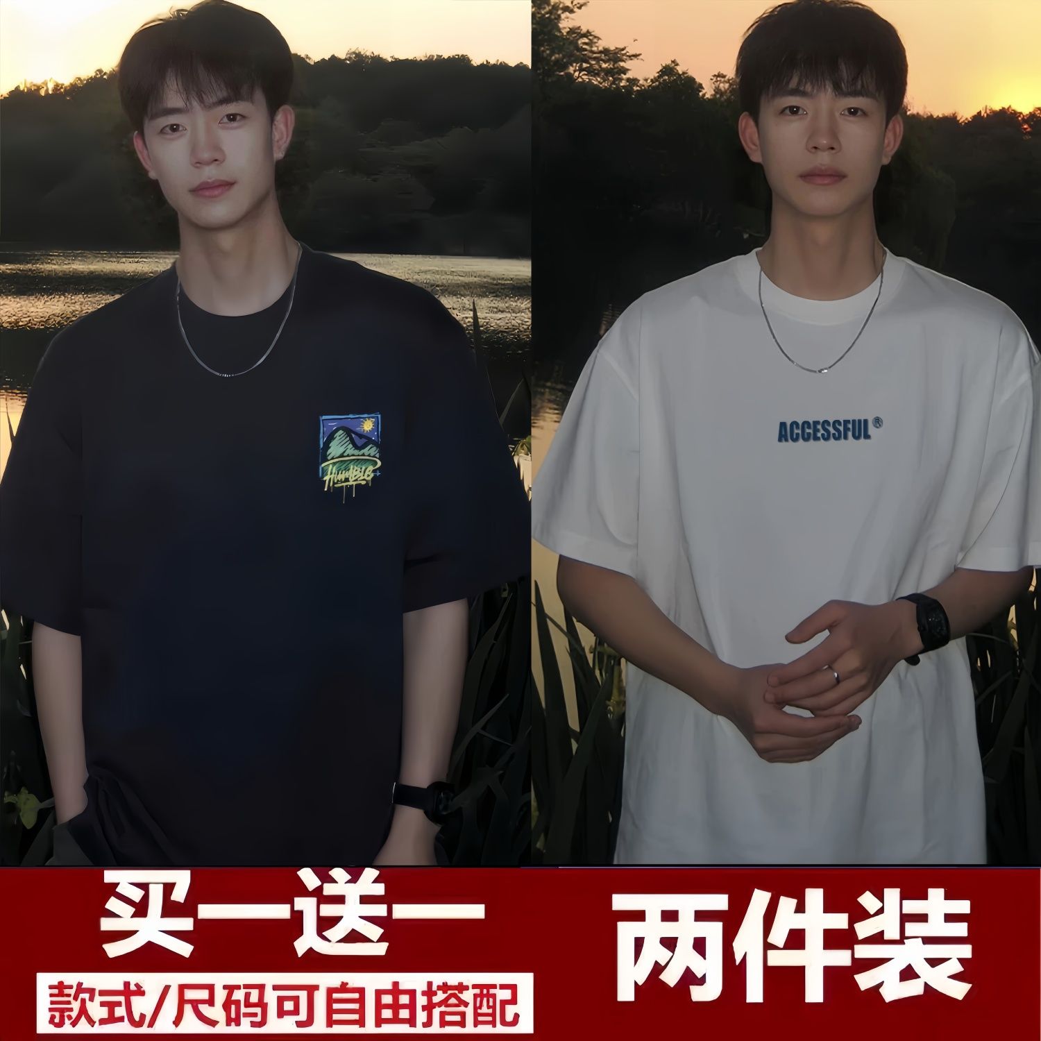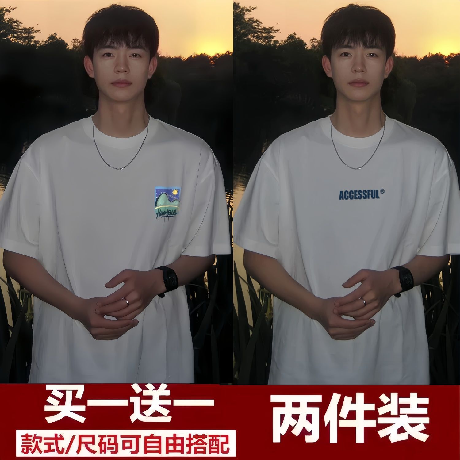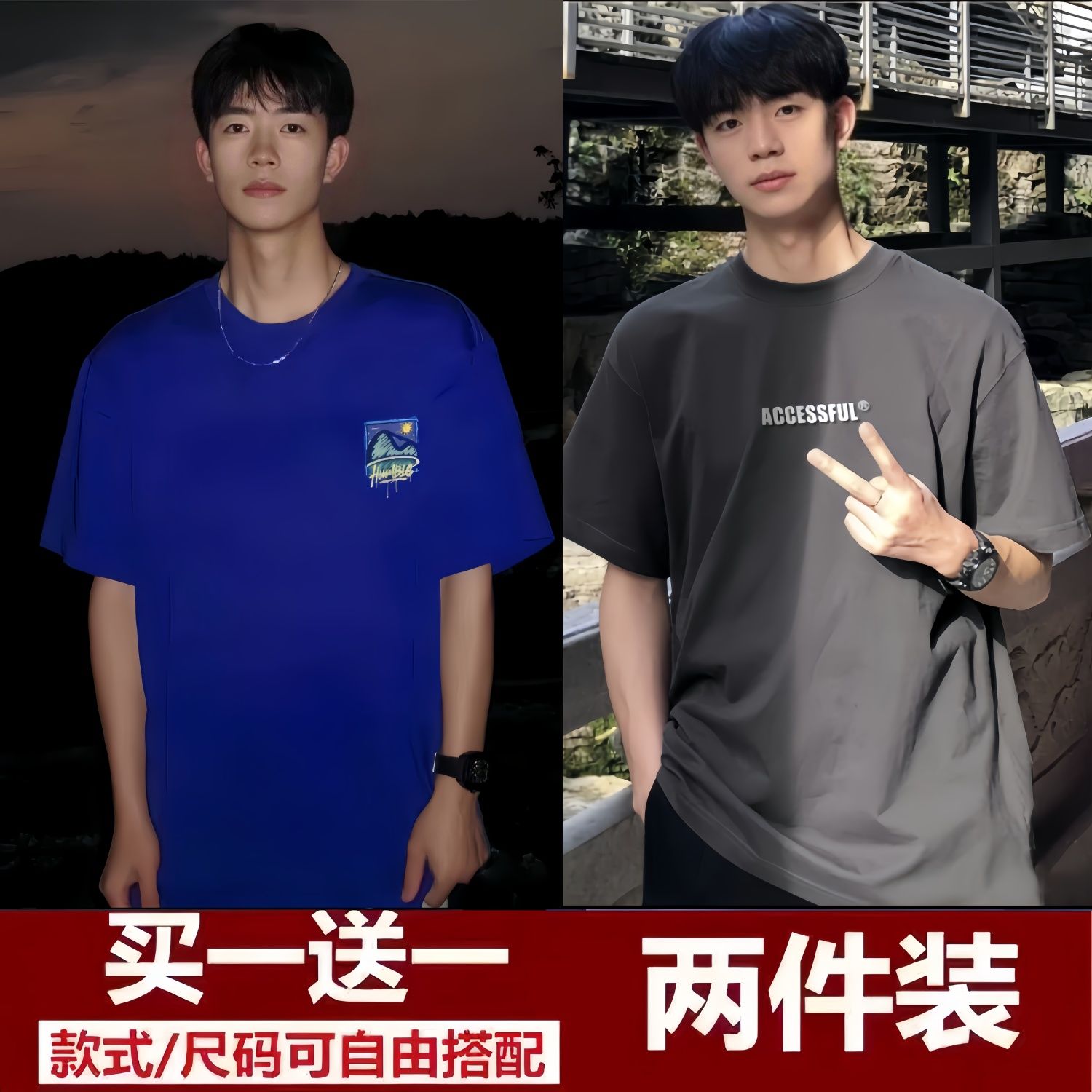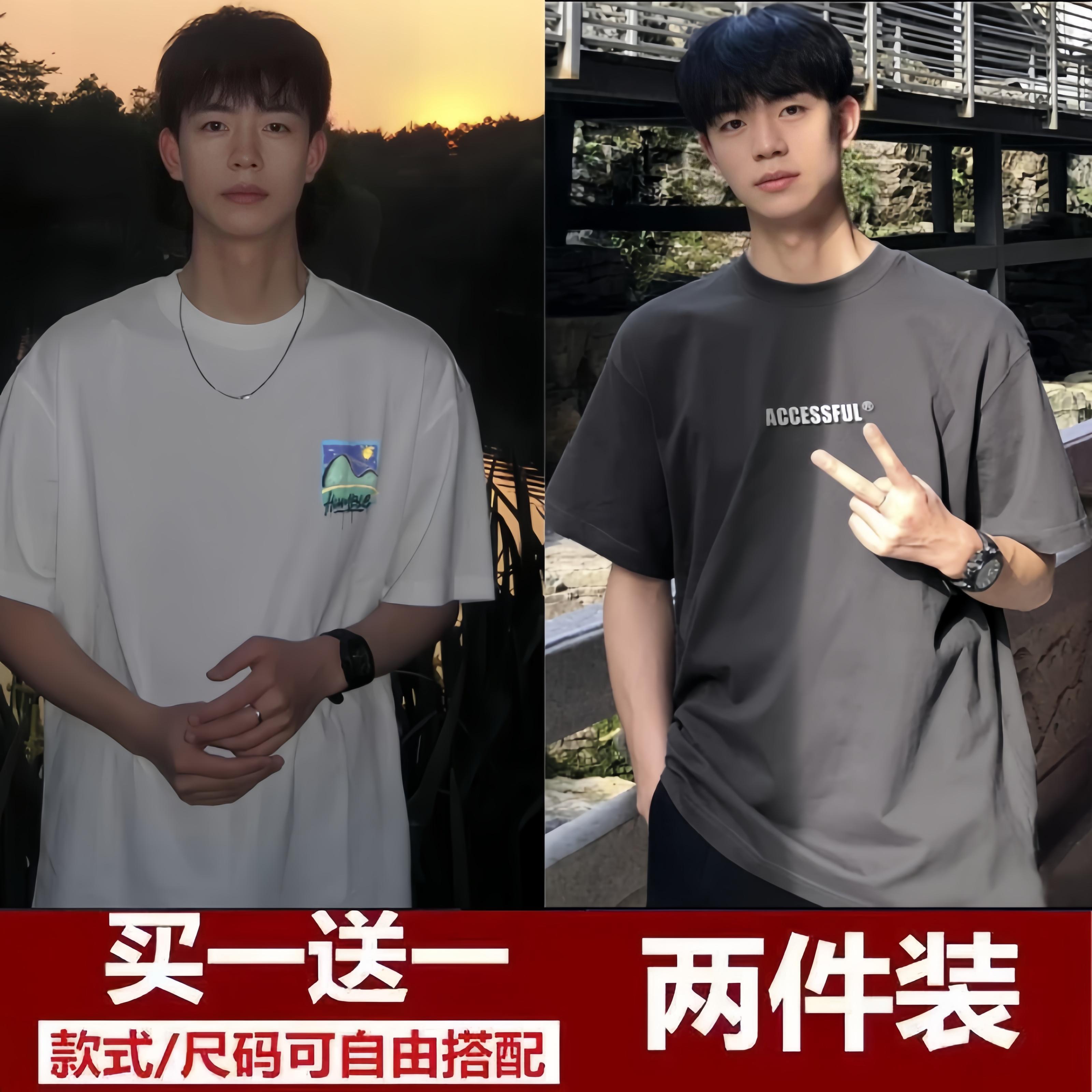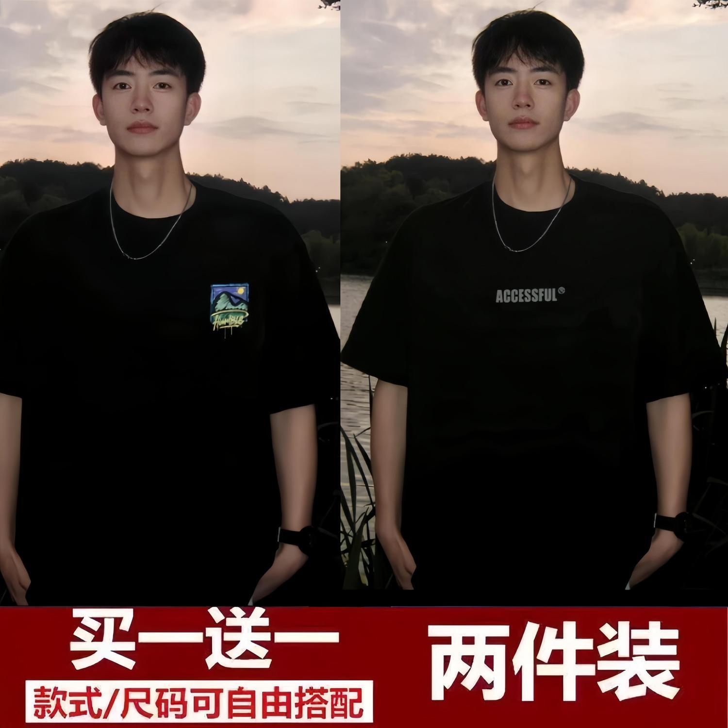 买一送一短袖t恤男2024夏季新款五分袖t恤男装百搭港风潮牌半袖