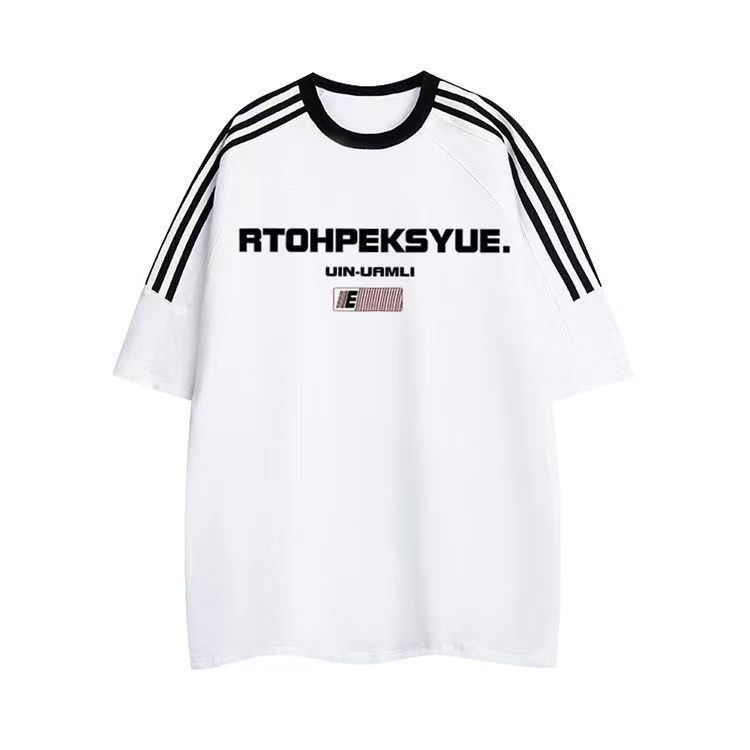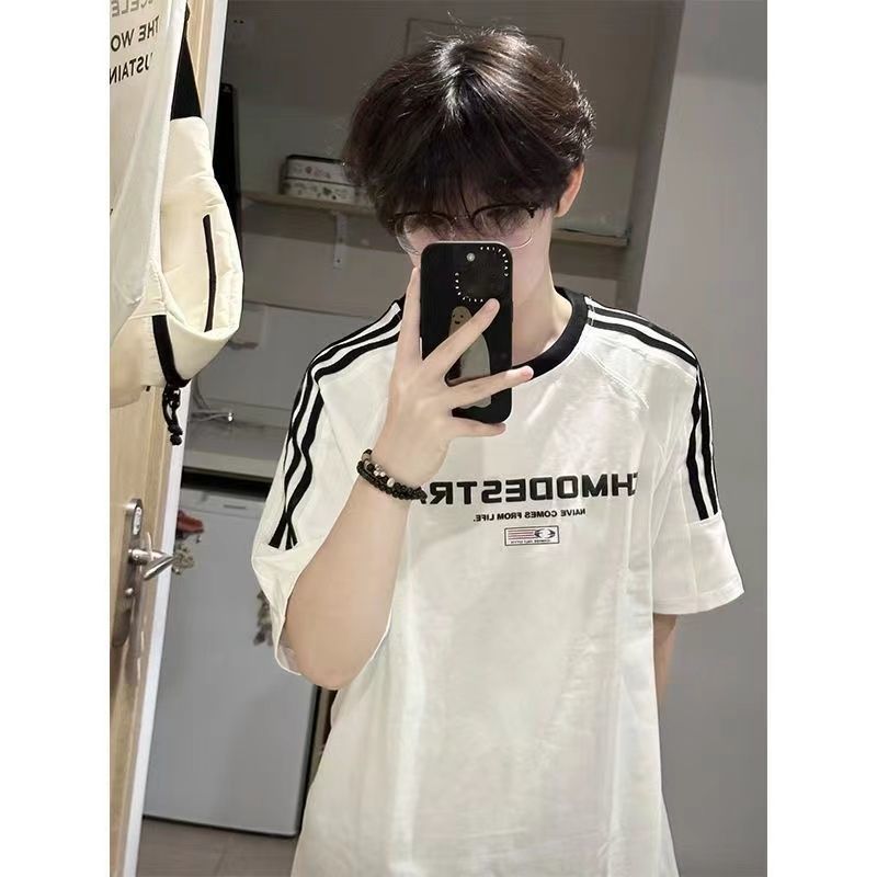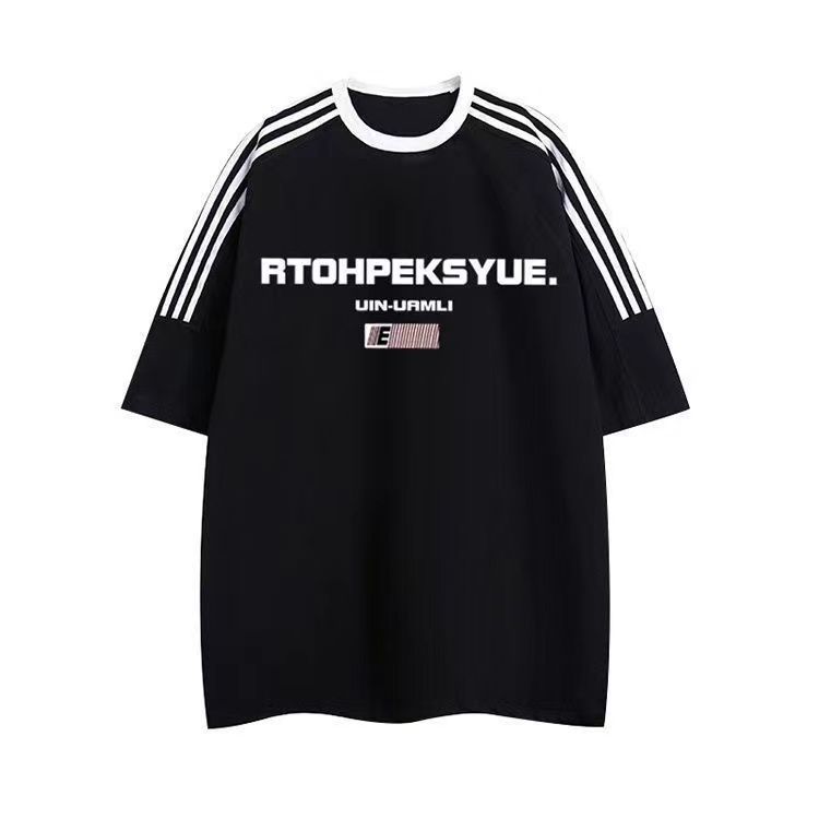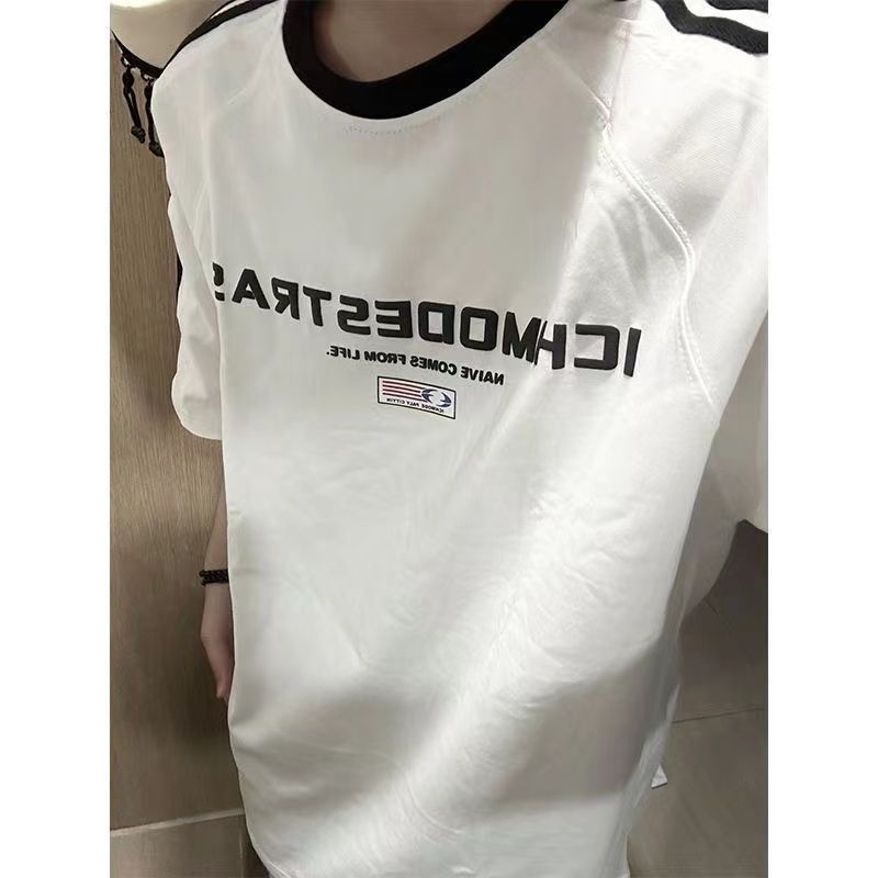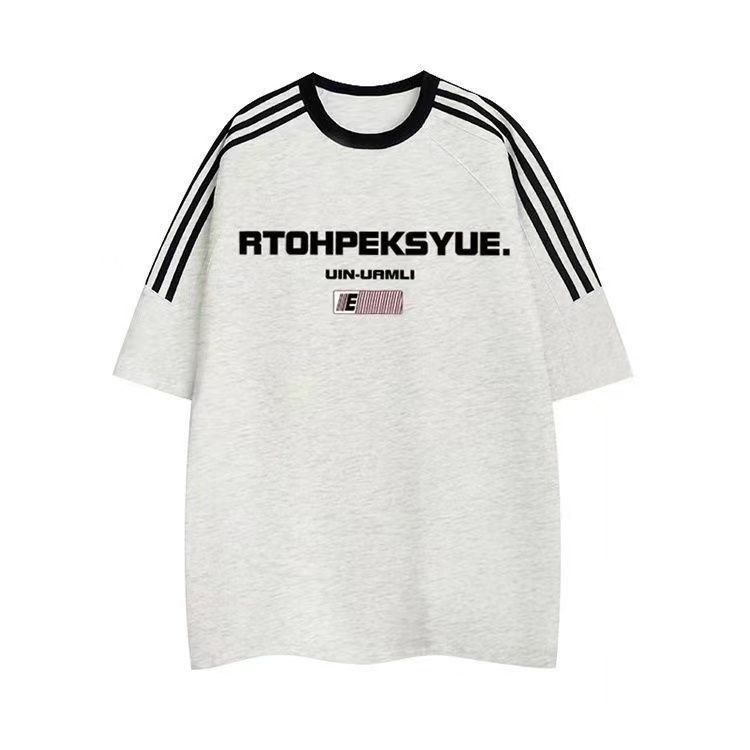 chic慵懒风潮流潮牌三条杠短袖T恤街头字母设计印花夏百搭美式