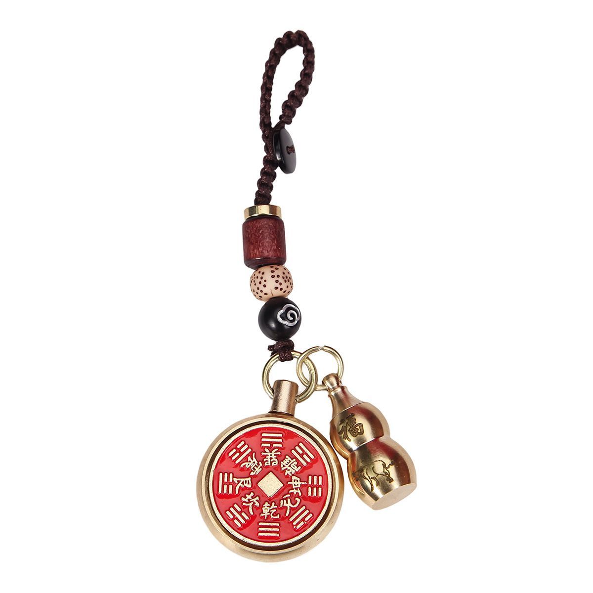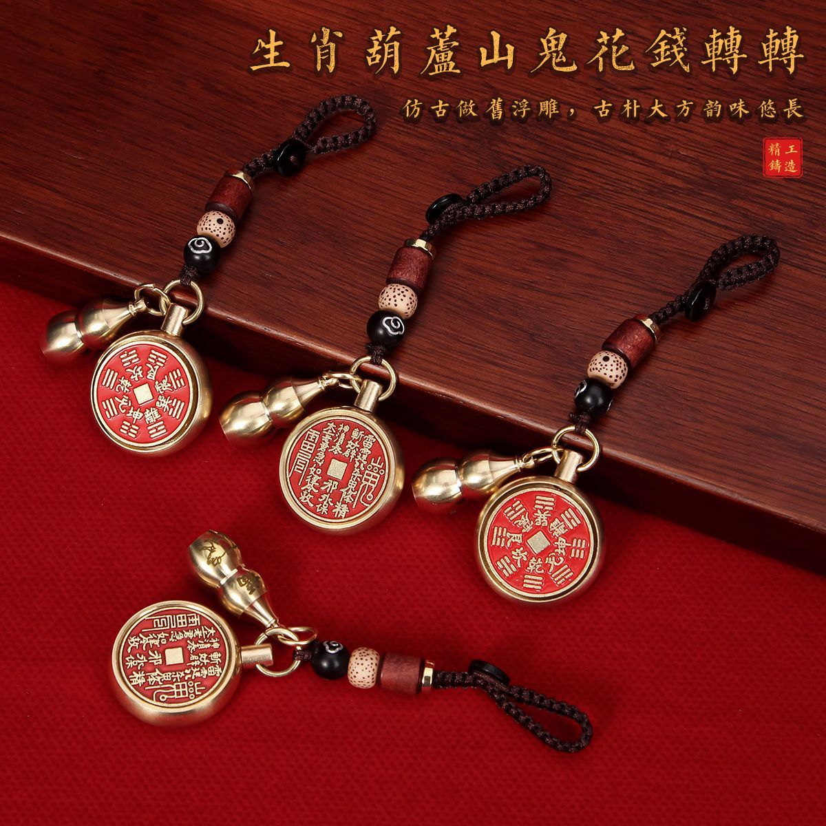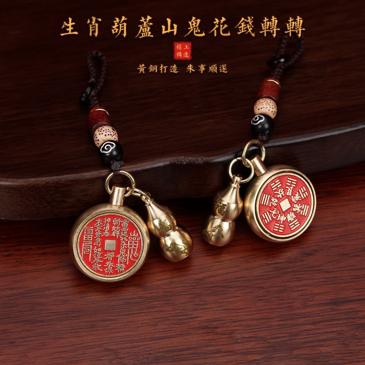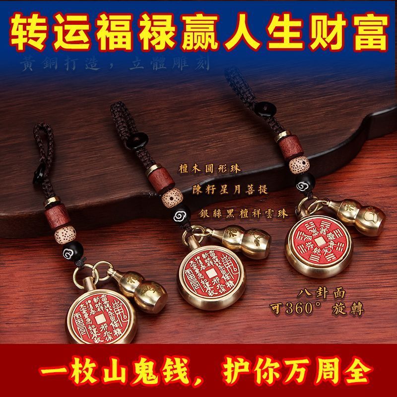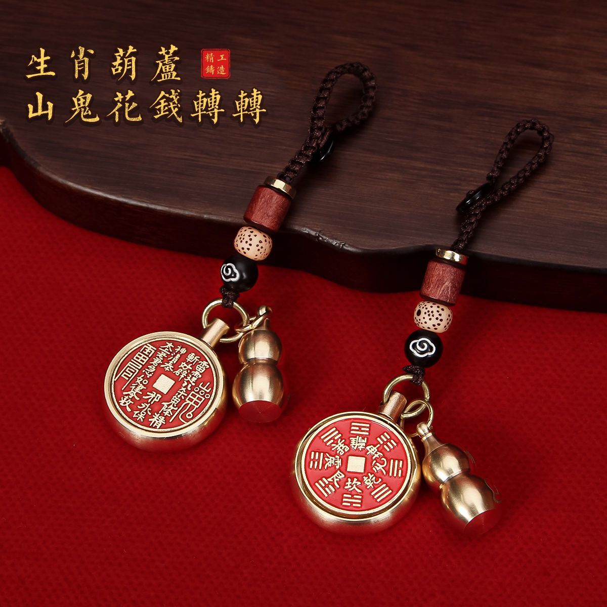 抖音同款纯黄铜十二生肖葫芦朱砂山鬼花钱转转钥匙扣挂件挂饰礼物