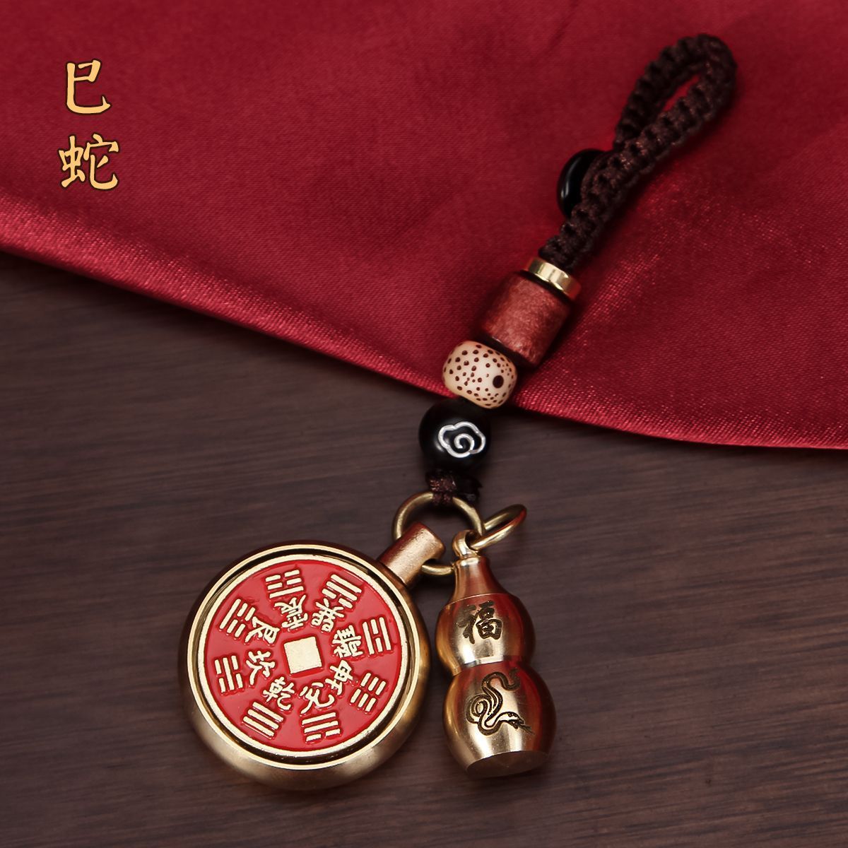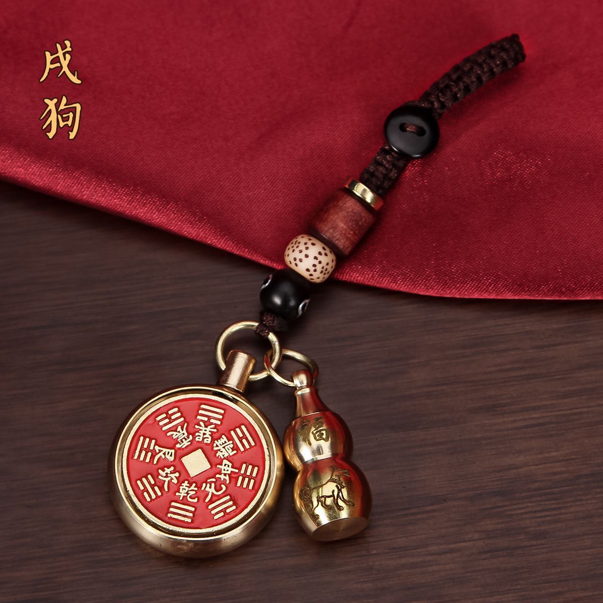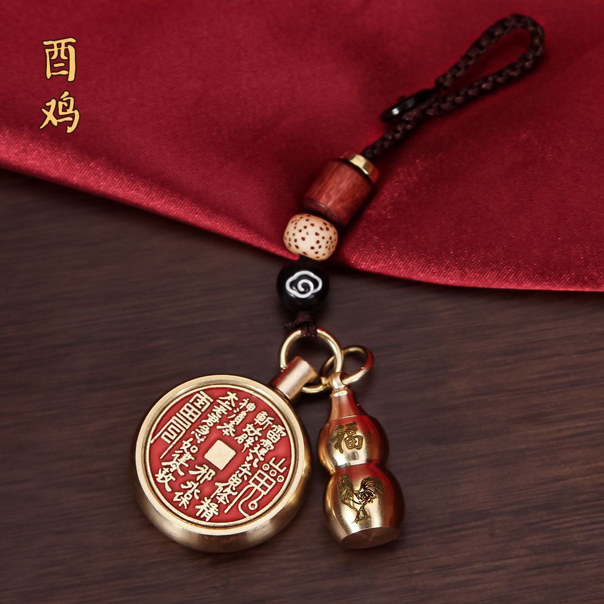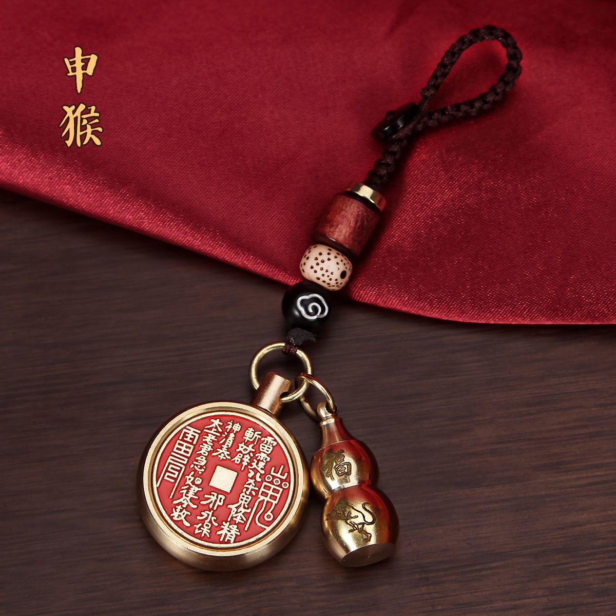抖音同款纯黄铜十二生肖葫芦朱砂山鬼花钱转转钥匙扣挂件挂饰礼物