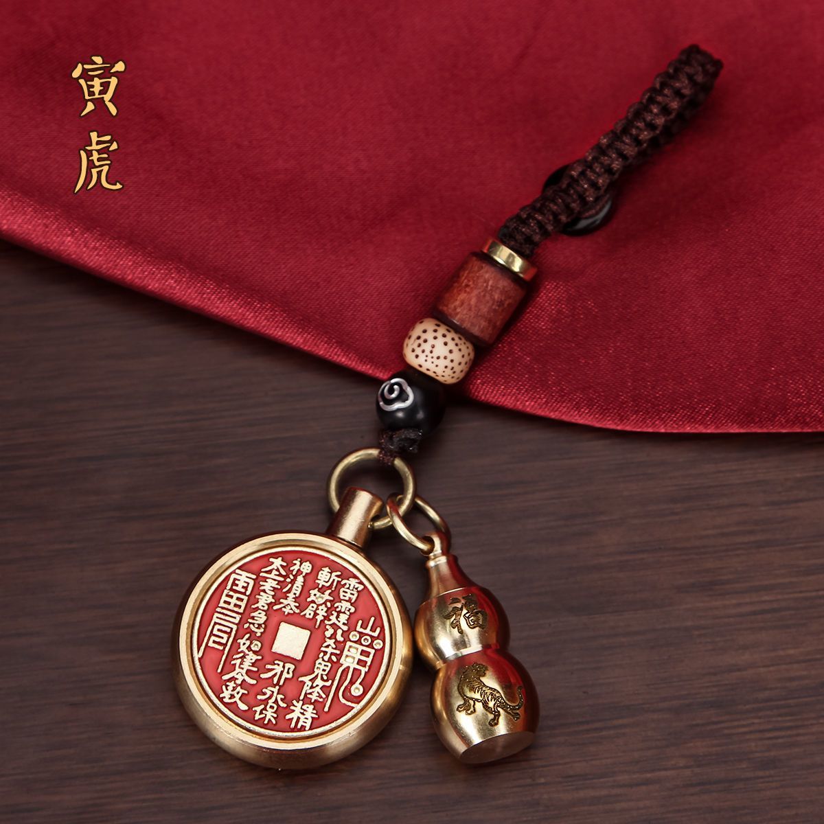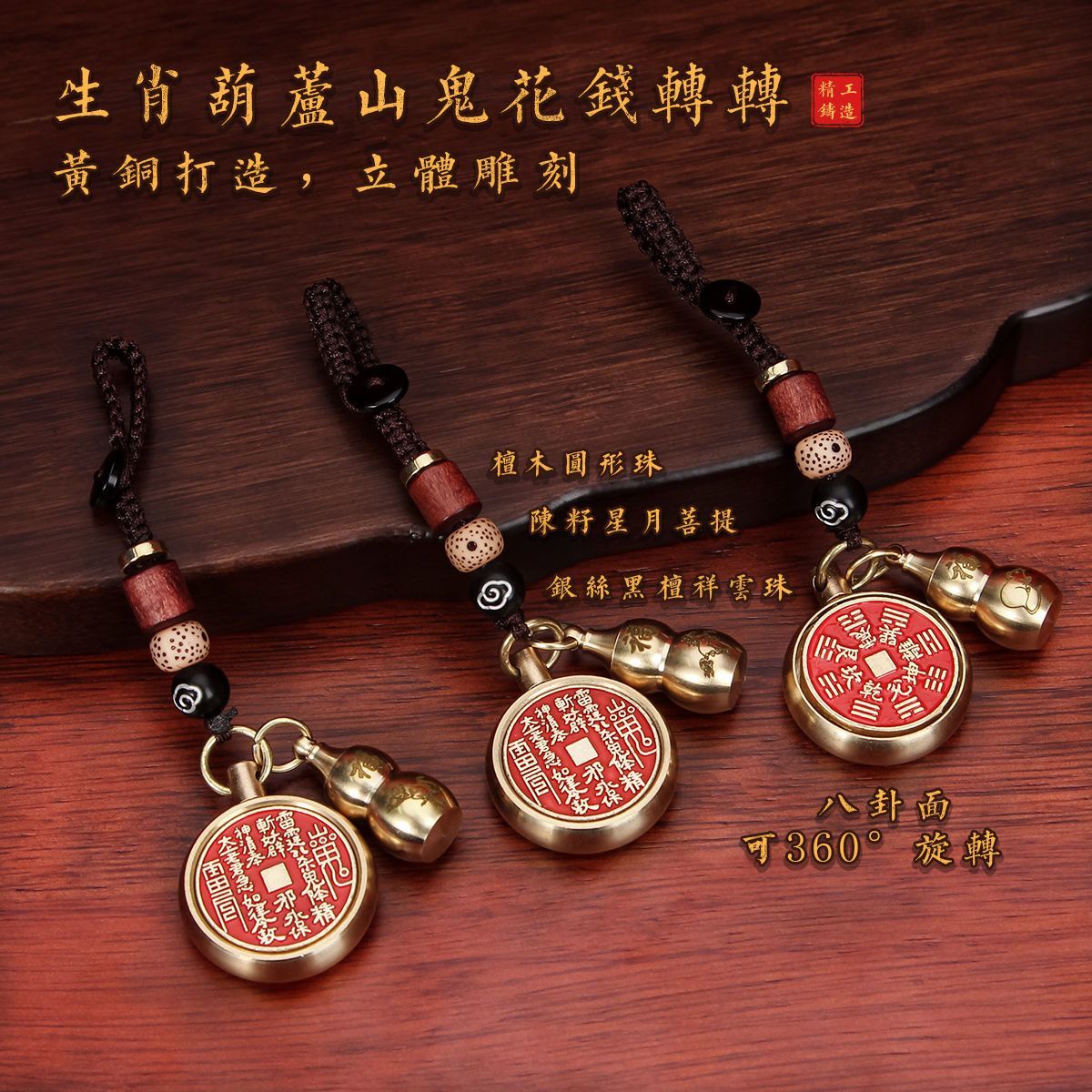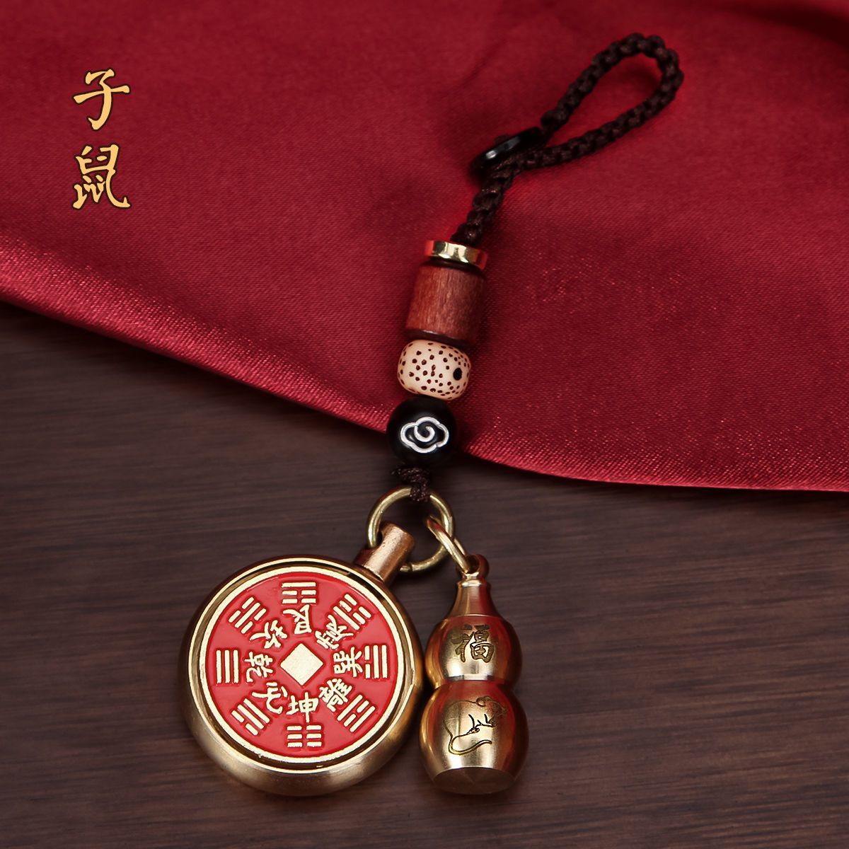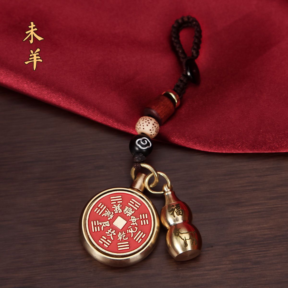 抖音同款纯黄铜十二生肖葫芦朱砂山鬼花钱转转钥匙扣挂件挂饰礼物