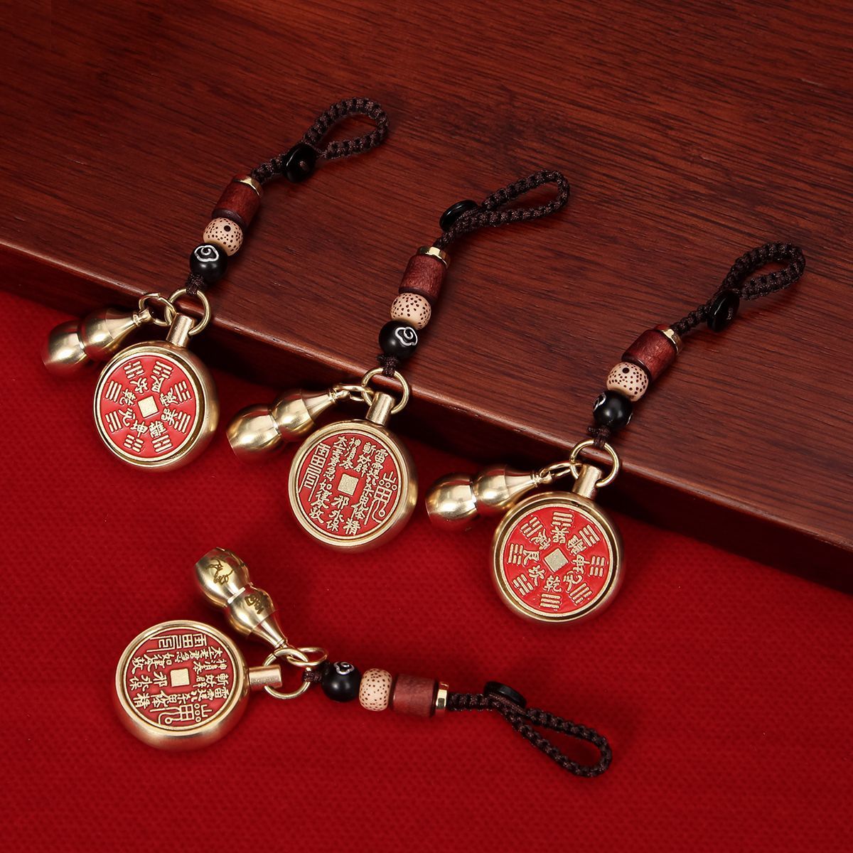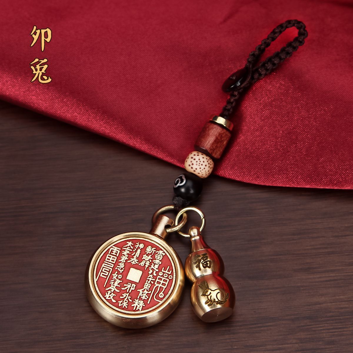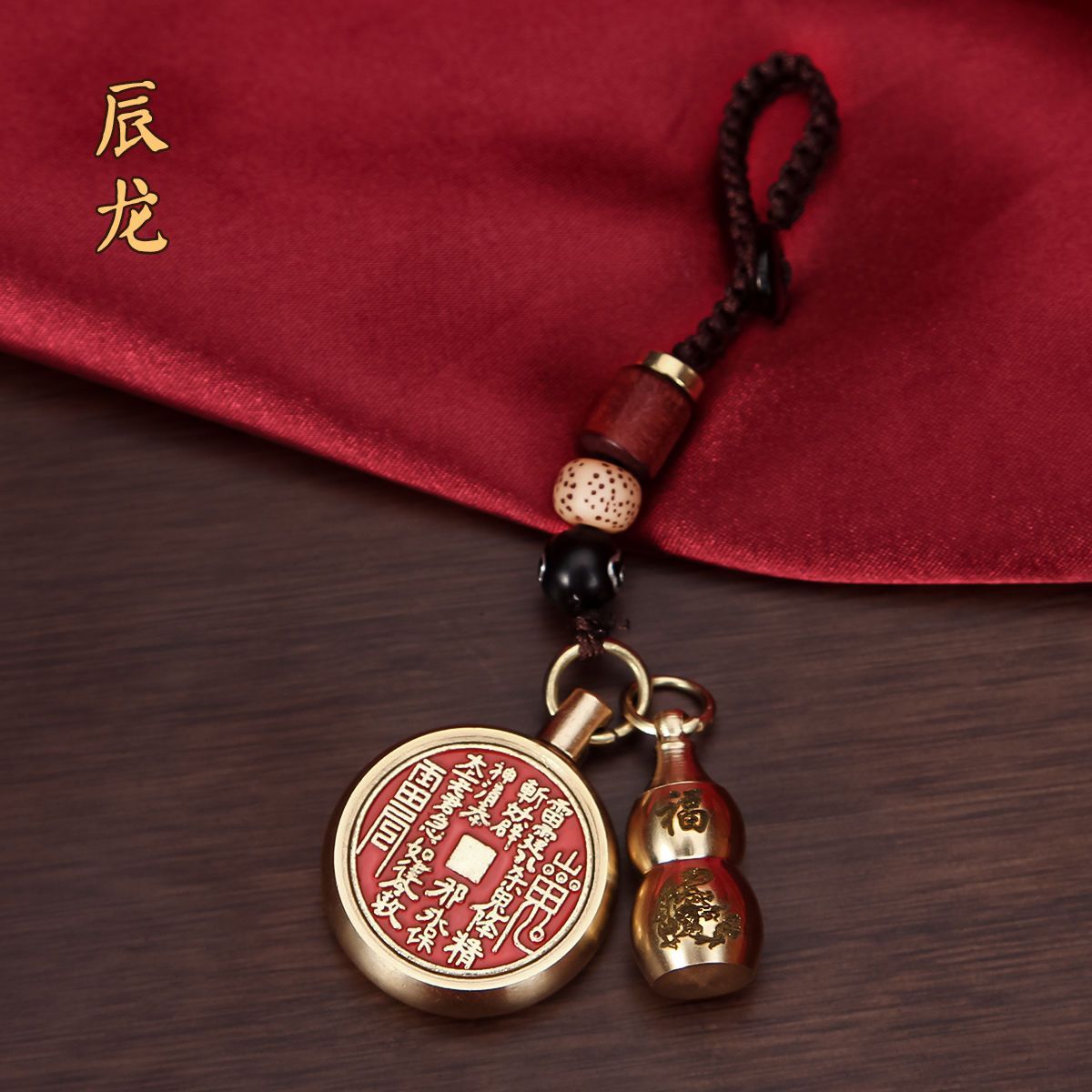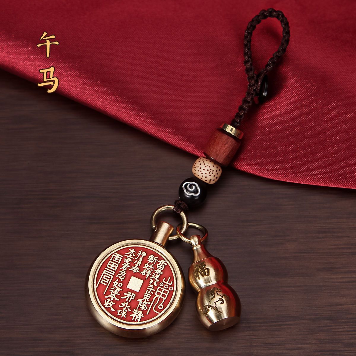 抖音同款纯黄铜十二生肖葫芦朱砂山鬼花钱转转钥匙扣挂件挂饰礼物