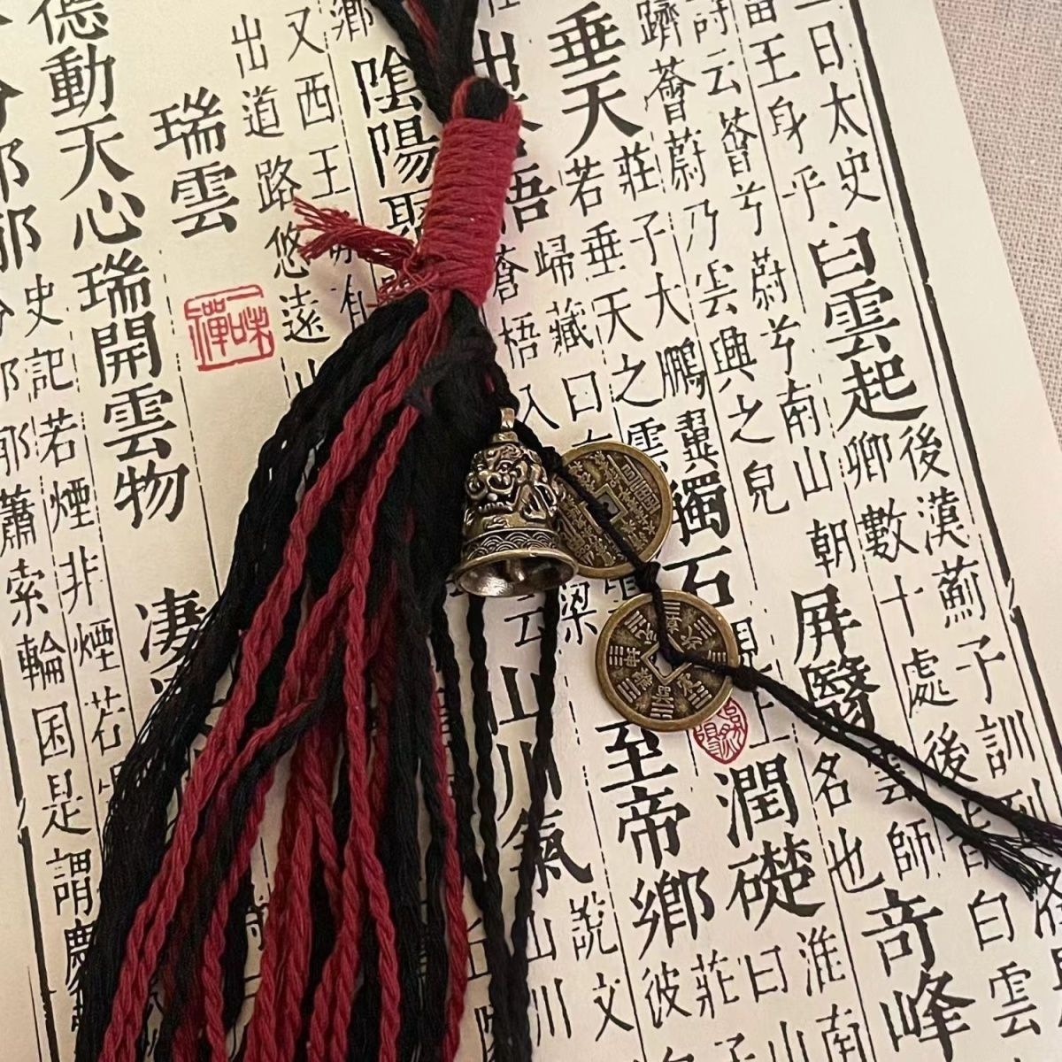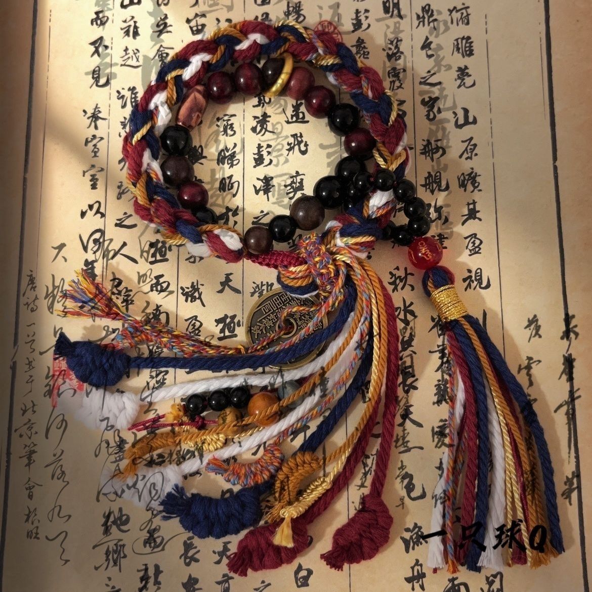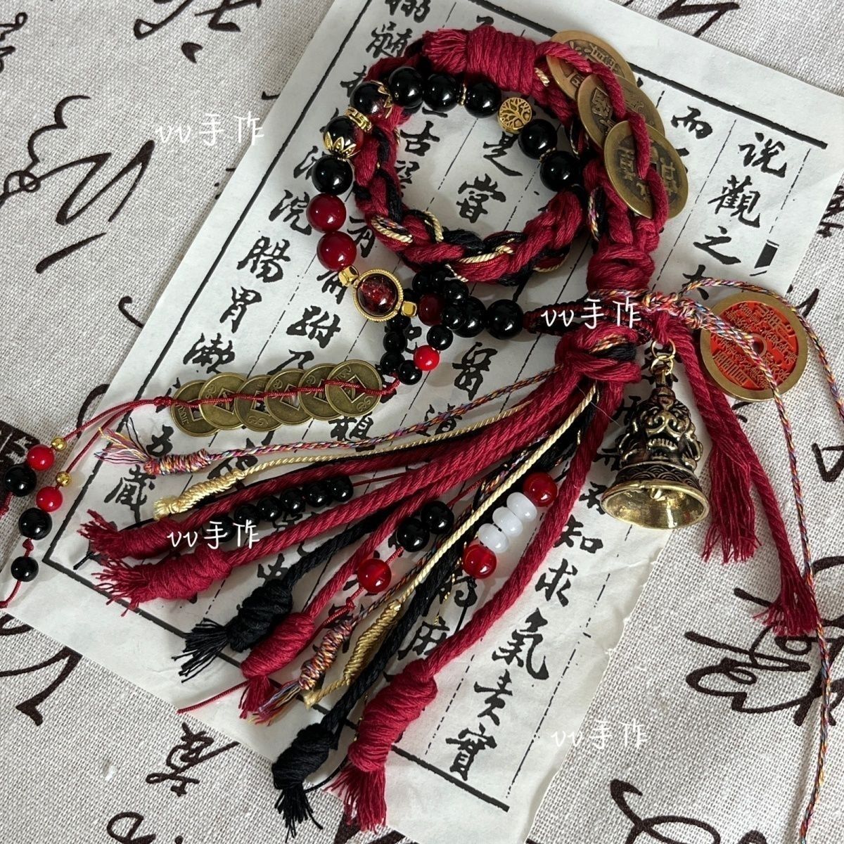 抖音爆款火旺花钱藏式手绳双圈中式手工山鬼钱币铃铛手链铜钱同款