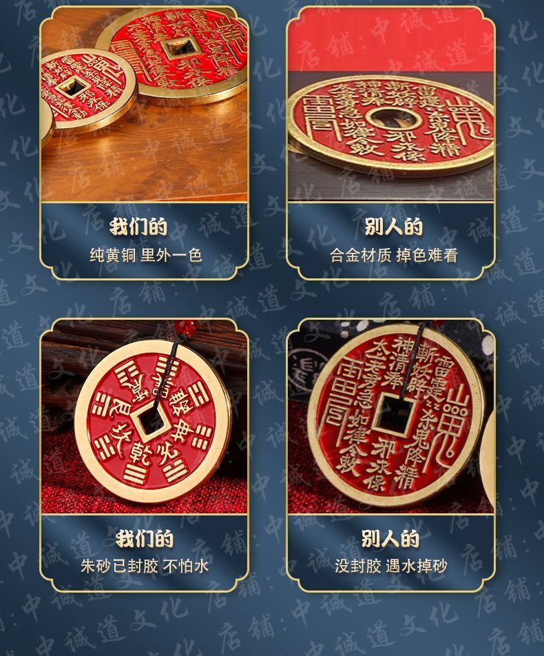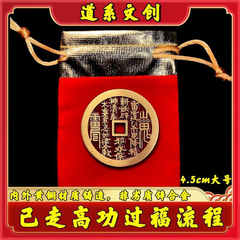 【指导使用】茅山师傅纯黄铜山鬼钱币真品朱砂手工填涂描绘