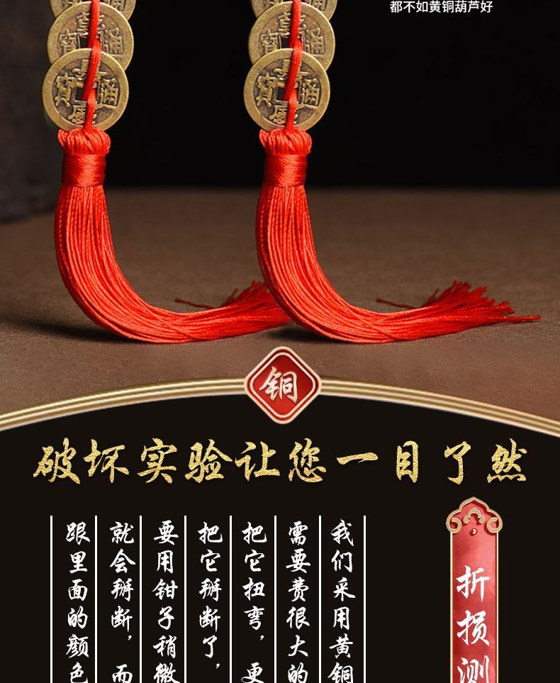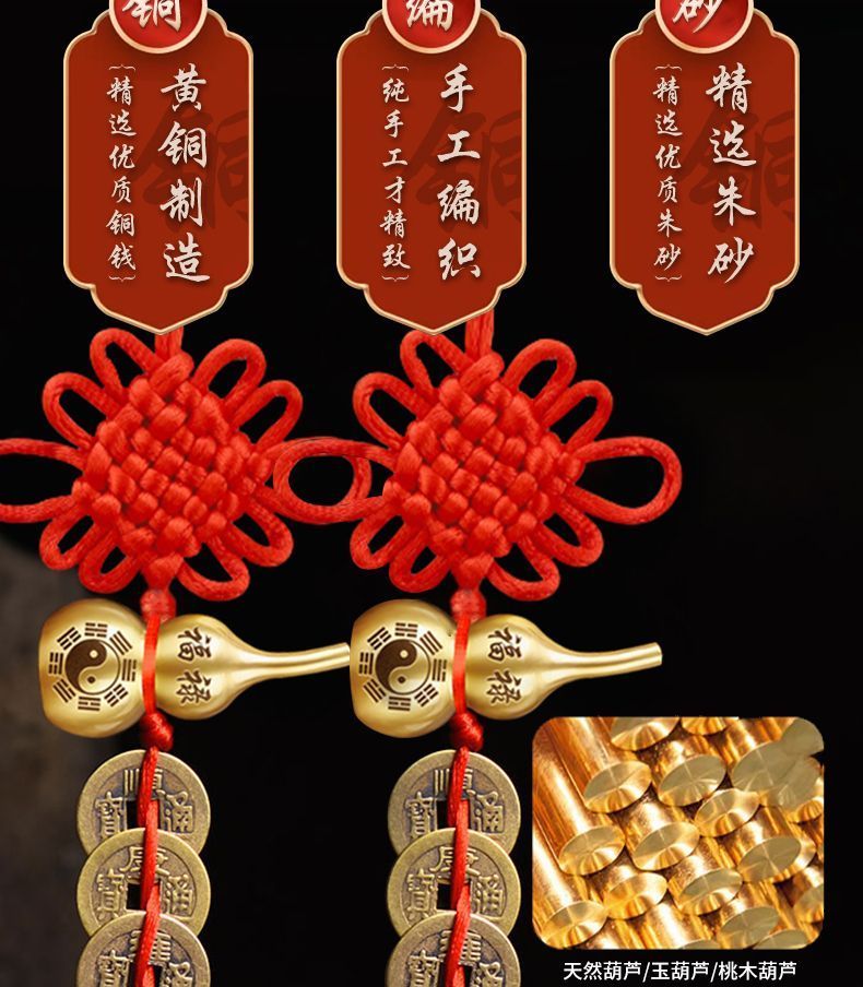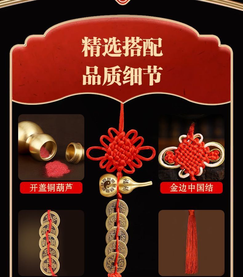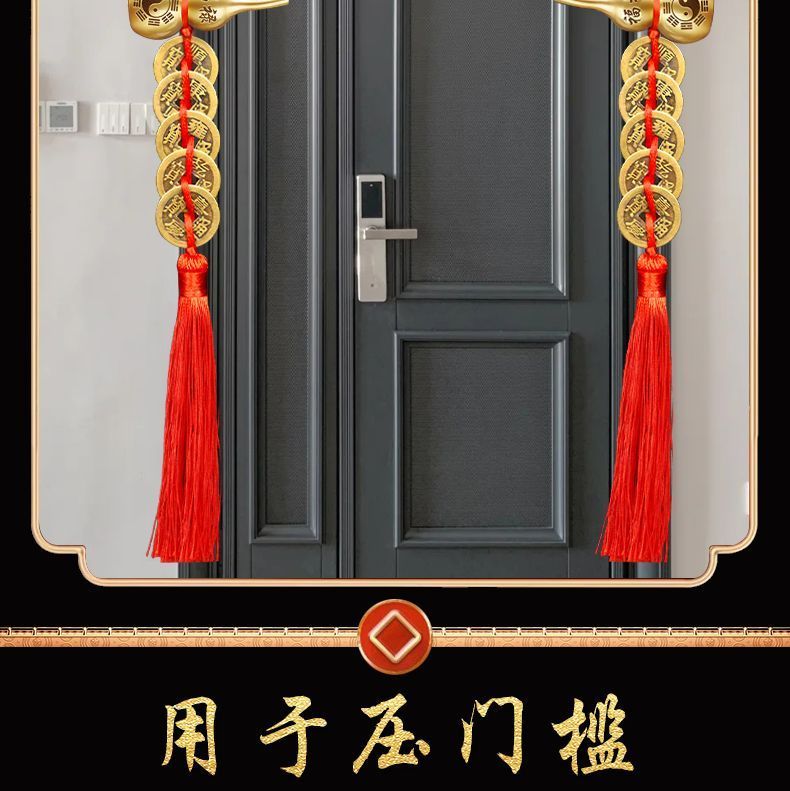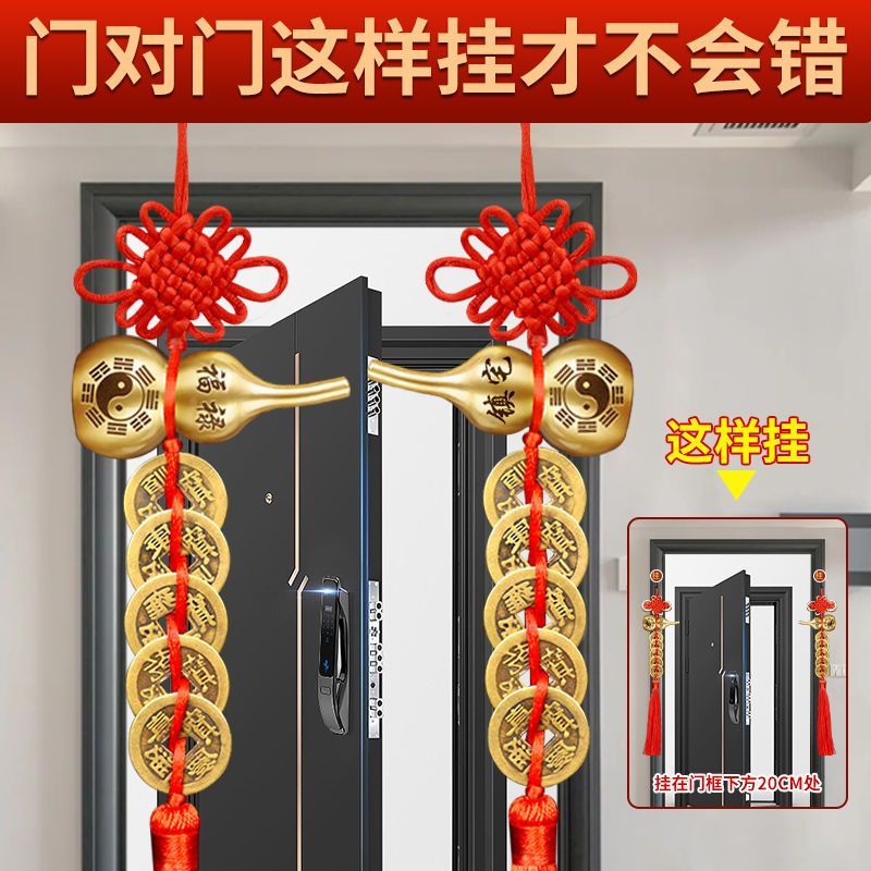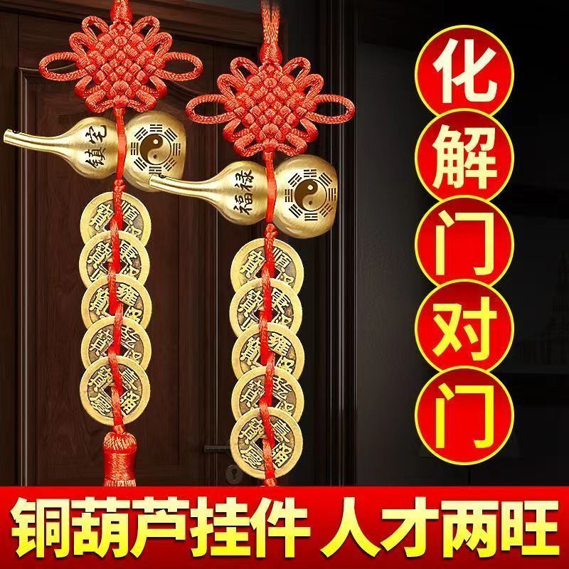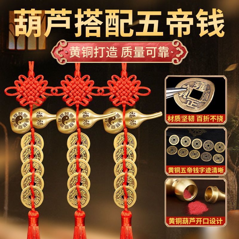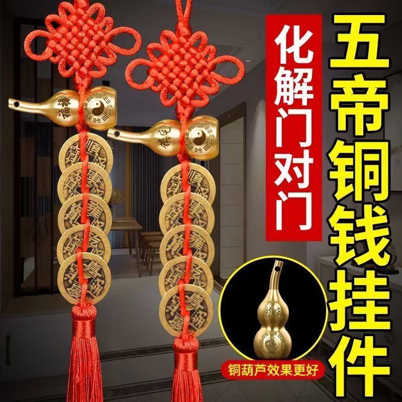 五帝钱门对门真品纯铜葫芦招钱摆件门对门挂件人财两旺吉祥结挂件