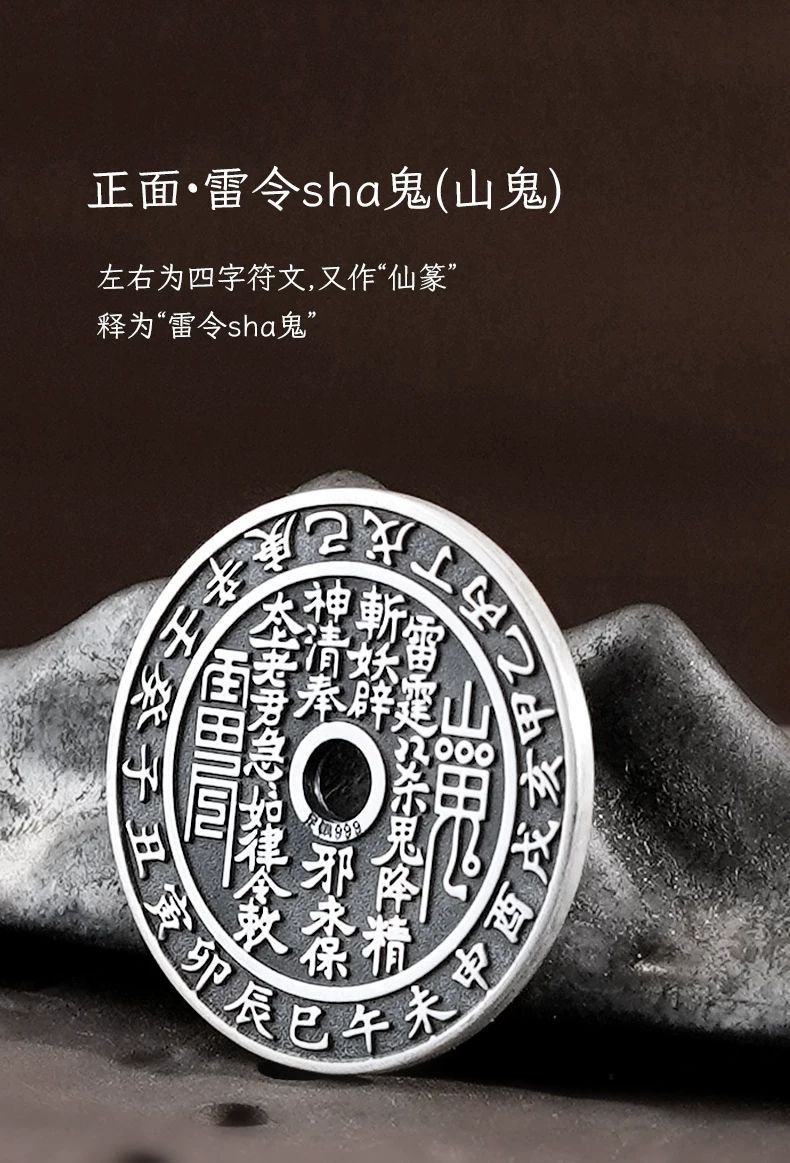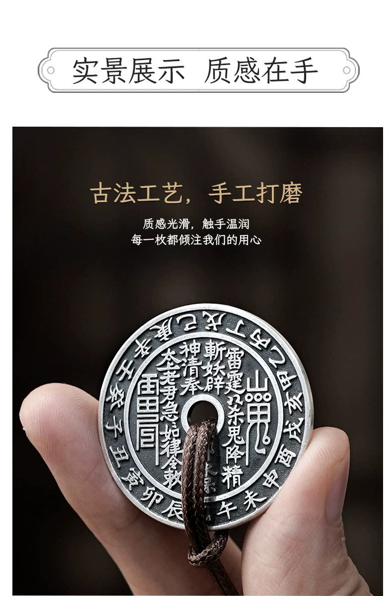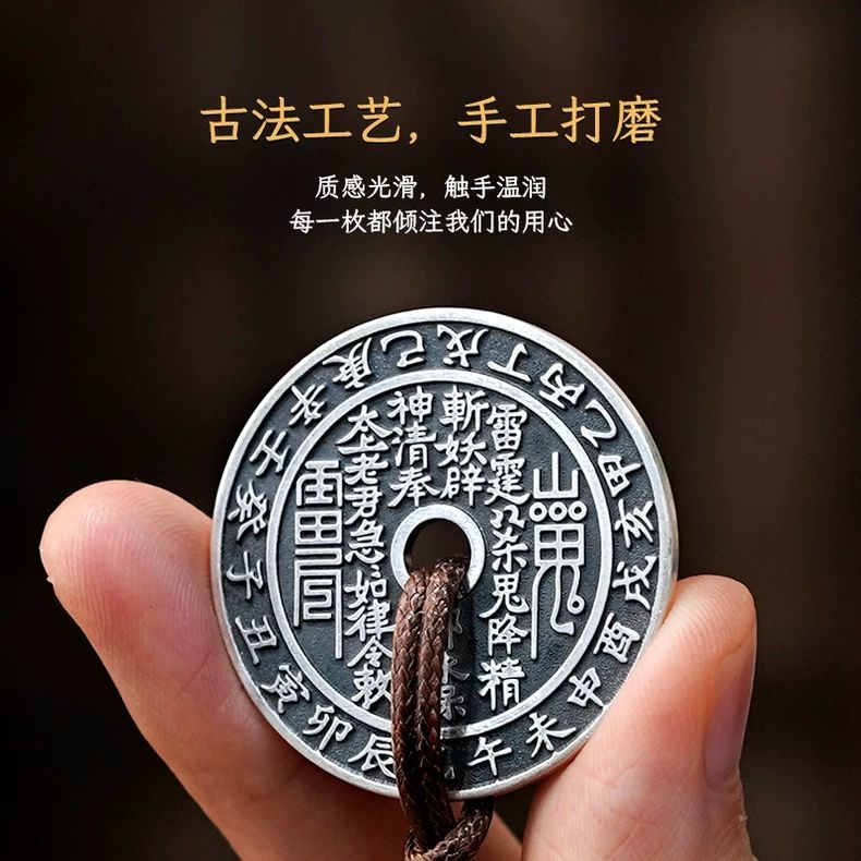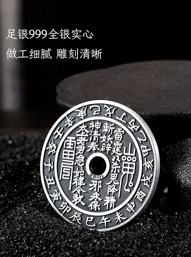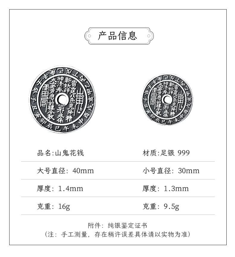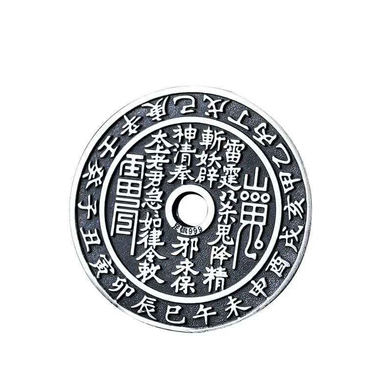 足银999 山鬼花钱纯银古铜钱银币吊坠复古平安扣项链坠挂件