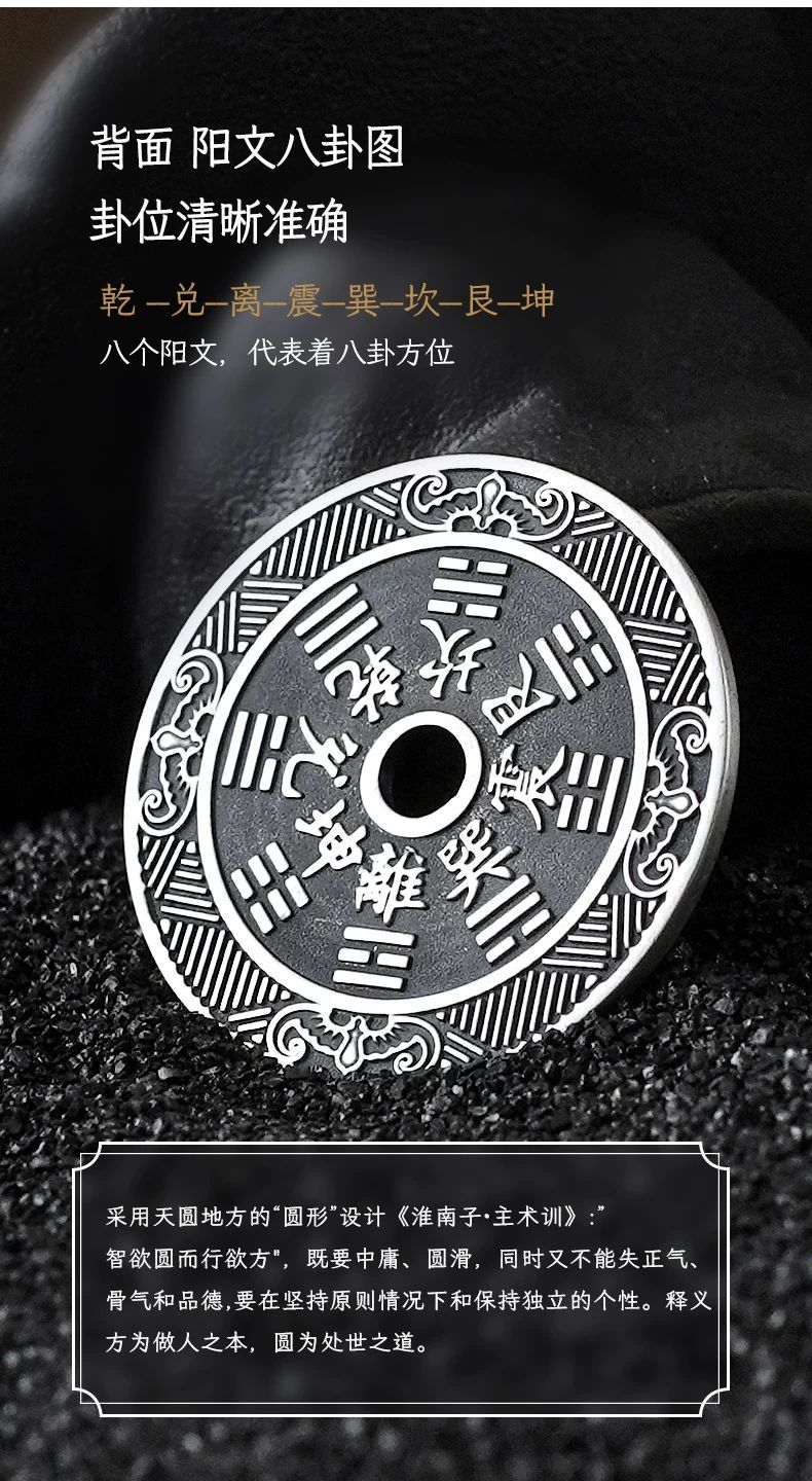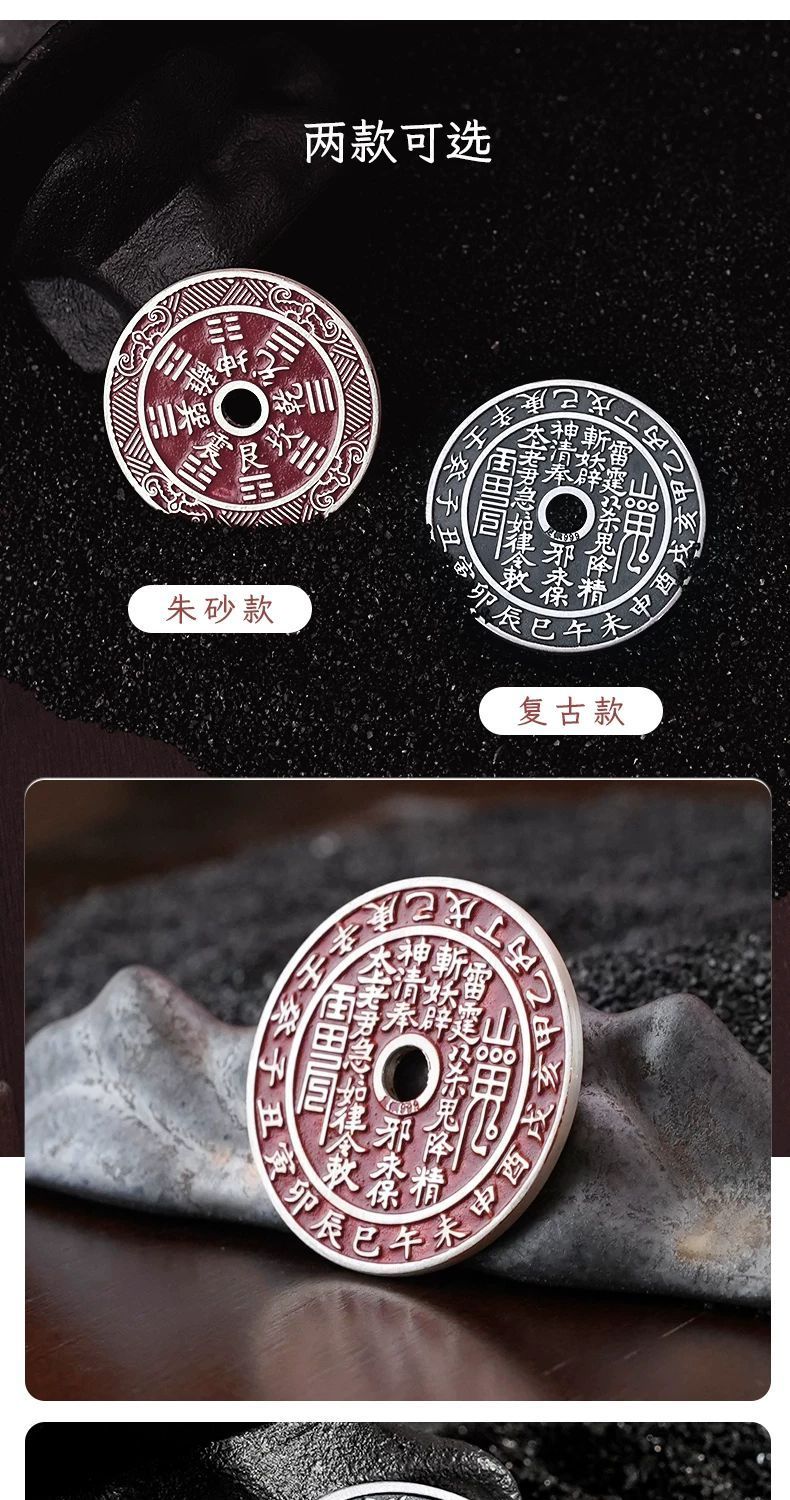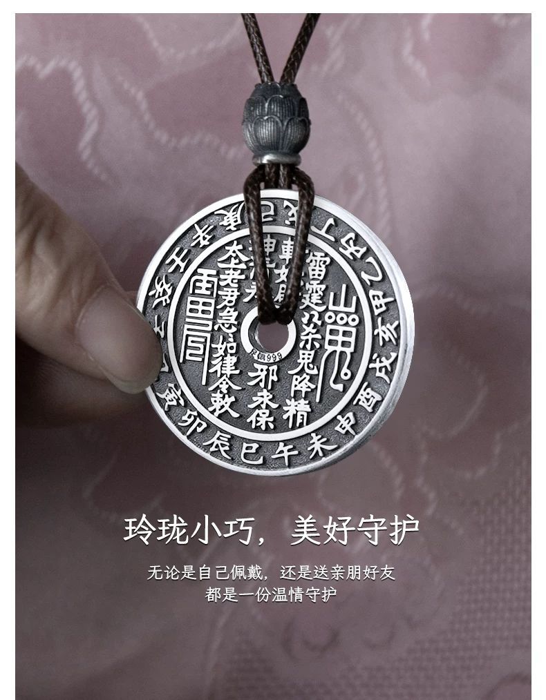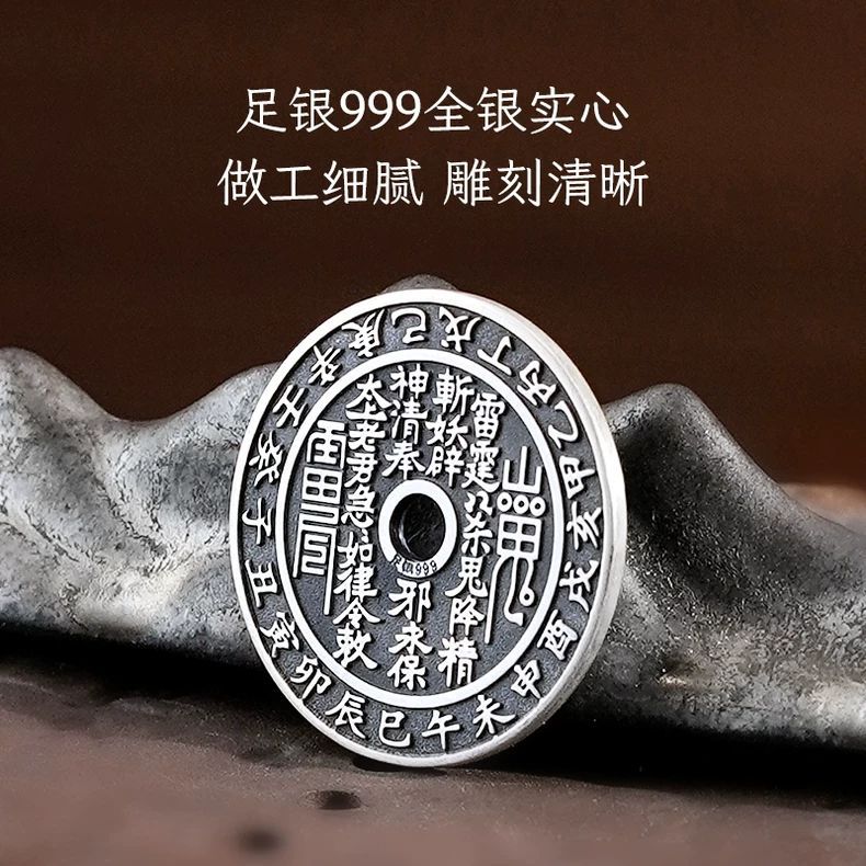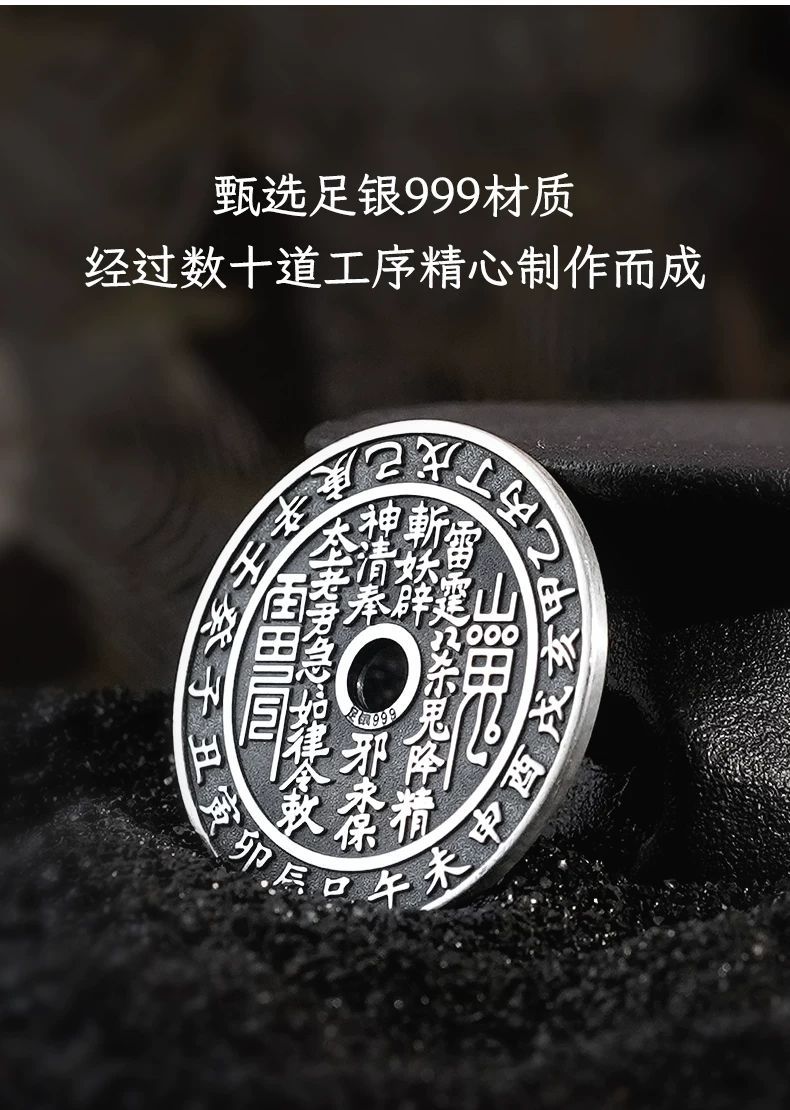 足银999 山鬼花钱纯银古铜钱银币吊坠复古平安扣项链坠挂件