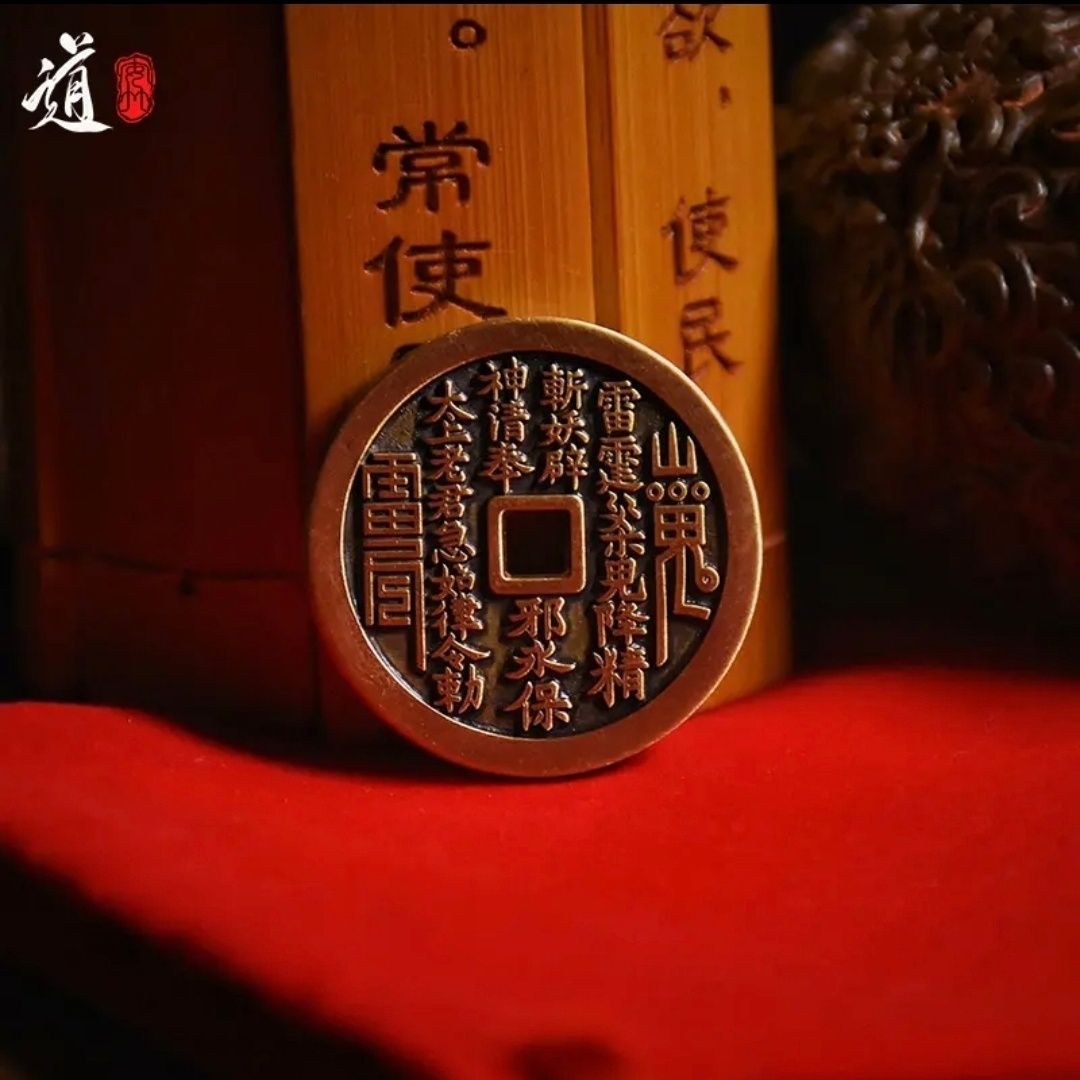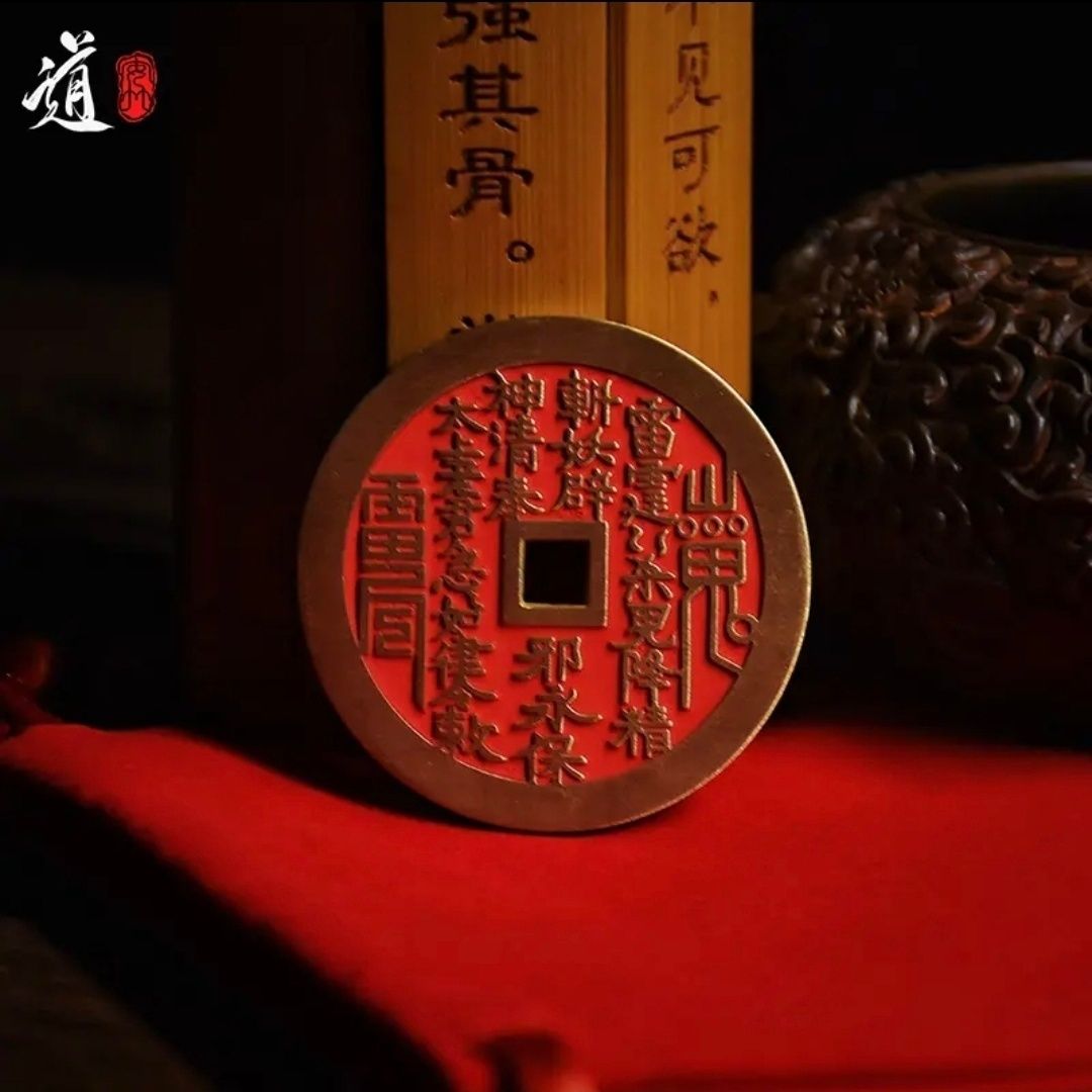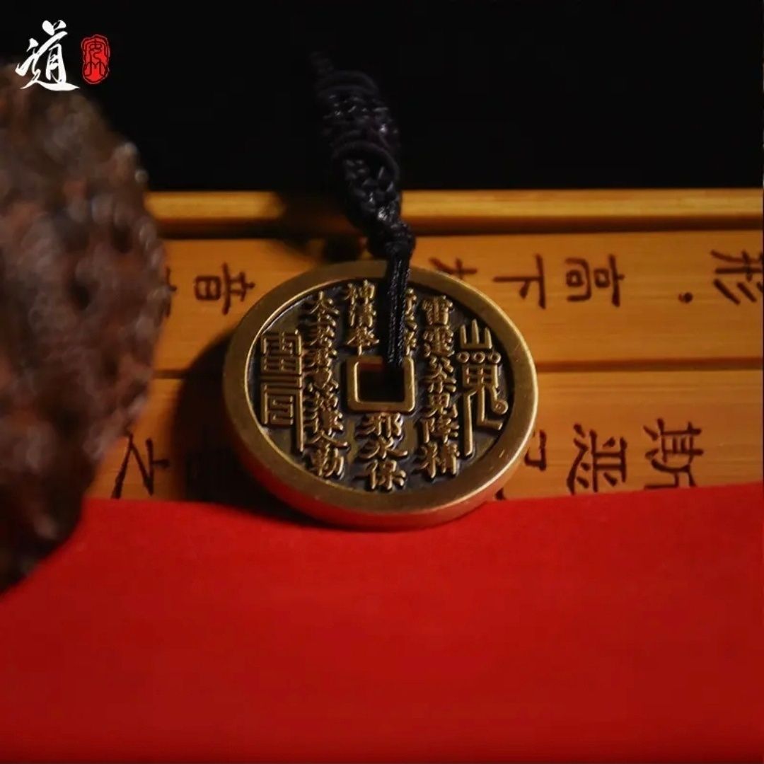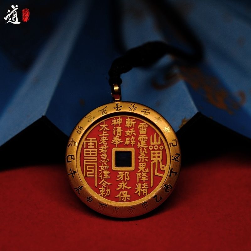 【龙虎山直发货】山鬼铜钱花钱钥匙扣项链吊坠男女随身挂饰黄铜