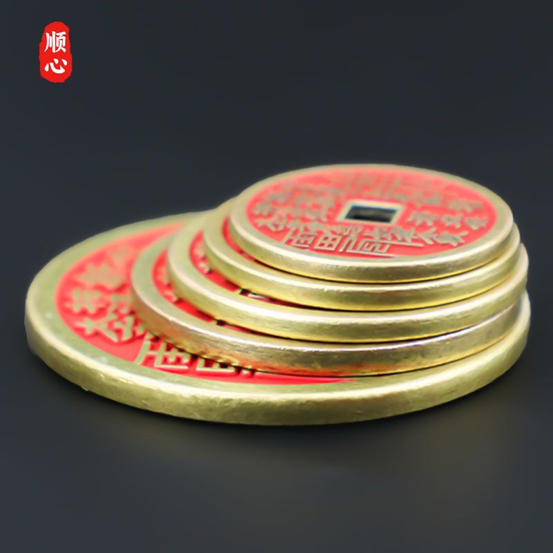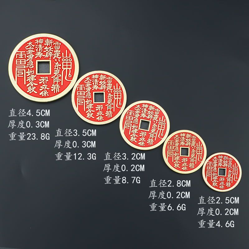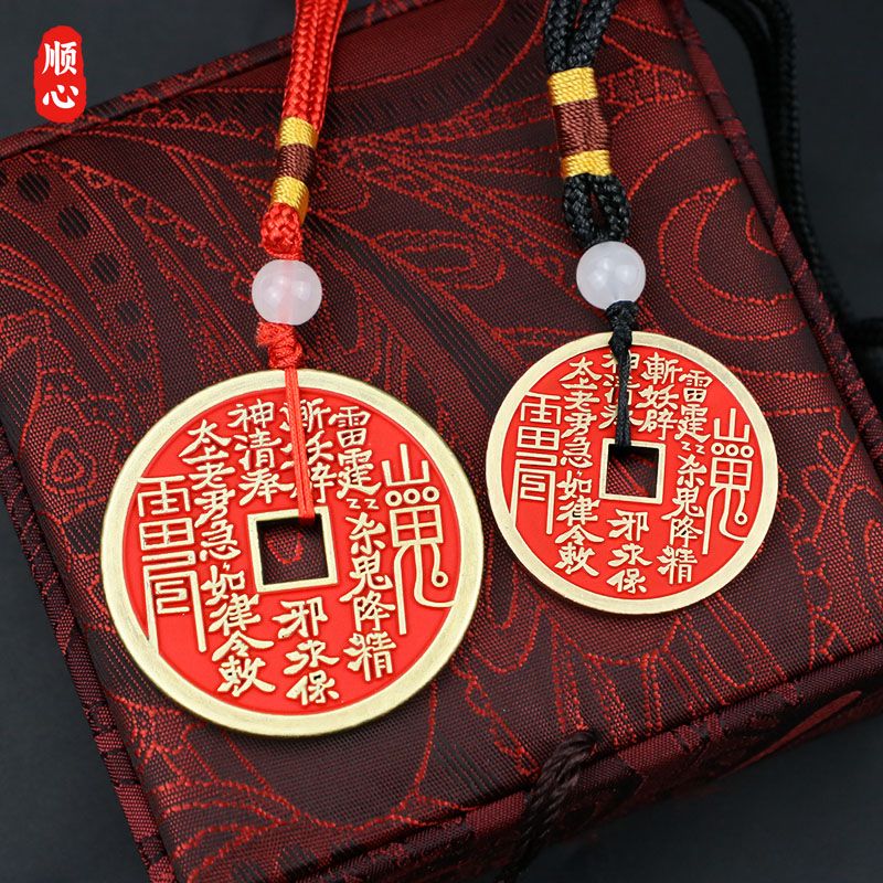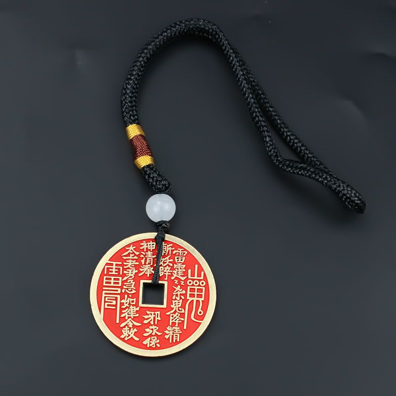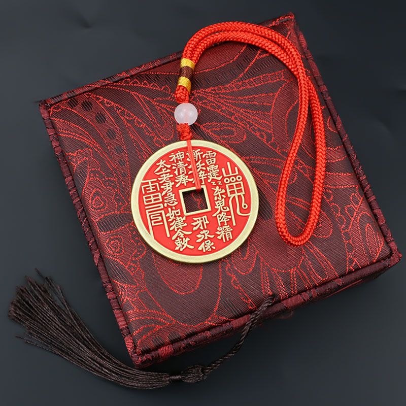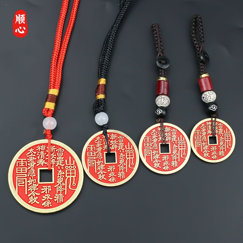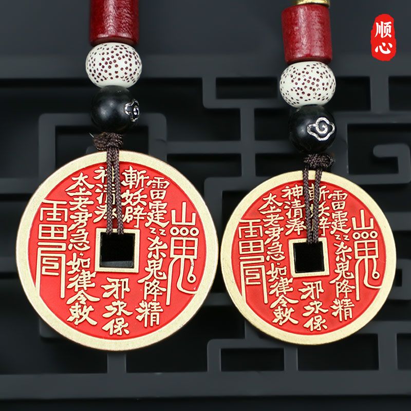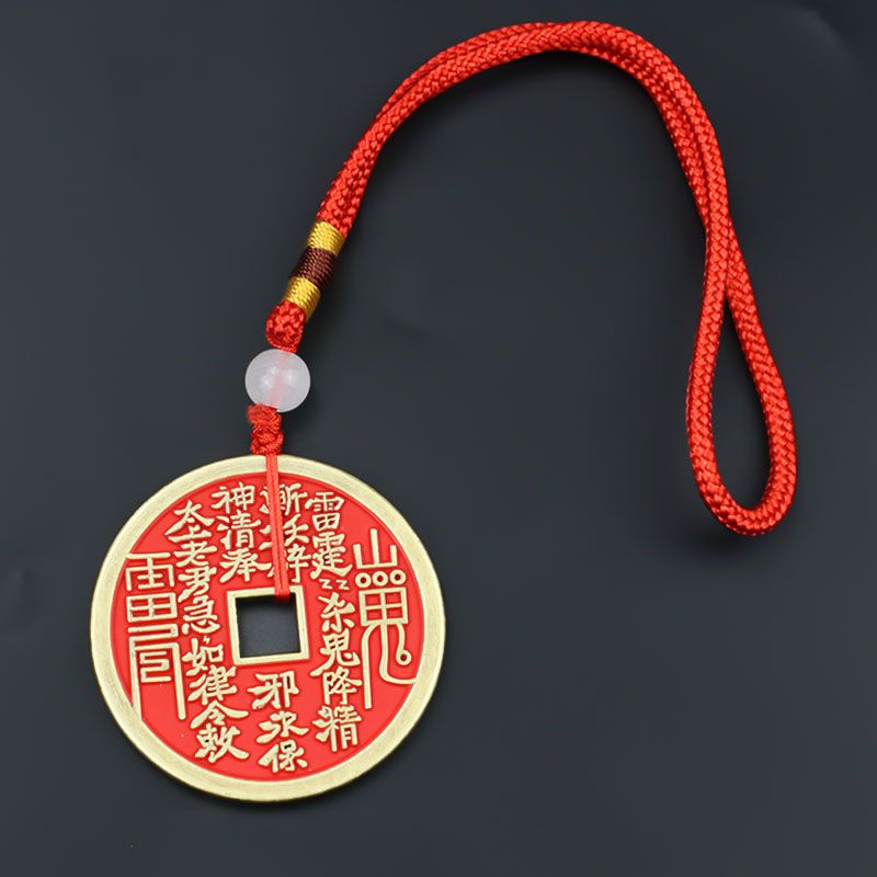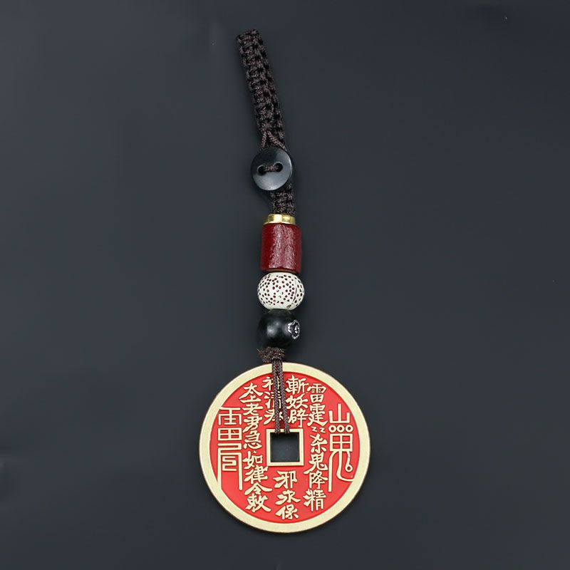 卿之悦铜红方孔项链钥匙扣山鬼花钱合金朱砂饰品汽车挂件八卦铜钱
