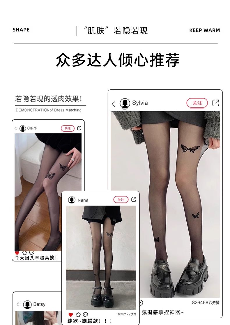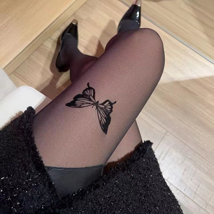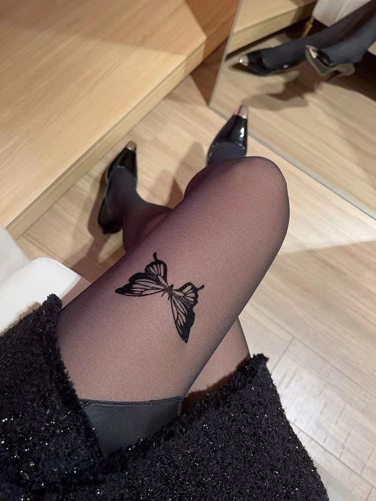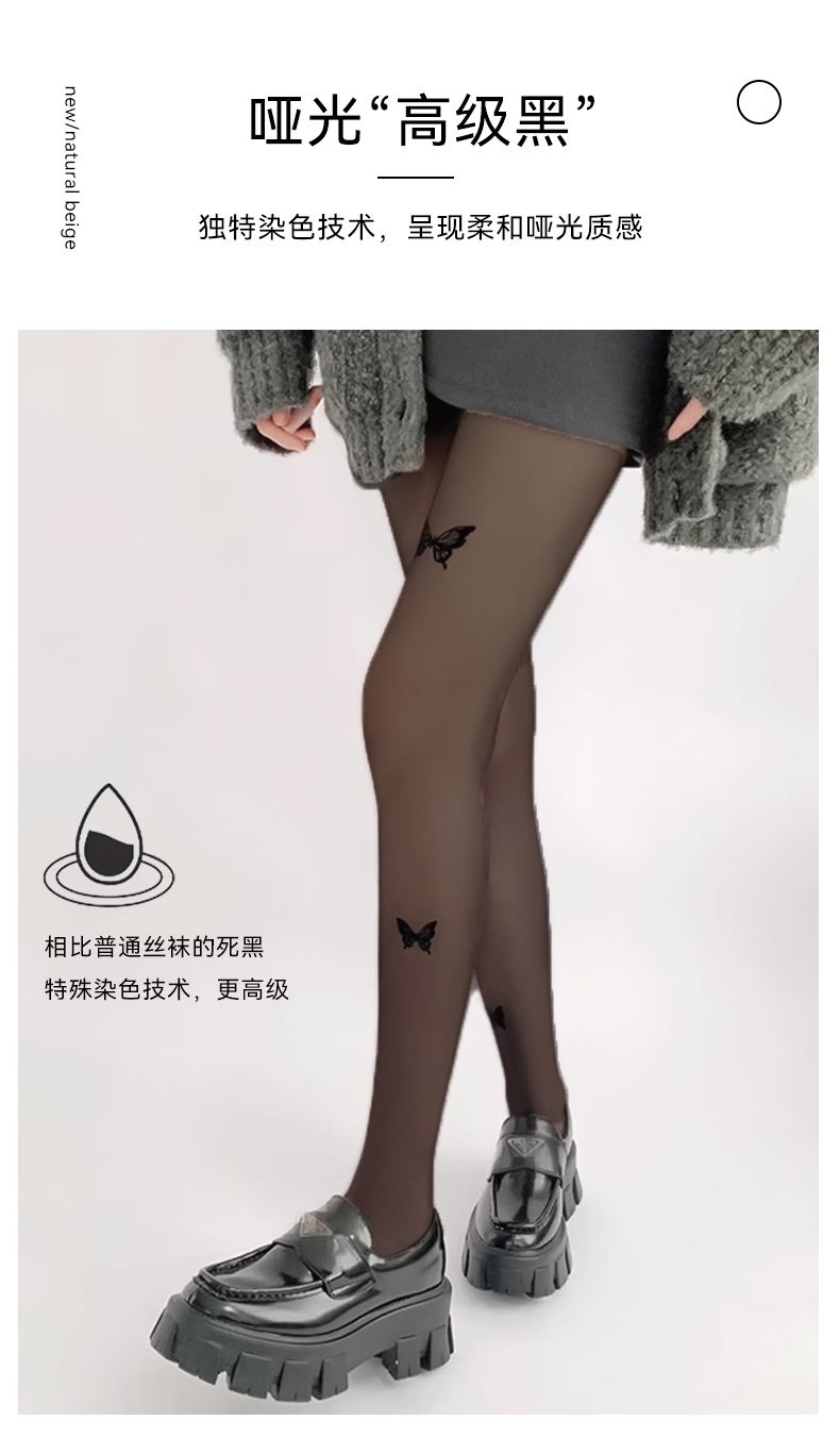 网红爆款春秋加厚丝袜蝴蝶印花热打底袜外穿大码加肥连脚袜女潮袜