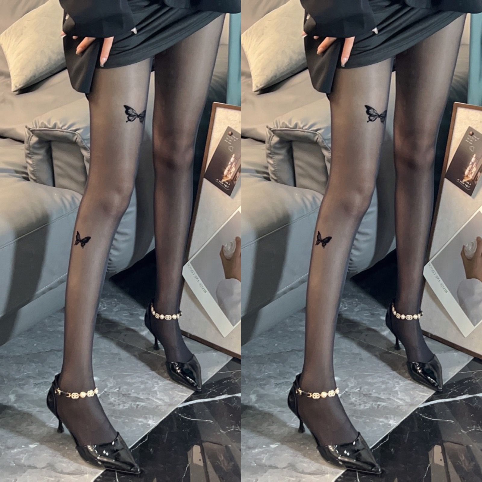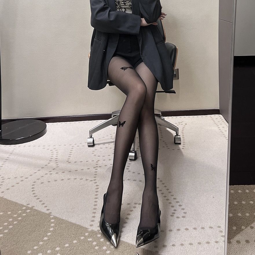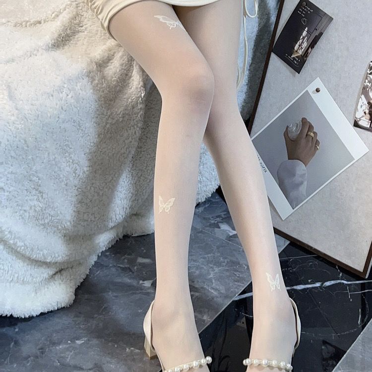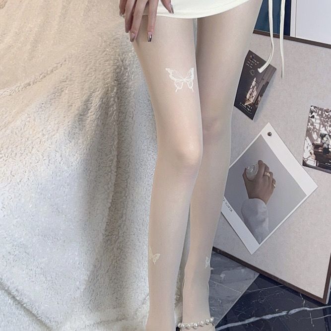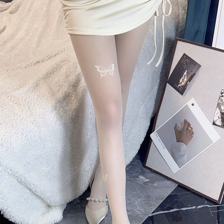蝴蝶黑色丝袜女性感显瘦美腿打底不规则连裤袜白丝袜印花黑丝秋冬