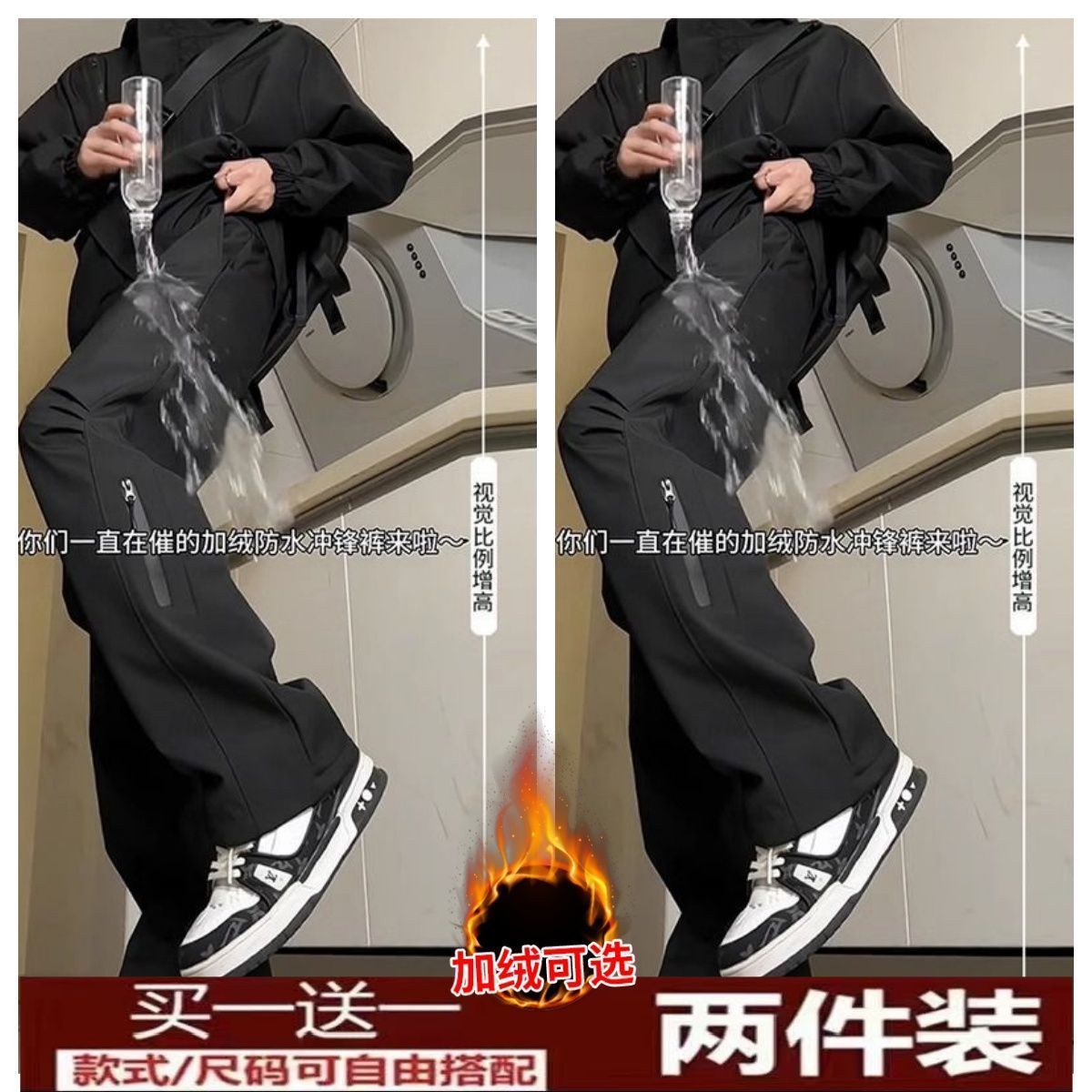 户外秋冬季加绒款工装裤潮牌防水冲锋冲锋裤机能裤子美式登山长裤