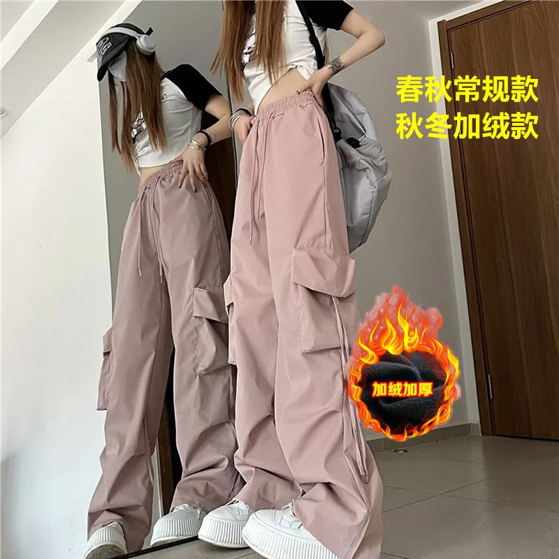 多巴胺ins工装裤女春秋冬季薄款直筒阔腿辣妹宽松休闲束脚长裤男