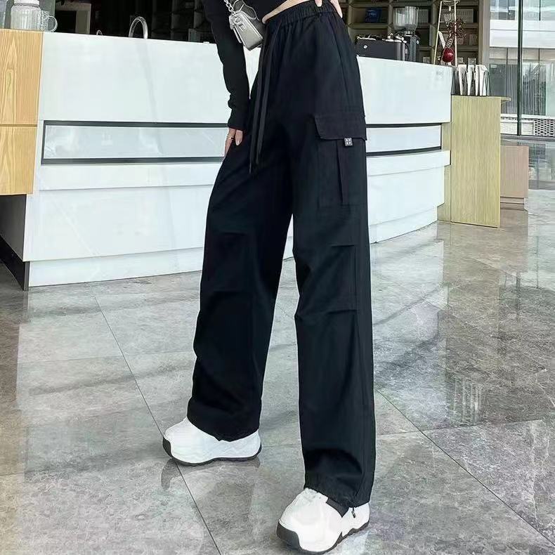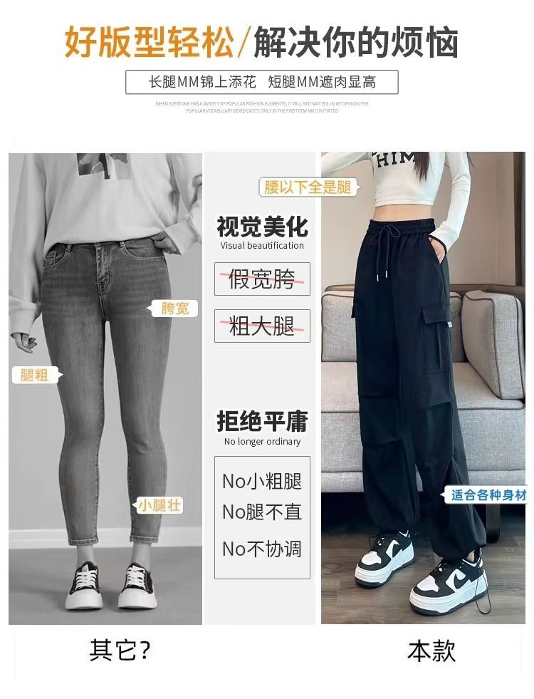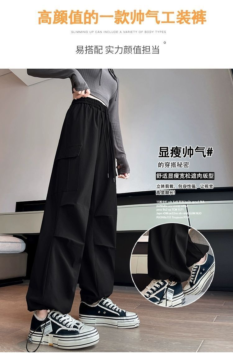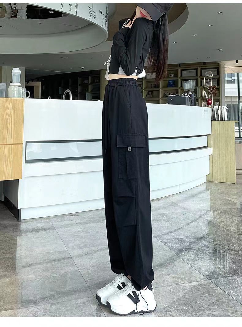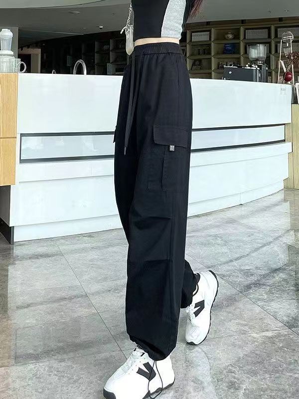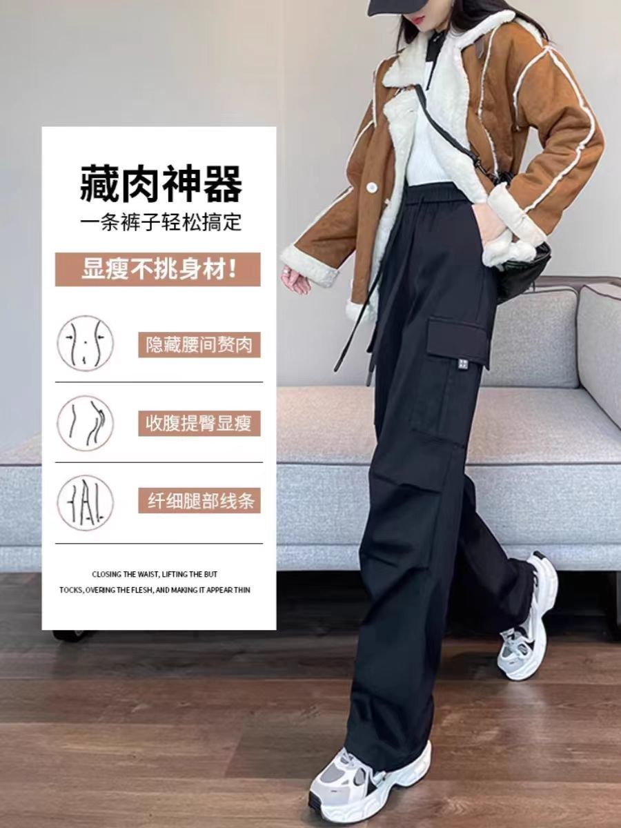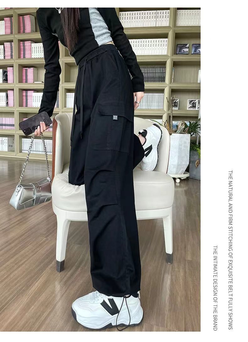 高腰直筒工装裤BF宽松休闲运动显瘦黑色阔腿薄荷曼波男女新款裤子
