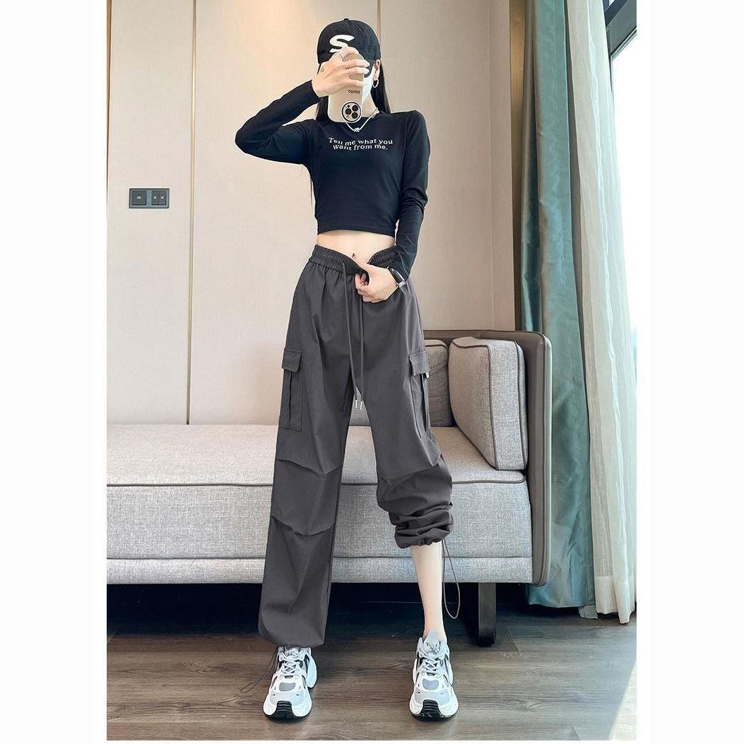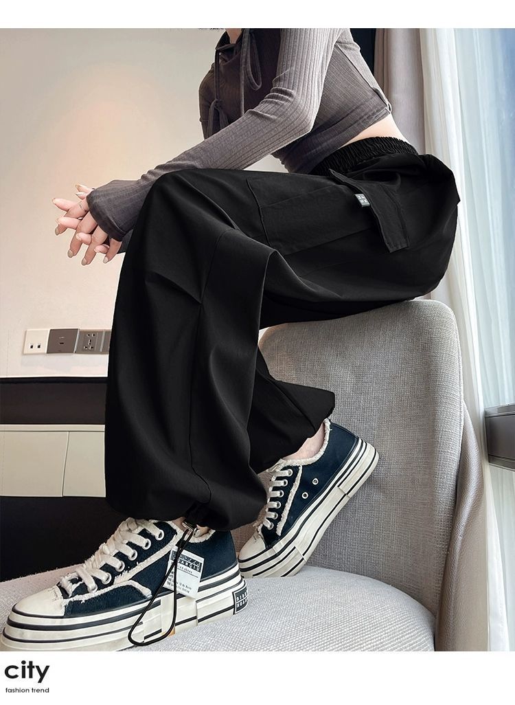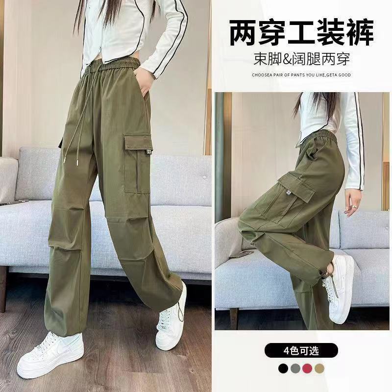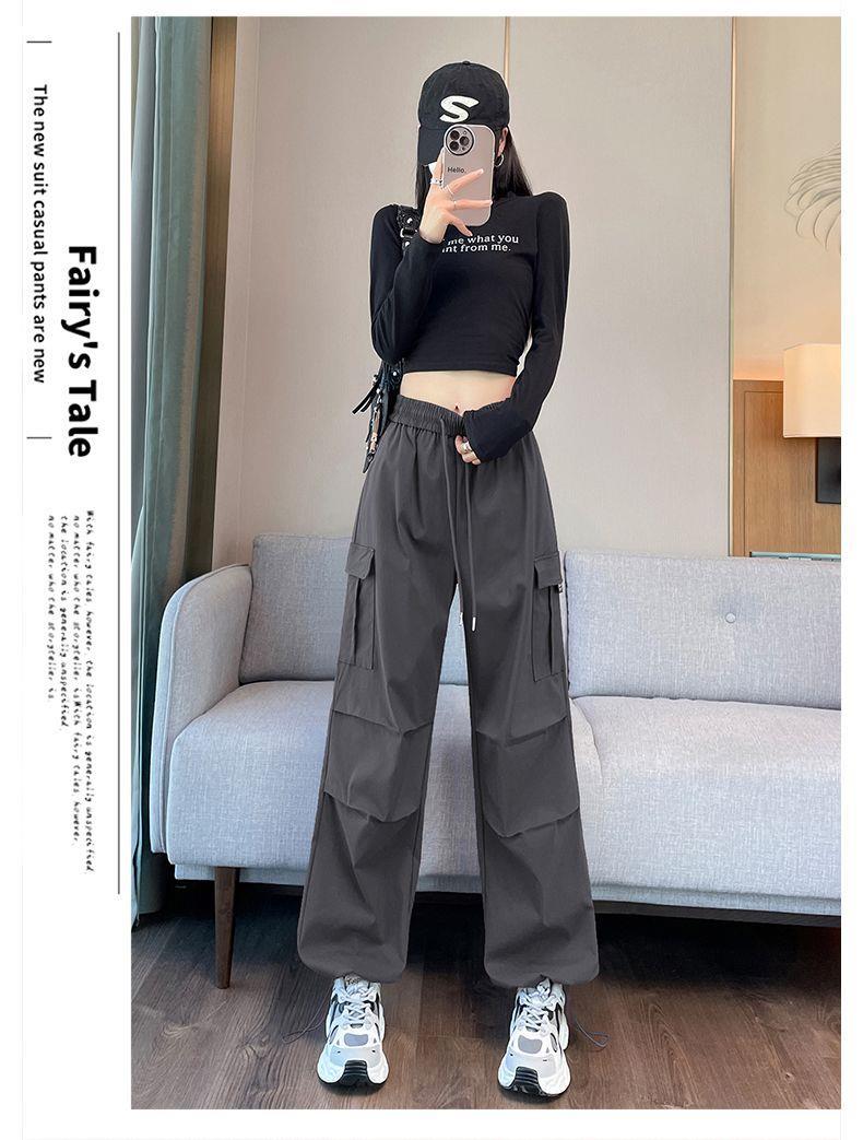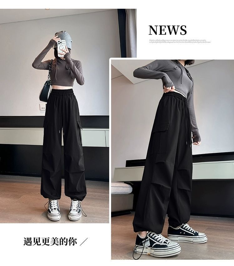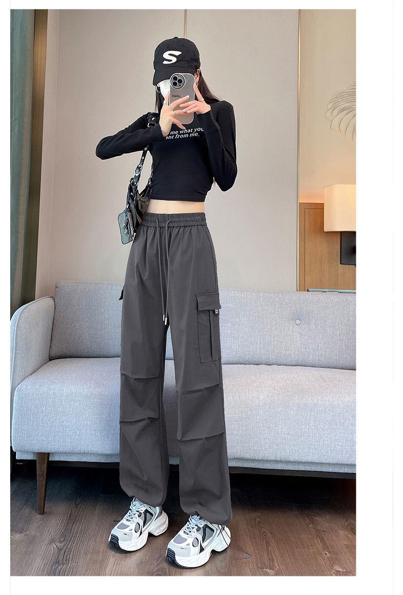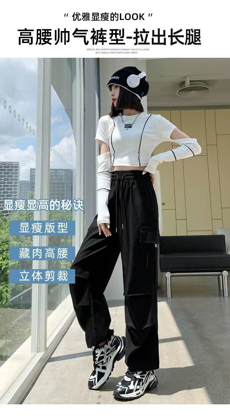 高腰直筒工装裤BF宽松休闲运动显瘦黑色阔腿薄荷曼波男女新款裤子